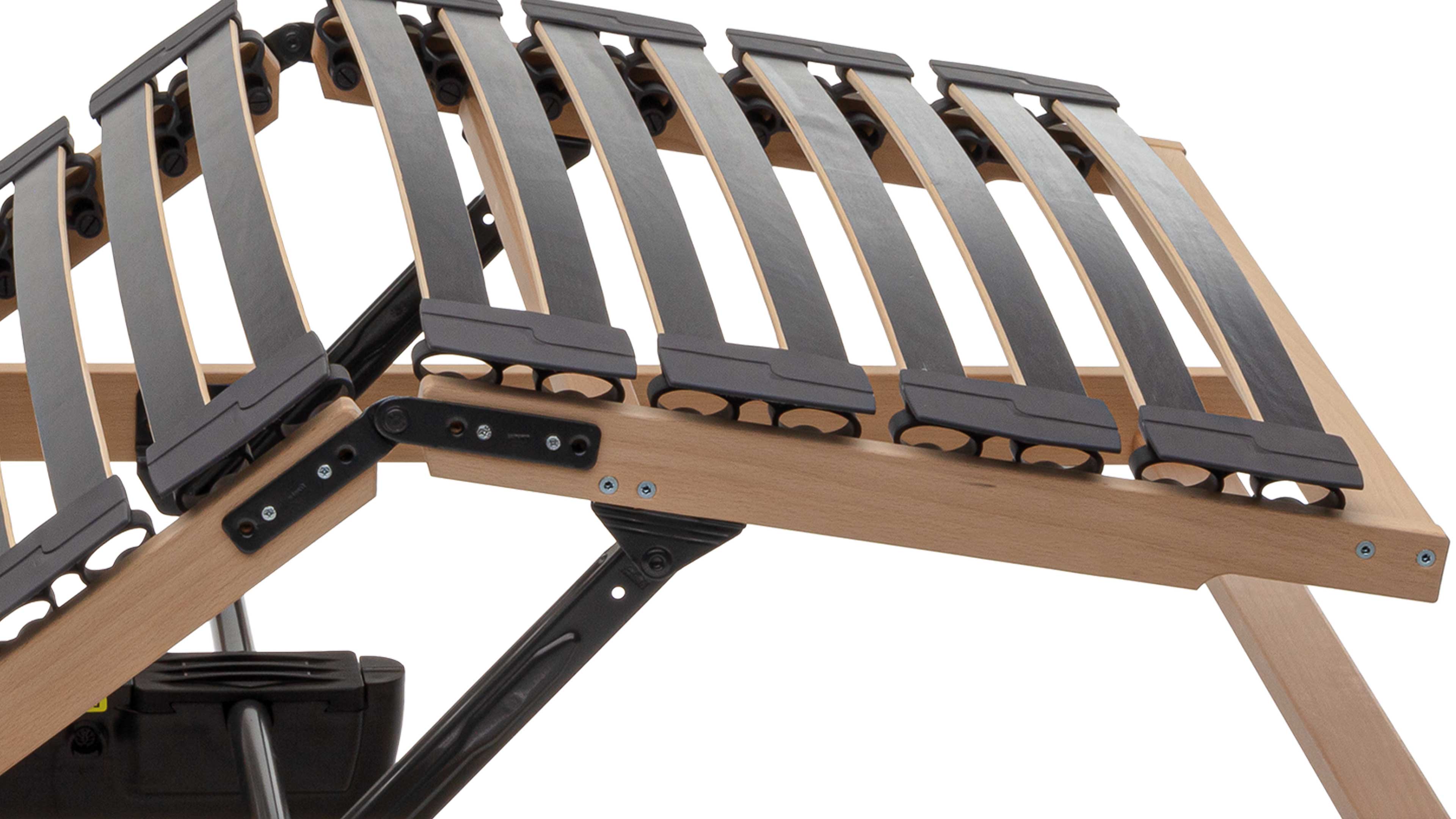 Neben dieser komfortablen, zweifach motorischen Variante mit Funksteuerung ist die Interliving Lattenrost Serie 1952 auch in weiteren Ausführungen erhältlich – als starre Basisversion, mit manueller Verstellung, mit Hebehilfe oder in der exklusiven 3-fach motorischen Premium-Ausführung.