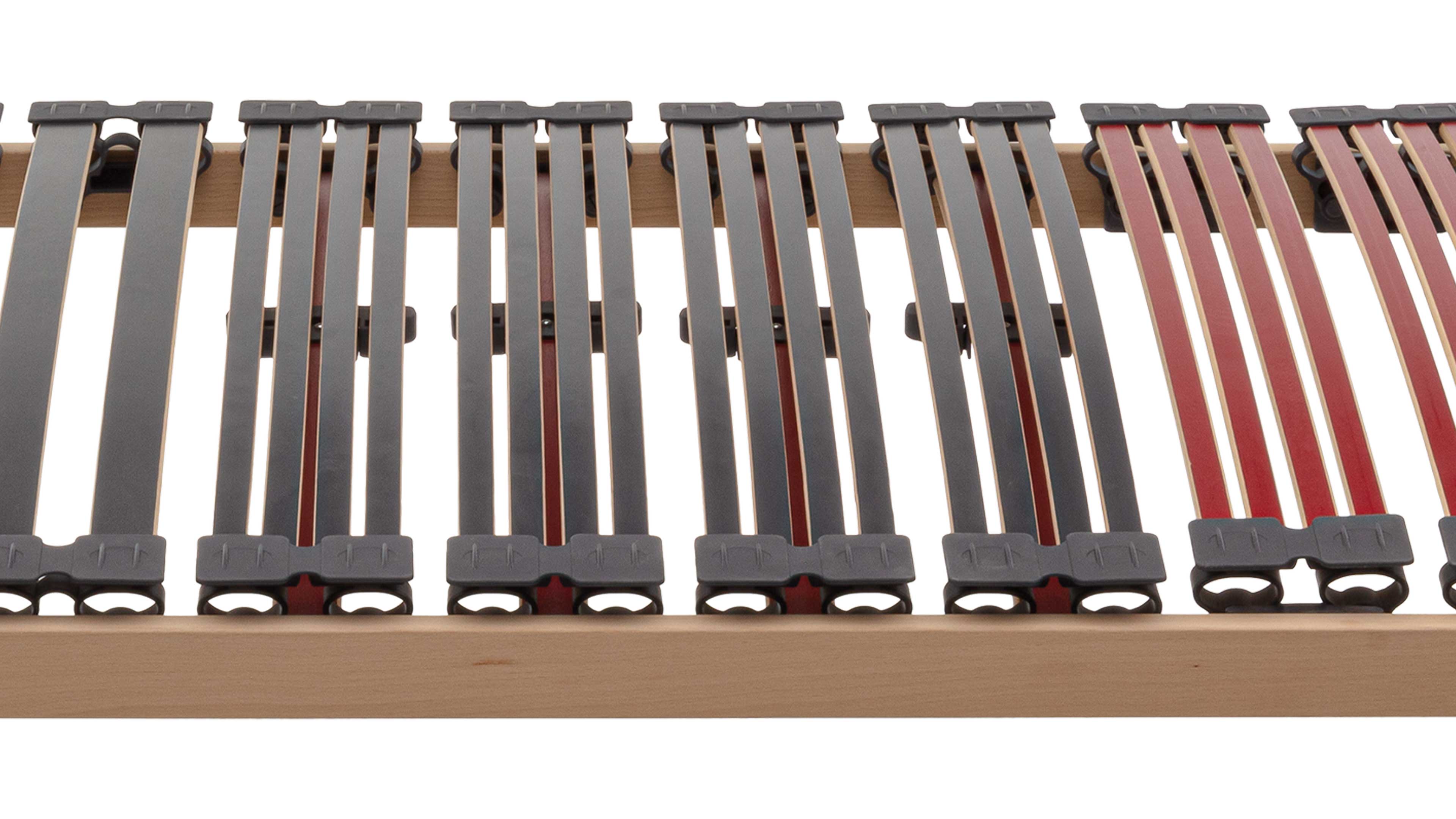 Der Rahmen besteht aus massivem, naturbelassenem Buchenholz, das besonders robust, formstabil und langlebig ist. Mit einer Rahmenhöhe von ca. 50 mm und einer Stärke von ca. 22 mm überzeugt der Lattenrost durch eine solide Bauweise und hohe Tragkraft. Für eine ideale Körperanpassung kommen zwei Leistentypen zum Einsatz: 13 breite, 5-fach verleimte Premium-Federleisten aus Buchenholz gewährleisten eine gleichmäßige Gewichtsverteilung und bieten auch bei höherer Belastung bis ca. 130 kg zuverlässigen Halt. Ergänzt werden sie durch 28 schmale, hochelastische Federleisten im Schulter-, Lordose- und Beckenbereich, die eine besonders präzise Anpassung an die Körperkonturen ermöglichen. Eine stabile Endleiste rundet die Konstruktion ab und sorgt für eine gleichmäßige Auflagefläche der Matratze.