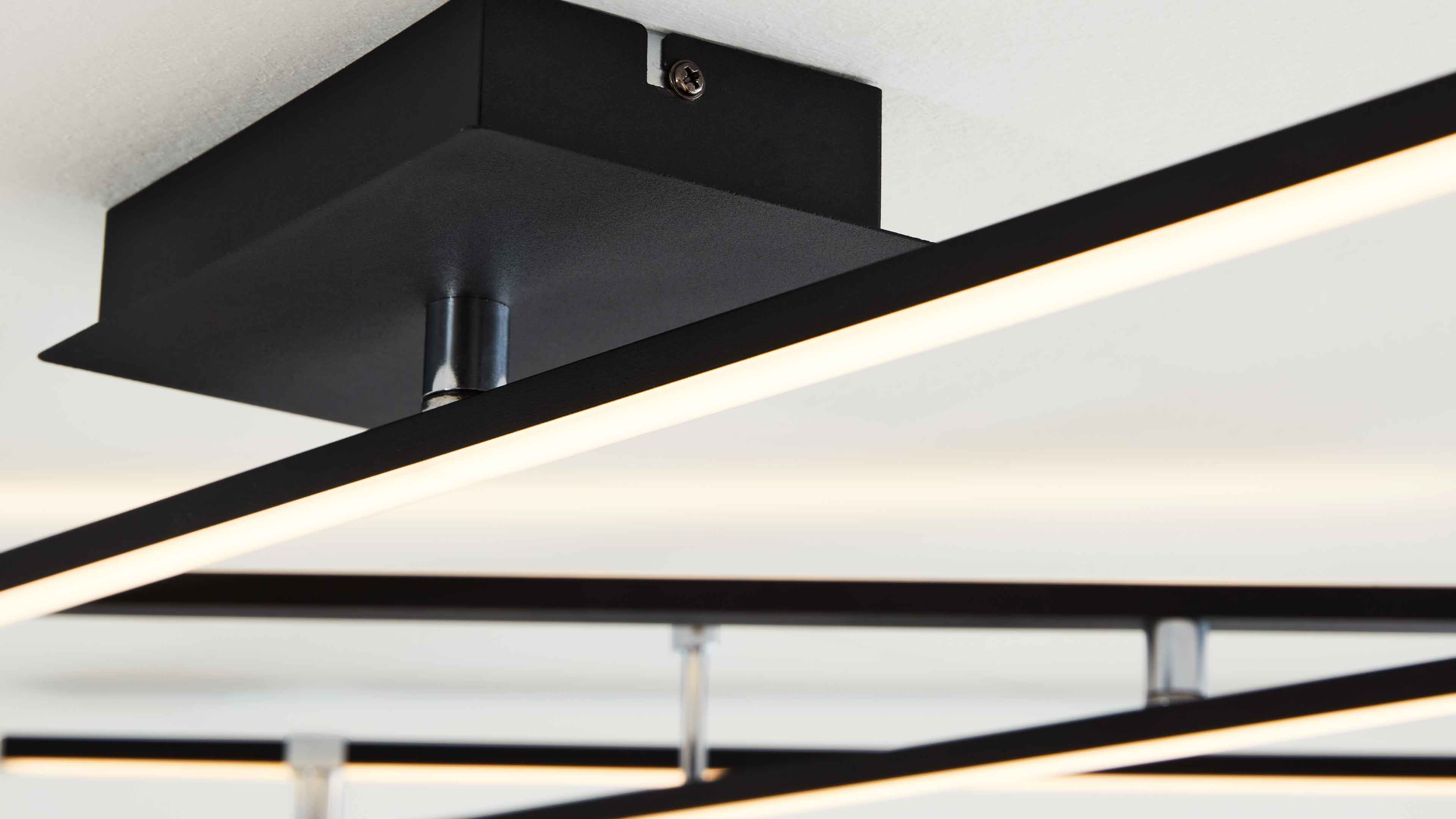 Mit ihrer eleganten Linienführung setzt die Deckenlampe moderne Akzente über dem Wohn- oder Essbereich und sorgt für gleichmäßiges, blendfreies Licht. Auch im Schlafzimmer oder Flur schafft sie eine angenehme Atmosphäre mit warmem, harmonischem Licht. Durch die Dimmfunktion passt du die Lichtintensität ganz flexibel an – perfekt für jede Stimmung, von funktional bis gemütlich.