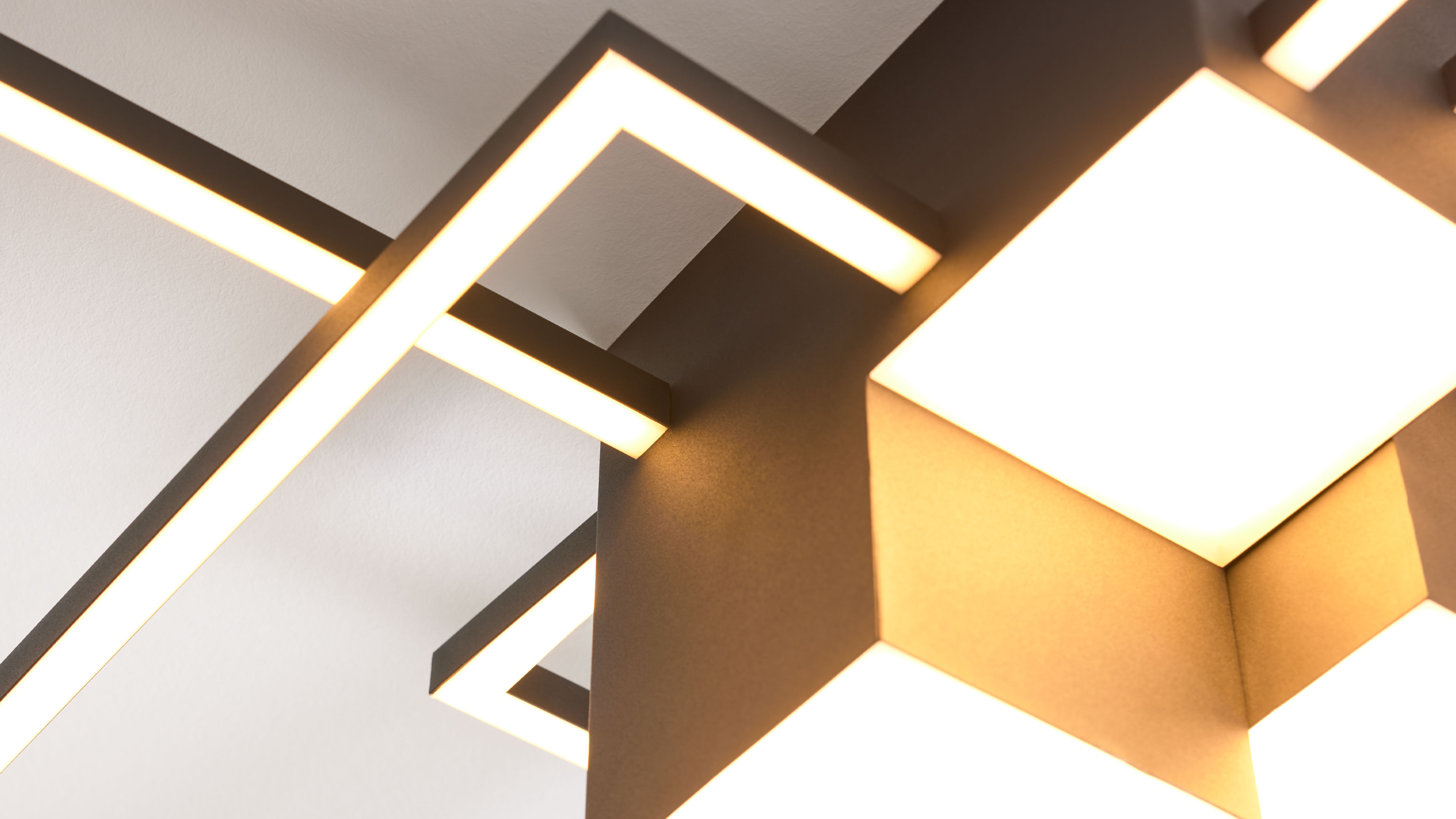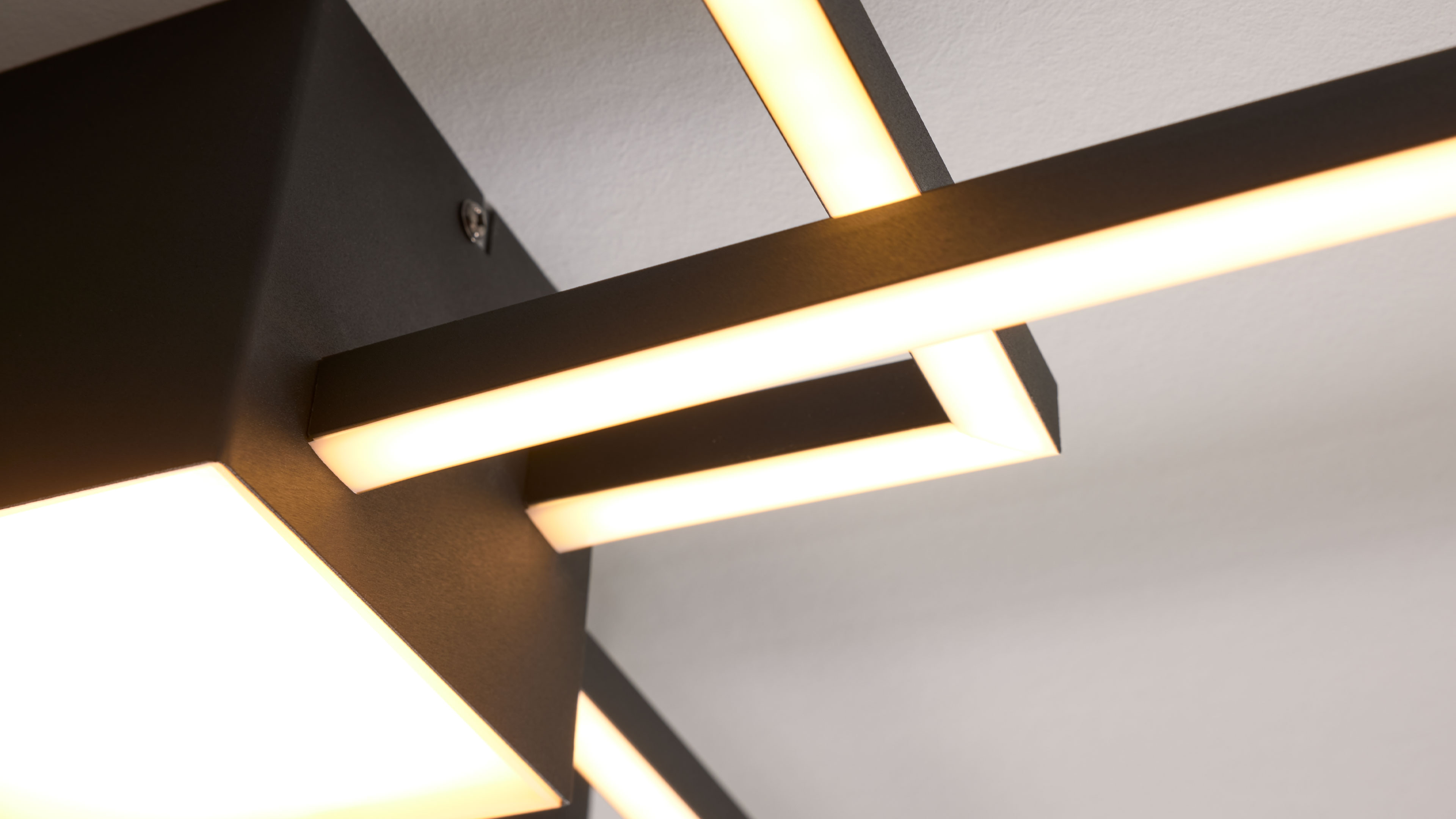 Deckenleuchte mit schwarzem Metallrahmen in geometrischem Design und integrierten LED-Elementen