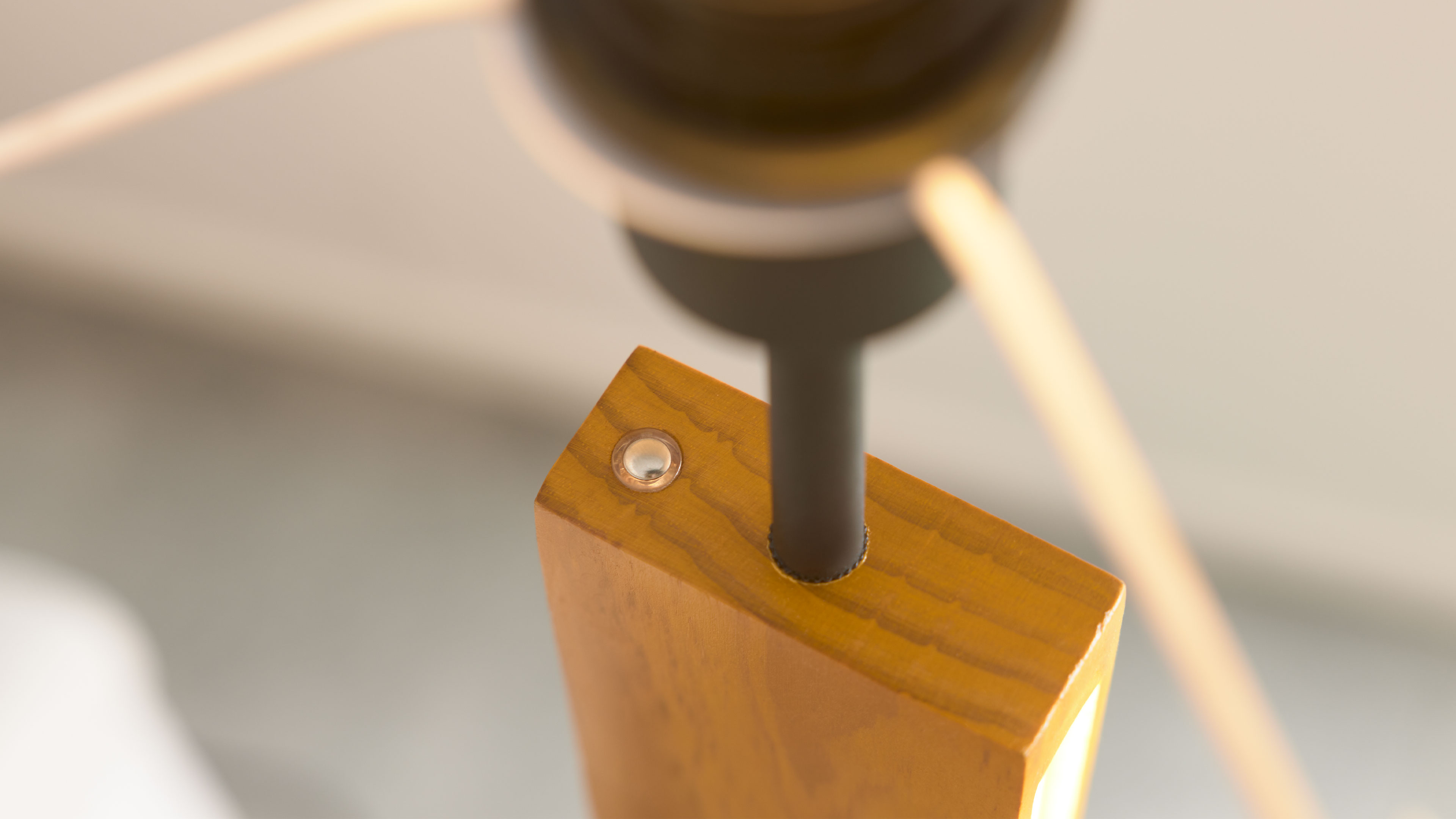 Eine E27-Fassung im Schirm (max. 40 Watt, Leuchtmittel nicht enthalten), steuerbar über den Schnurschalter am ca. 180 cm langen Kabel – für klassisches Raumlicht. Eine im Holz integrierte SMD-LED mit 10 Watt, die 1200 Lumen bei 3000 Kelvin erzeugt. Über den Sensordimmer am Holzgehäuse lässt sich diese fest verbaute LED stufenlos dimmen – ideal für stimmungsvolle Akzentbeleuchtung oder dezentes Licht am Abend. Die LED entspricht der Energieeffizienzklasse E (Spektrum A bis G) und überzeugt mit Langlebigkeit und Energieeffizienz.