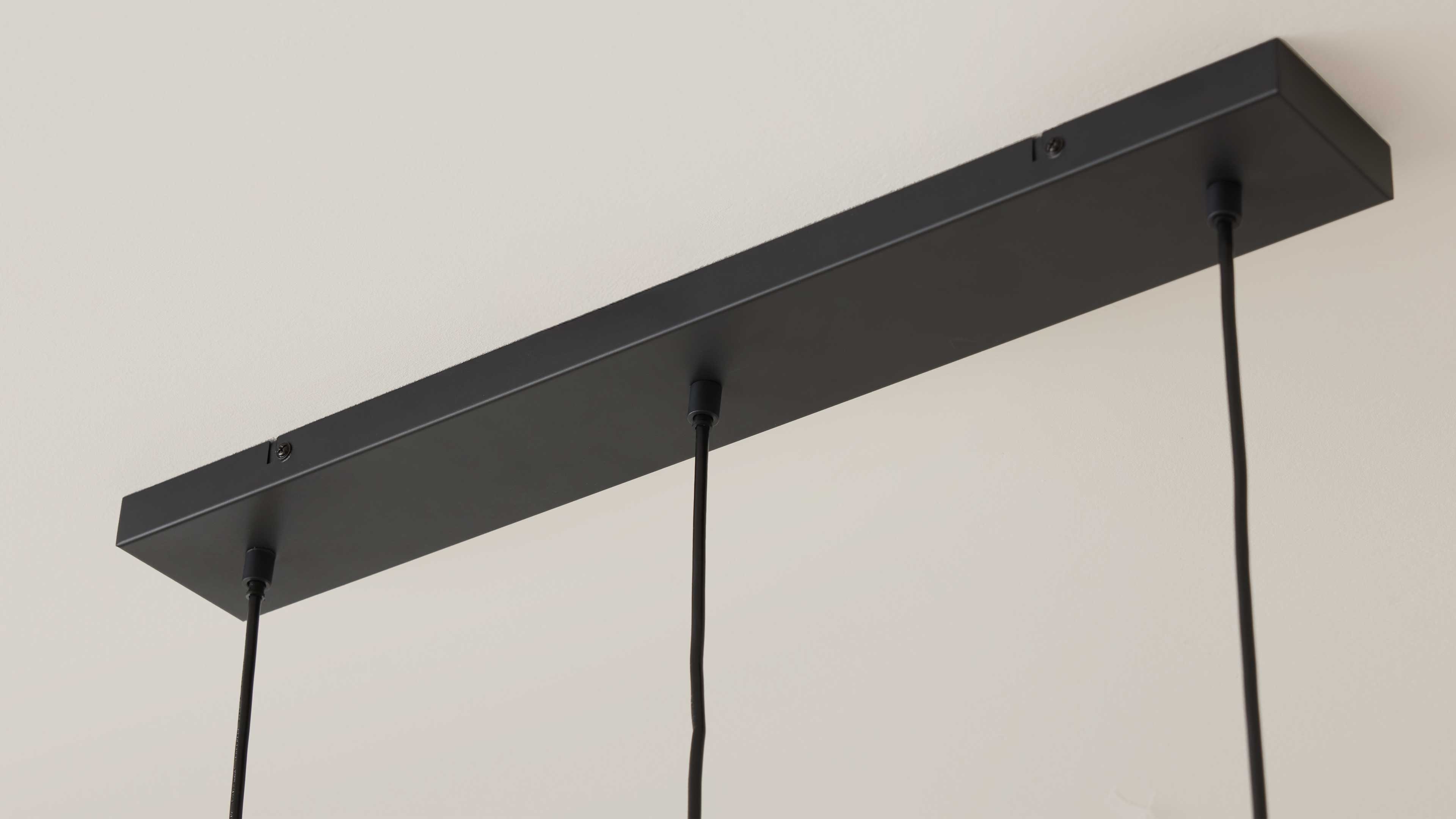 Ob über dem Esstisch oder im Wohnzimmer – die Wohnraum-Hängelampe schafft eine stimmungsvolle Atmosphäre. Mit ca. 65 x 15 cm (B/LxT) und einer Kabellänge von ca. 150 cm passt sie perfekt in offene Wohnbereiche und setzt jeden Raum gekonnt in Szene.