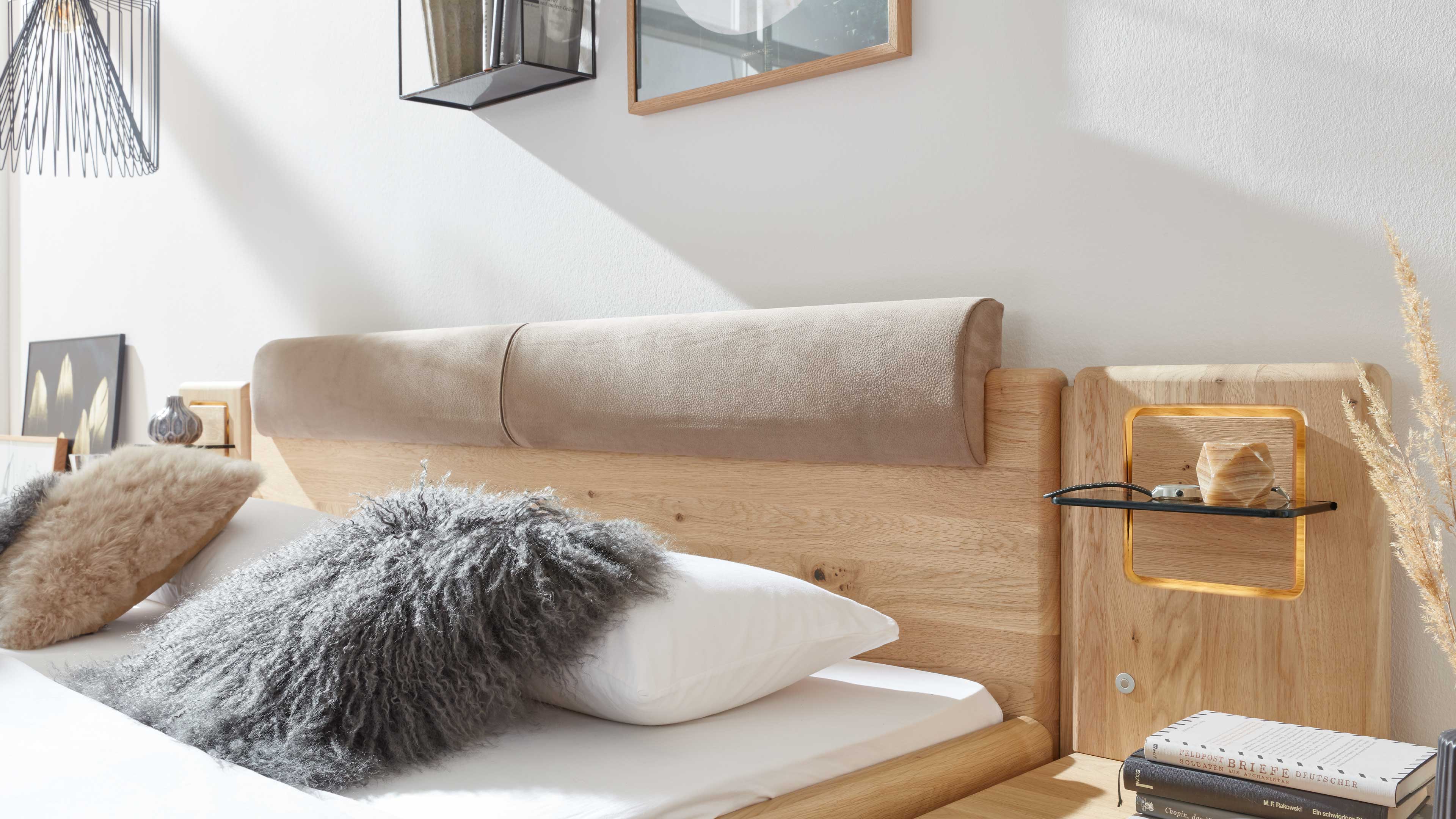 Natürlich schlafen mit Komfort – das Bettgestell mit sienafarbenen Kopfpolstern aus der Interliving Schlafzimmer Serie 1015