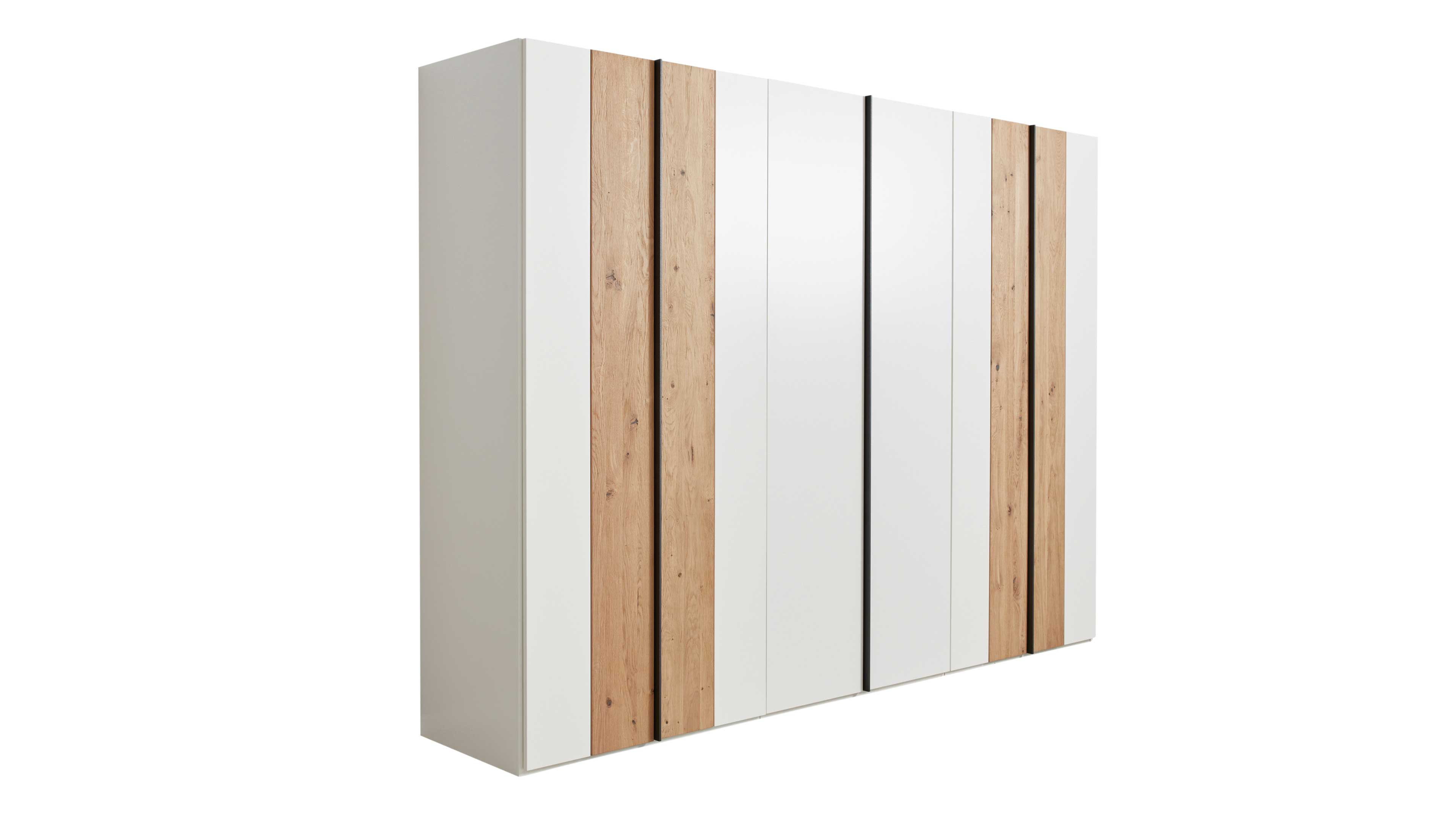 Modern, stimmig und perfekt aufeinander abgestimmt: Das vierteilige Komplettzimmer aus der Interliving Schlafzimmer Serie 1019 kombiniert weißen Mattlack mit massiver Wildeiche in Altholz-Optik und hochwertigen, anthrazitfarben lackierten Aluminiumgriffen. Das Ergebnis ist ein ruhiges, modernes Schlafzimmerambiente – langlebig und hochwertig.