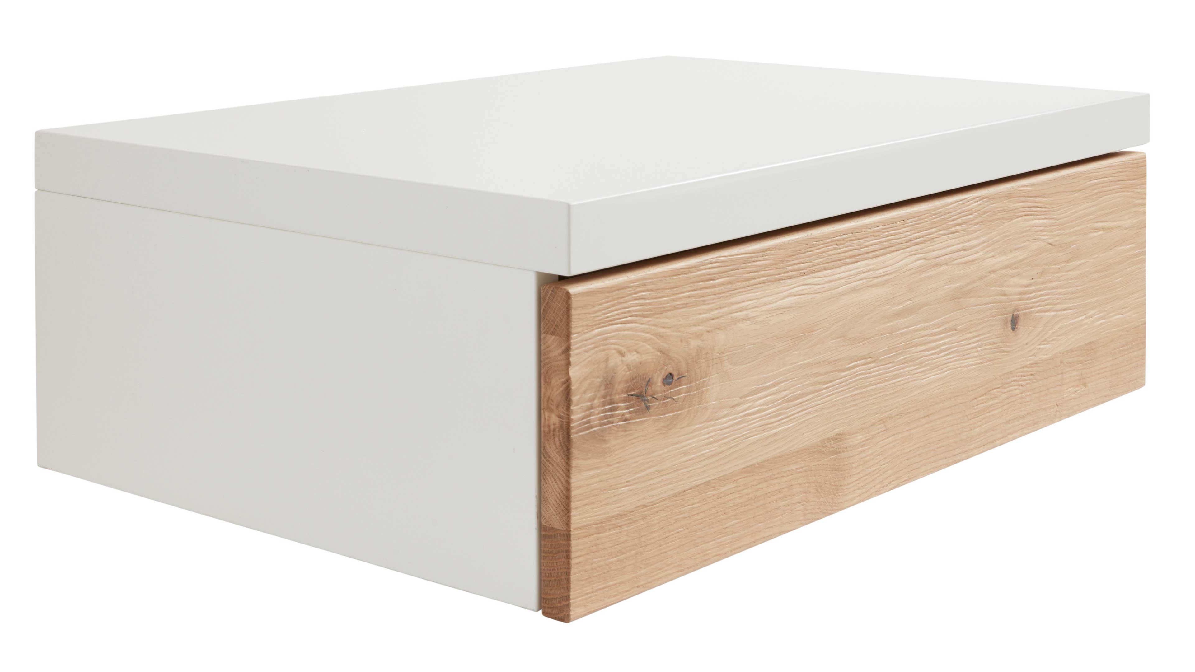 Zum Set gehören zwei Hänge-Nachtkonsolen, jeweils mit einer Schublade inklusive Selbsteinzug. Mit Maßen von ca. 65 x 22 x 45 cm (BxHxT) fügen sie sich harmonisch ans Bett an und bieten Platz für alles, was du abends und nachts griffbereit haben möchtest.