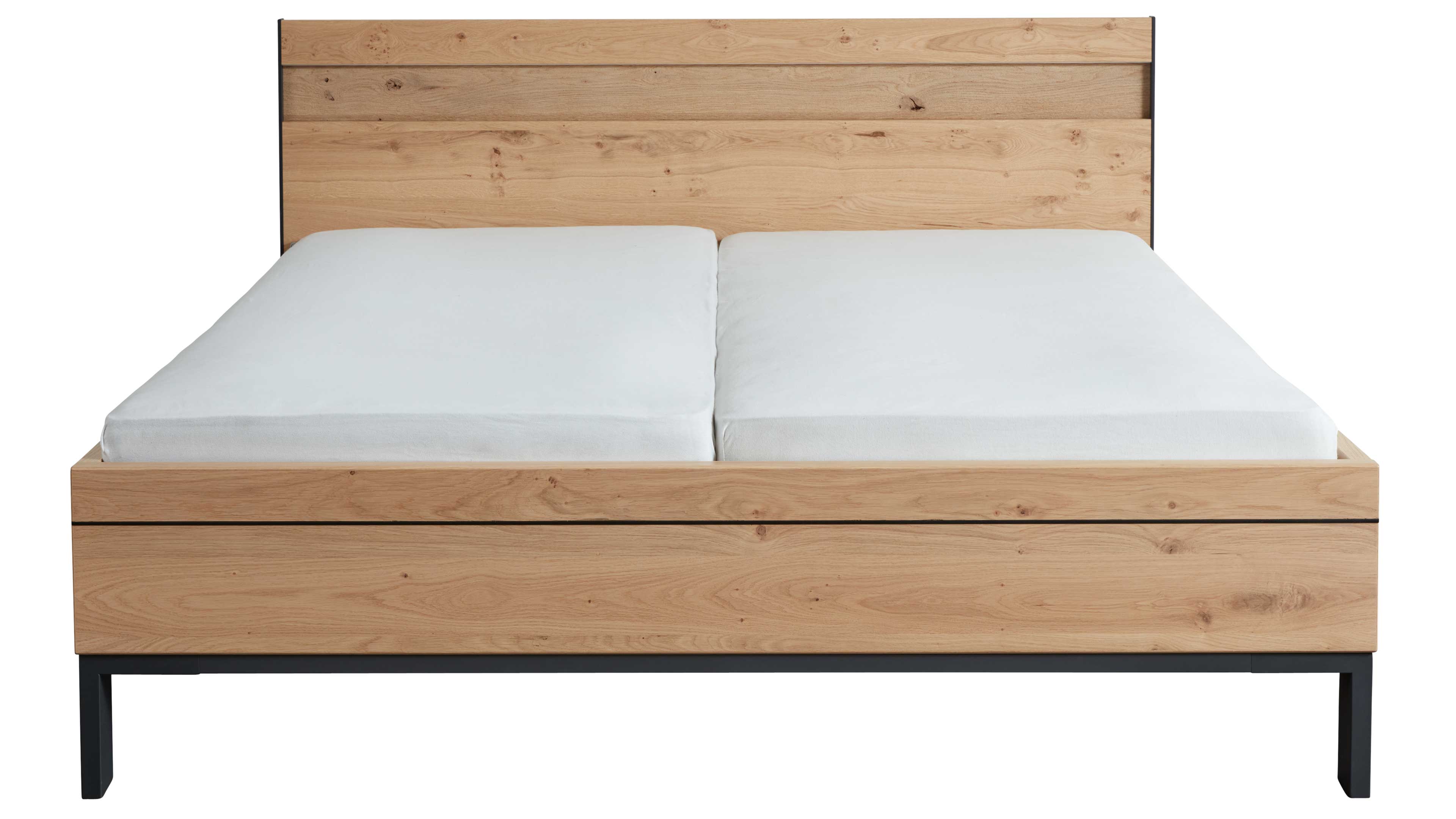 Doppelbett in Eiche-Optik mit schwarzen Metallfüßen