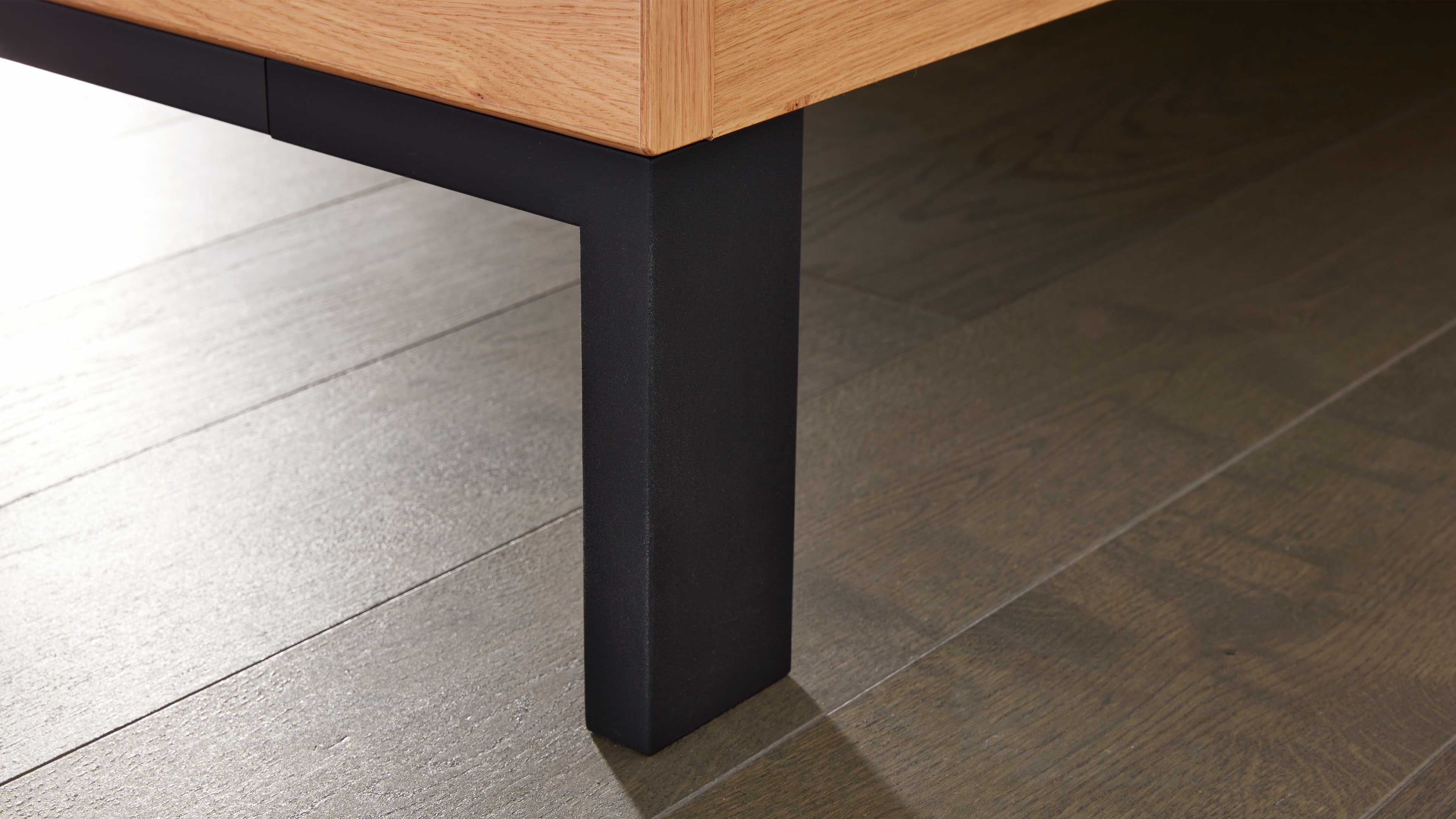 Das Bettgestell aus der Interliving Schlafzimmer Serie 1024 bringt natürliches Design und moderne Details perfekt zusammen. Das warme Echtholz-Balkeneichefurnier sorgt für eine gemütliche Atmosphäre, während die anthrazitfarbenen Metall-Winkelfüße und Zierleisten dem Bett einen modernen, stabilen Look verleihen.