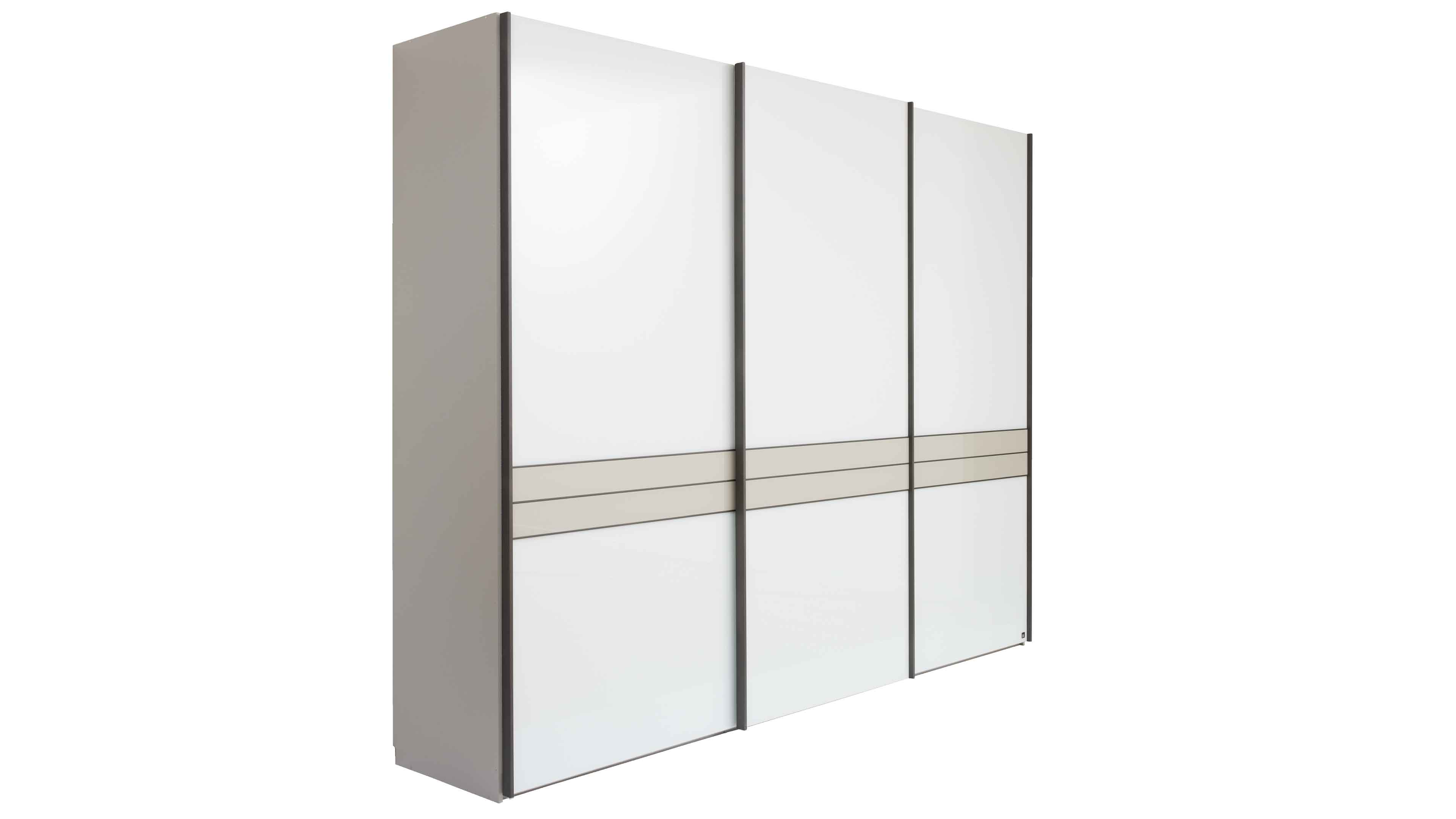 Kleiderschrank mit Schiebetüren mit Hochglanz Fronten in Beige-Grau