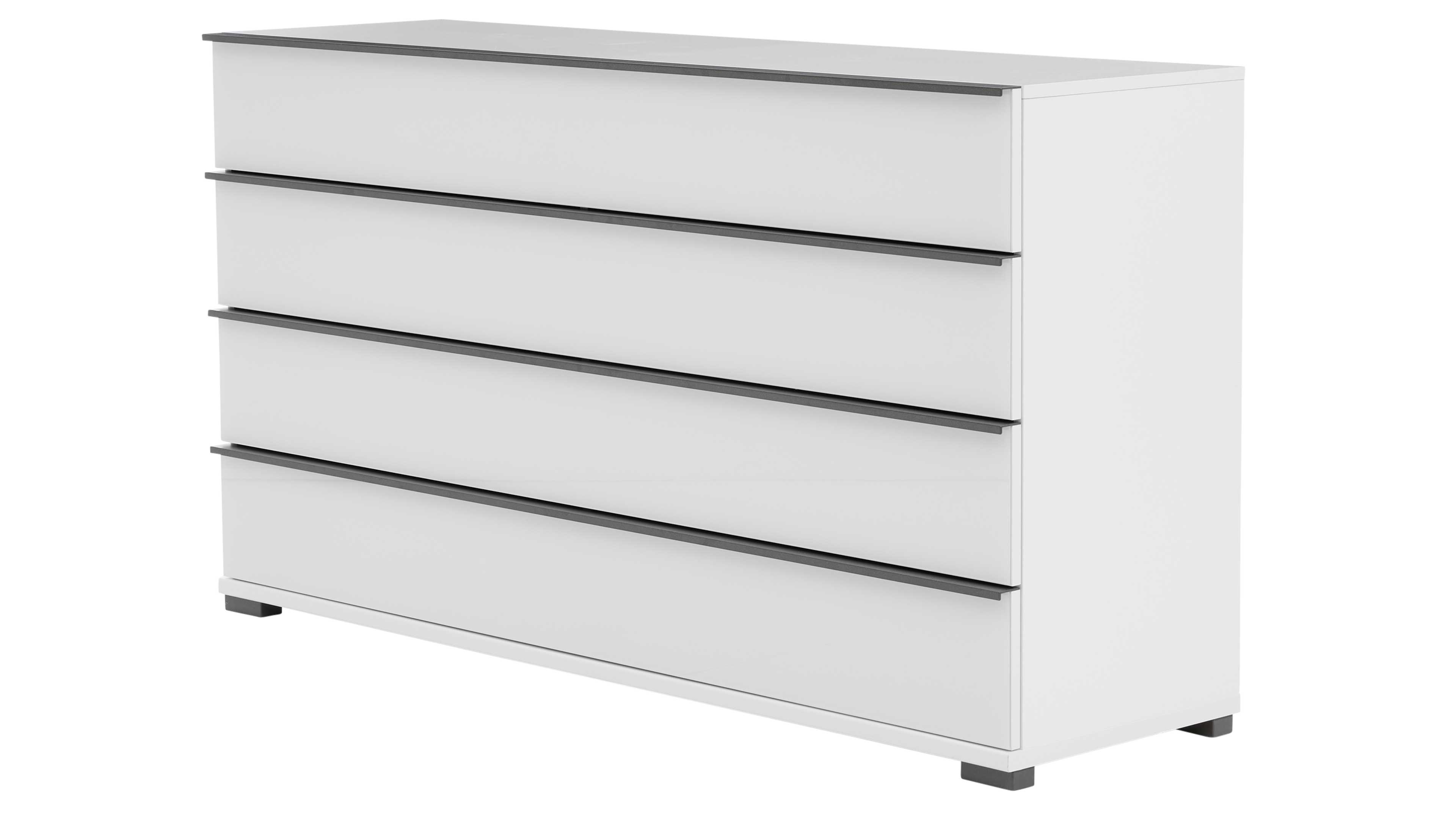 Hochglanz-Kommode in Weiß mit vier großzügigen Schubladen und Griffleisten
