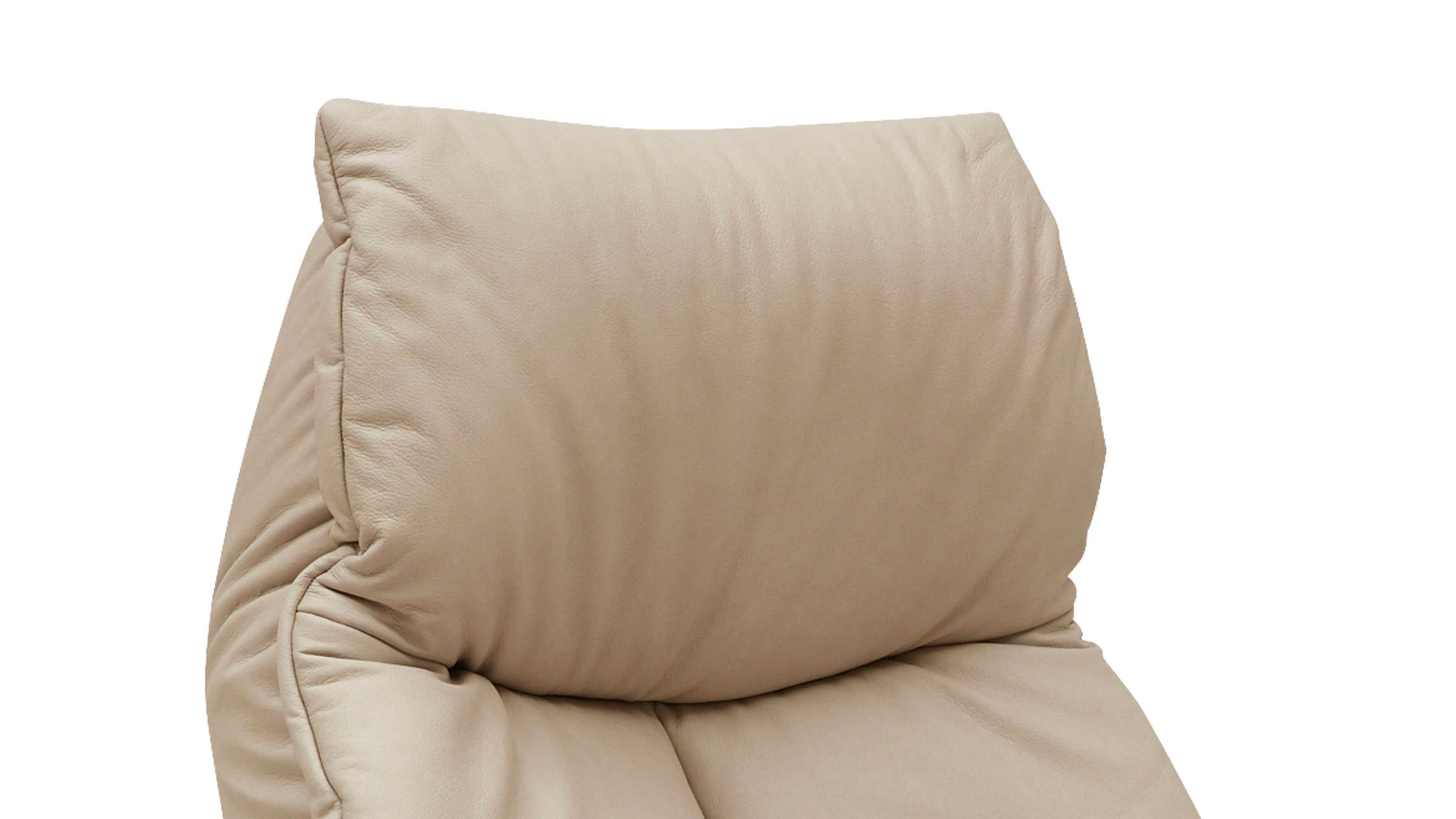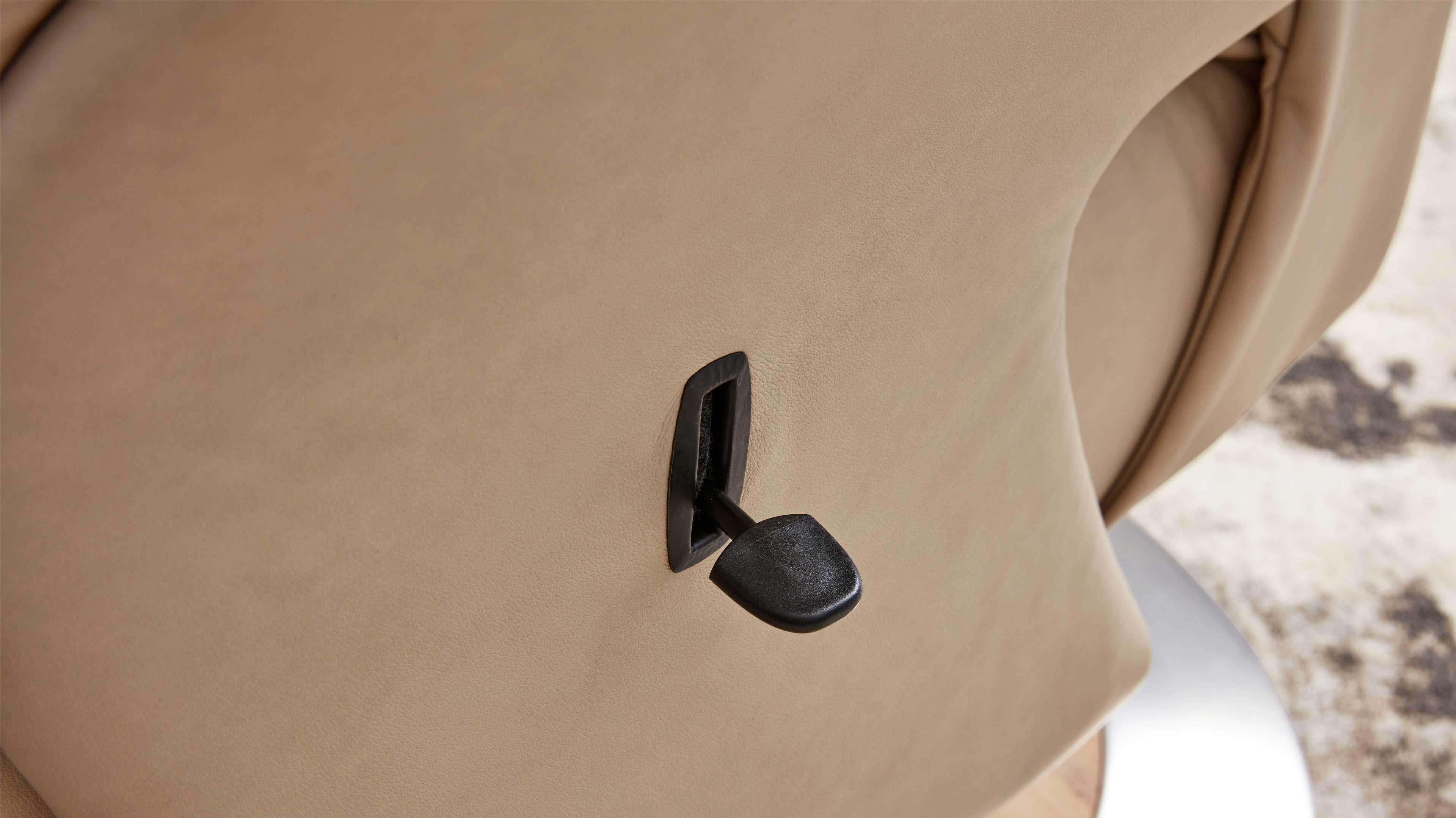 Mit einer Größe von ca. 72 x 111–117 x 84 cm (BxHxT), einer variablen Sitzhöhe von ca. 44–50 cm, einer Sitztiefe von ca. 52 cm und einer Relaxlänge von ca. 157 cm bietet der Drehsessel viel Platz für entspanntes Sitzen und Liegen. Die 360-Grad-Drehfunktion sorgt für maximale Bewegungsfreiheit, während die zweimotorige Verstellung von Rücken- und Fußteil über den schwarzen Magnethandschalter mit Spiralkabel bequem und getrennt steuerbar ist. Der Handschalter lässt sich mithilfe des integrierten Magneten praktisch am Seitenteil fixieren – stets griffbereit, aber unauffällig integriert. Zusätzlich sorgt die manuelle Kopfteilverstellung für individuellen Komfort und optimale Unterstützung im Nackenbereich. Zusätzlich bietet der Sessel eine stufenlose Sitzhöhenverstellung mittels Gasdruckfeder.