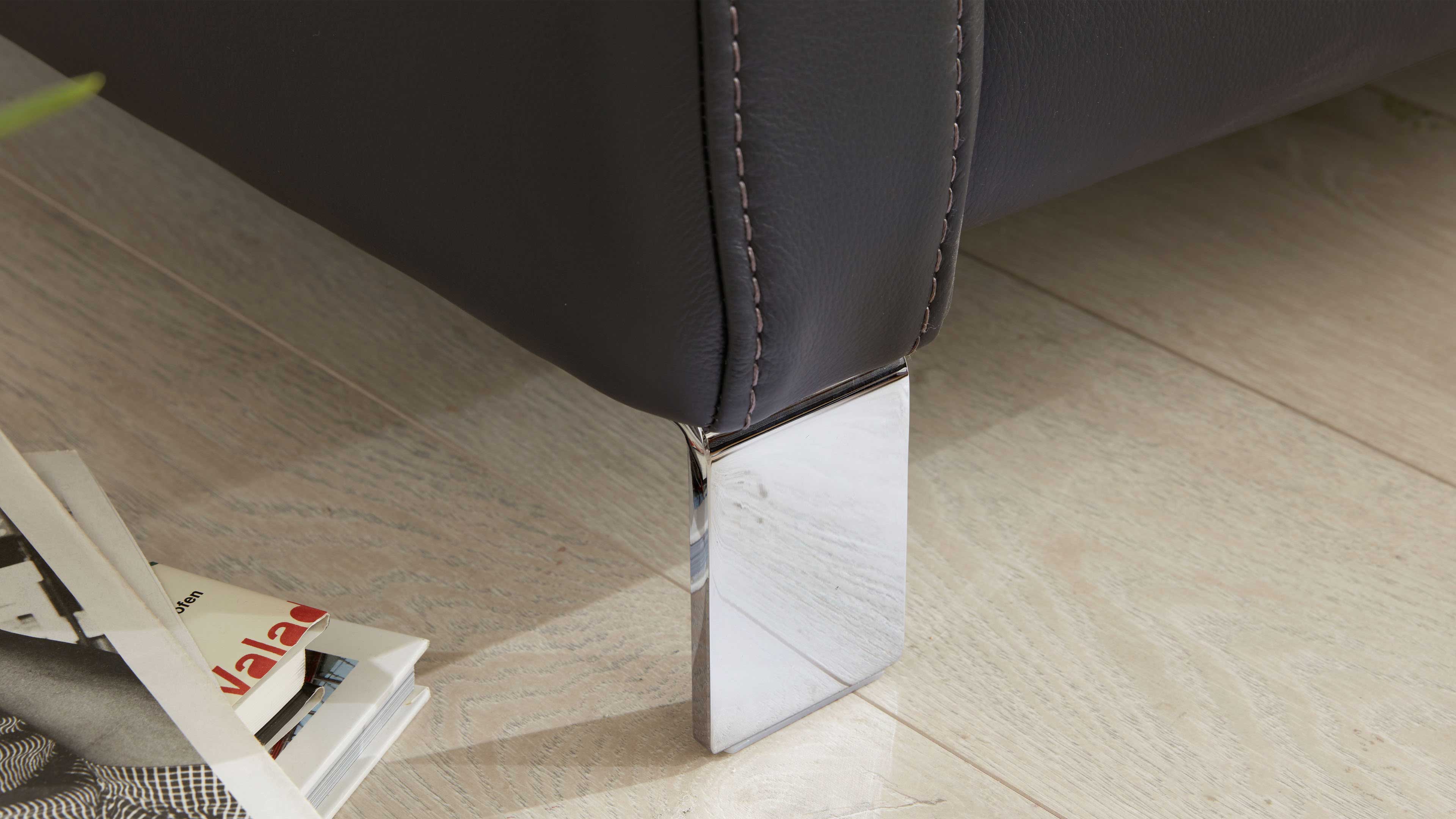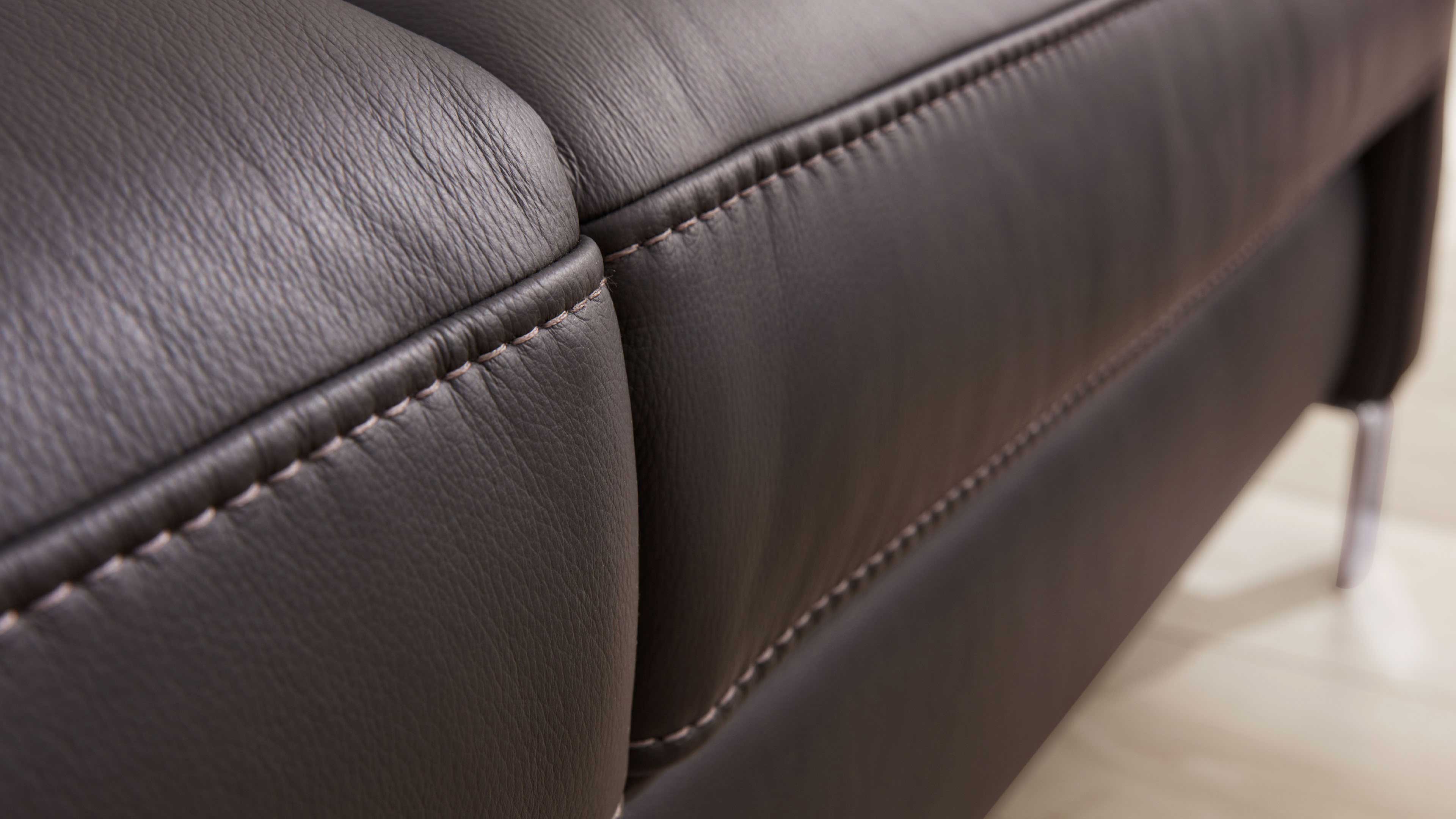 Das feine LongLife-Leder steht für Langlebigkeit, Pflegeleichtigkeit und edle Optik. Es fühlt sich angenehm weich an und sorgt in Kombination mit der legeren Polsterung für entspannten Sitzkomfort. Die eleganten Chrom-Metallfüße verleihen dem Sofa eine moderne Leichtigkeit und runden das Design harmonisch ab.