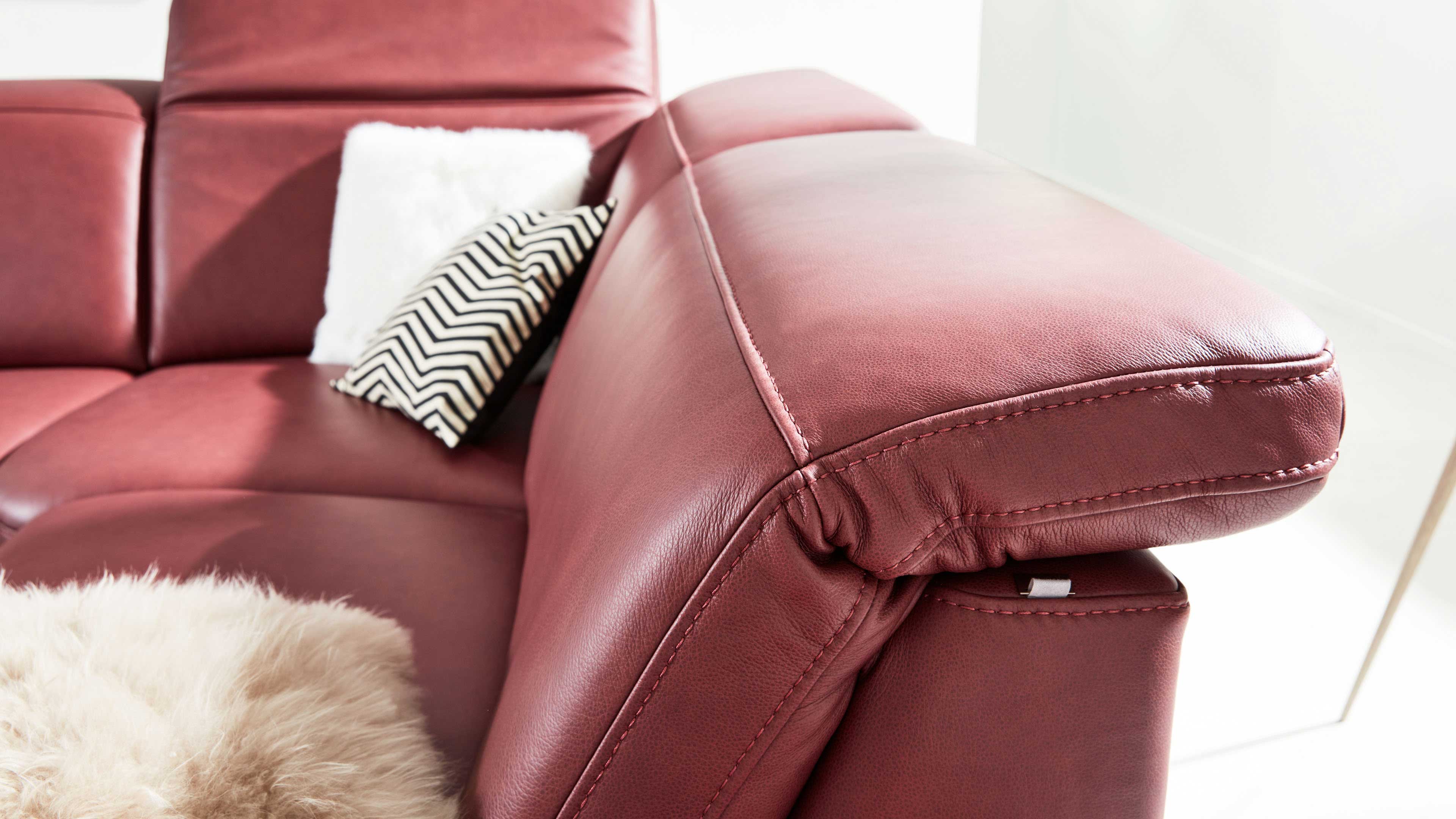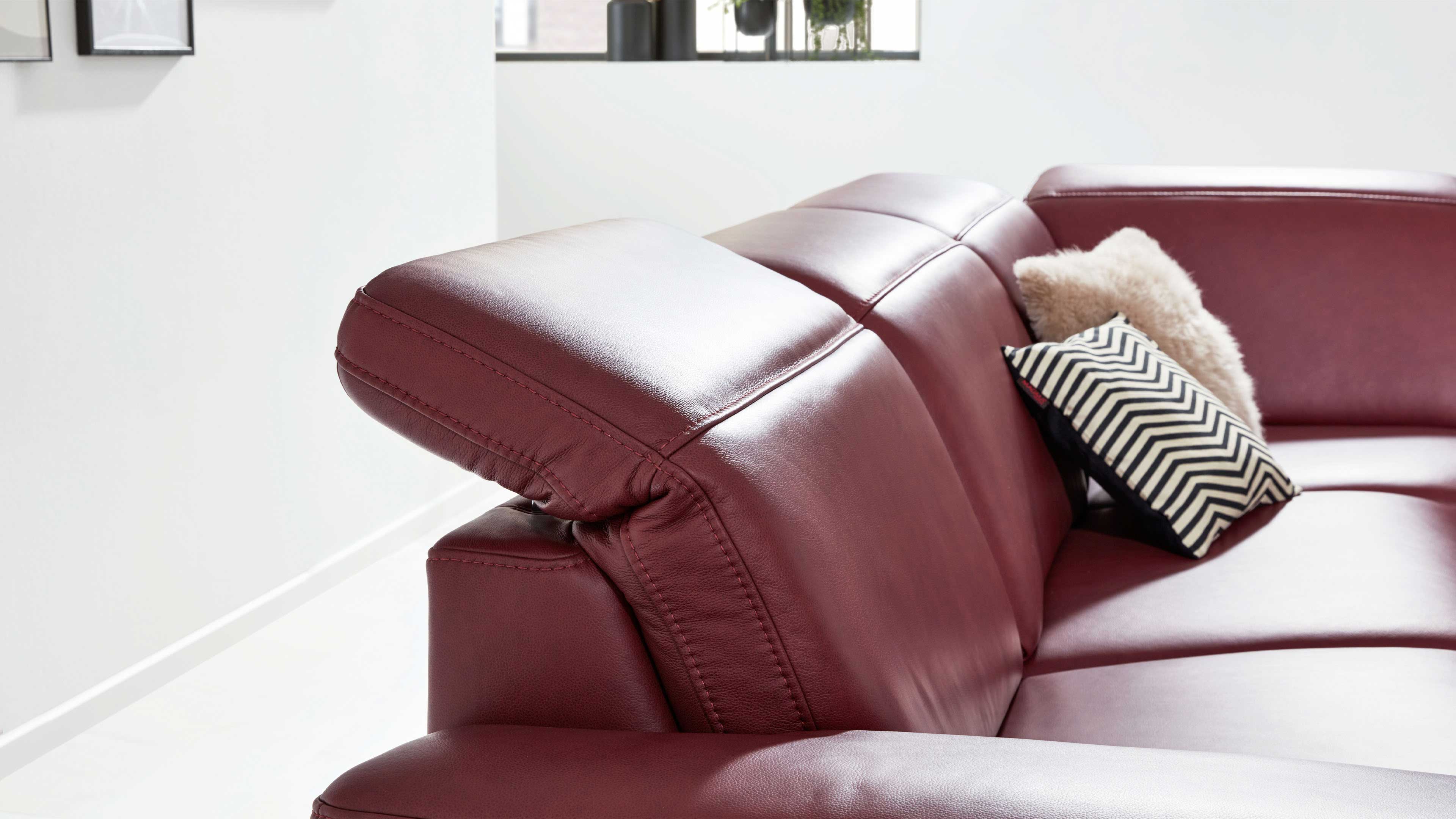 Das Ecksofa aus der Interliving Sofa Serie 4054 vereint stilvolles Design, hochwertige Materialien und durchdachten Komfort – perfekt für dich, wenn du zeitlose Eleganz und gemütlichen Sitzkomfort schätzt. Der barolofarbene LongLife-Lederbezug begeistert mit seinem naturbelassenen Narbenbild, einem angenehm soften Griff und einer voluminösen Haptik. So entsteht eine edle, warme Ausstrahlung, die deinem Wohnraum eine luxuriöse Note verleiht.