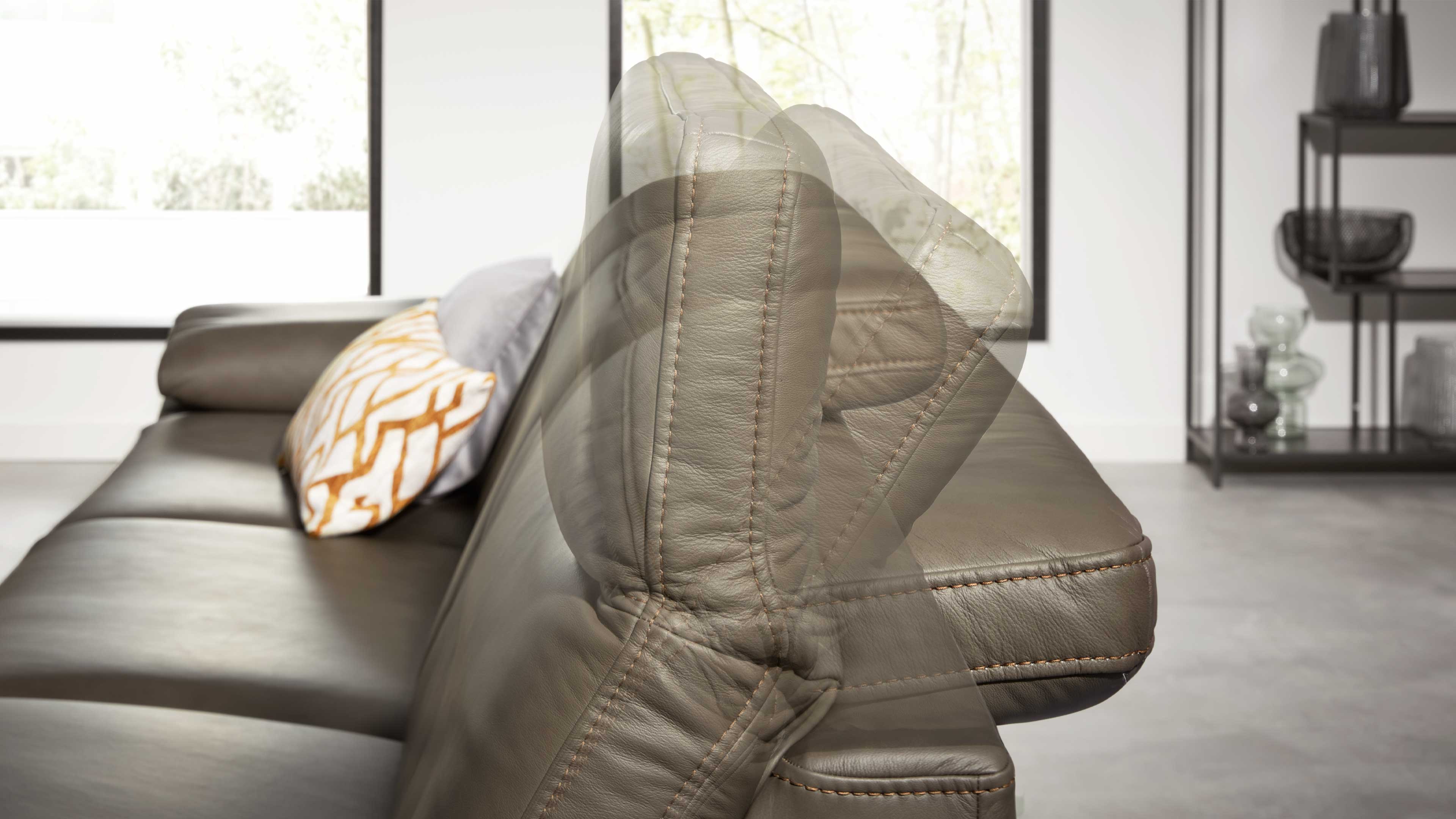 Die manuell verstellbaren Kopfpolster mit Rasterbeschlag lassen sich individuell anpassen – perfekt, um deine ideale Liege- oder Sitzposition zu finden. Ob du liest, fernsiehst oder einfach abschalten willst: Dieses Sofa passt sich deinen Bedürfnissen an.