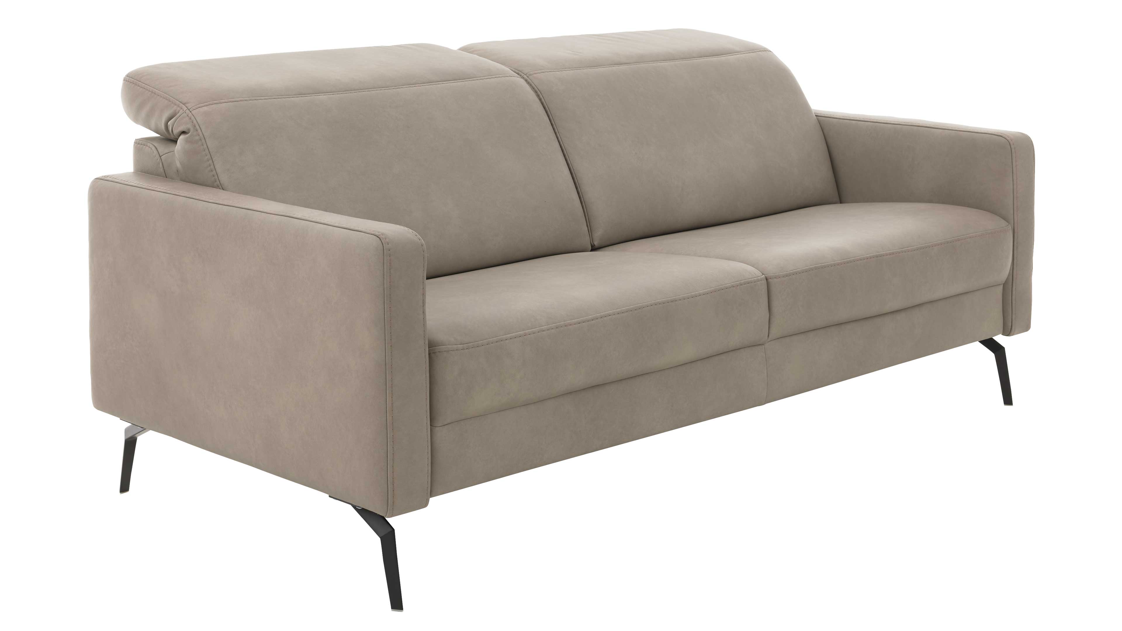 Der Bezug aus Leder Cloudy in Kiesel begeistert mit seiner feinen 2-Ton-Struktur, der angenehm weichen Haptik und einer edel-warmen Ausstrahlung. Die schmale Armlehne betont das filigrane Design und macht das Sofa zu einem stilvollen Akzent für moderne Wohnräume – leicht, elegant und wunderbar wohnlich.