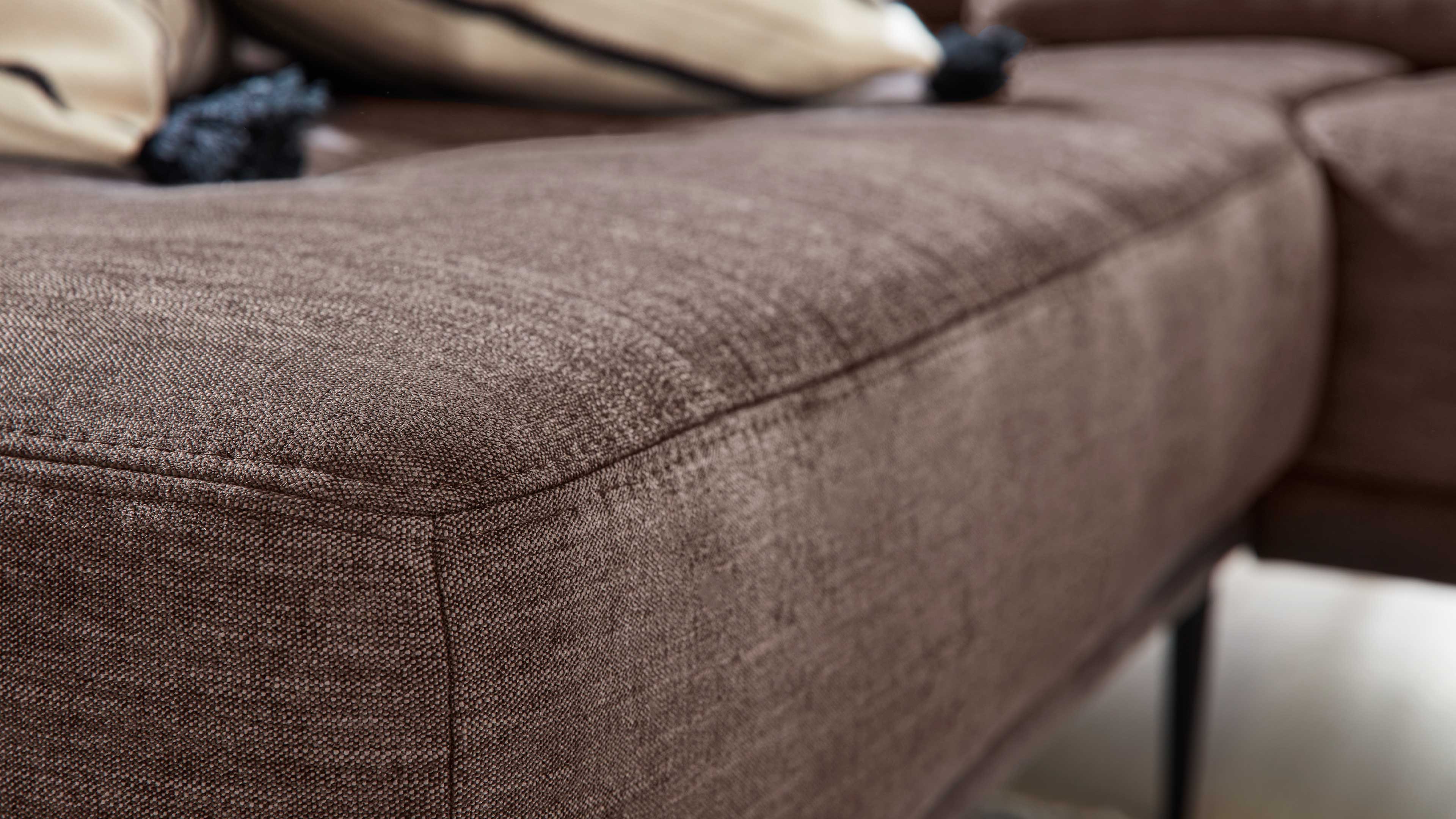 Das Ecksofa aus der Interliving Sofa Serie 4250 vereint moderne Klarheit mit wohnlicher Wärme. Mit den schwarzen Metallfüßen, dem hochwertigen braunen Bezug und der markant gesteppten Sitzfläche bringt das Sofa stilvollen Clean-Chic in dein Wohnzimmer. Die Ton-in-Ton-Doppelnaht unterstreicht das harmonische Gesamtbild – auf Wunsch auch als Kontrastnaht erhältlich. Hinweis: Der Rücken ist nicht im Originalstoff bezogen.