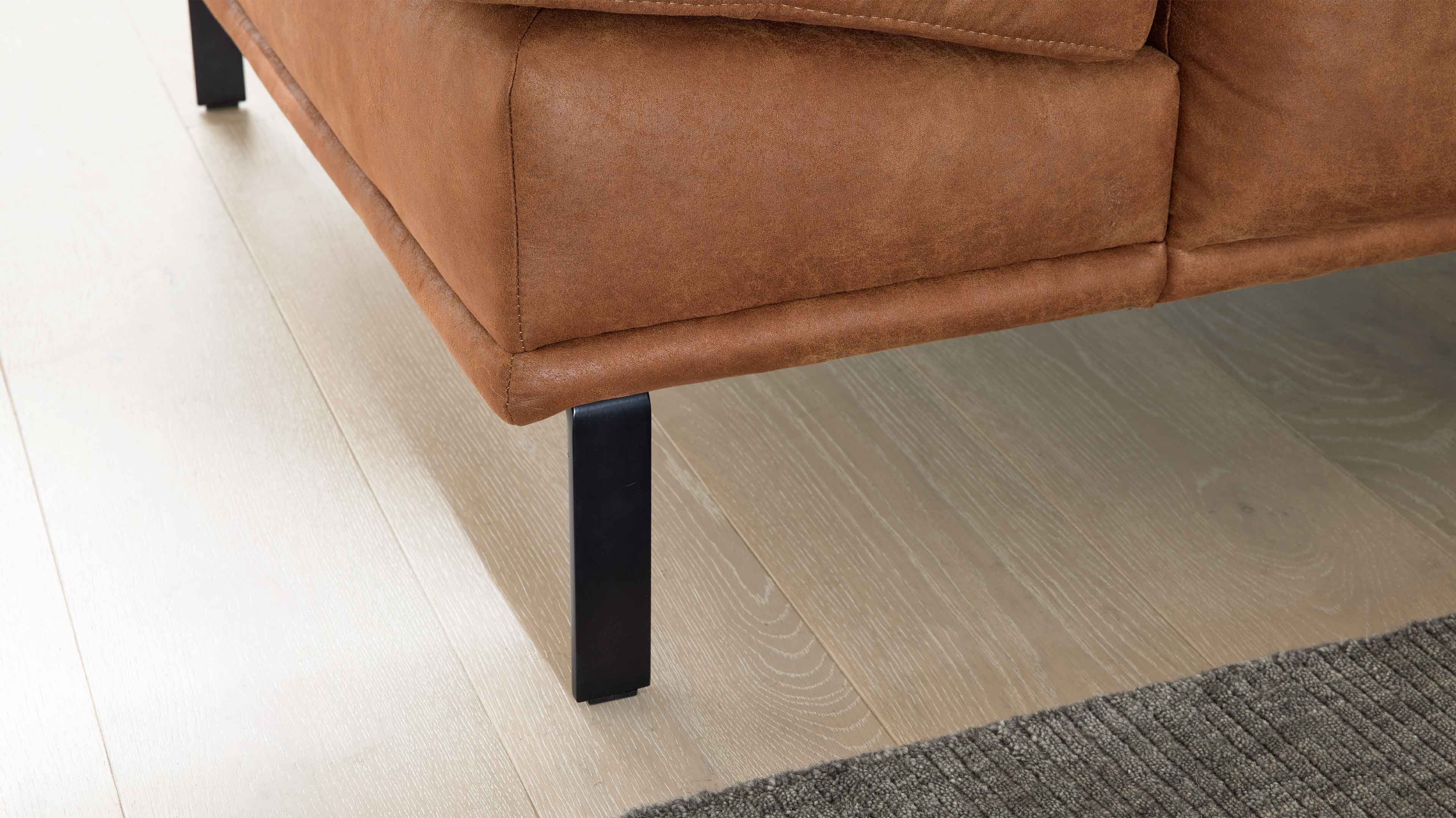 Das Ecksofa aus der Interliving Sofa Serie 4254 vereint modernes Design mit durchdachtem Komfort – perfekt für dein Wohnzimmer. Mit seinem tabacfarbenen Mischgewebebezug mit Lederanteil und den mattschwarzen Metallfüßen strahlt die Sofaecke schlichte Eleganz und zeitlose Wertigkeit aus.