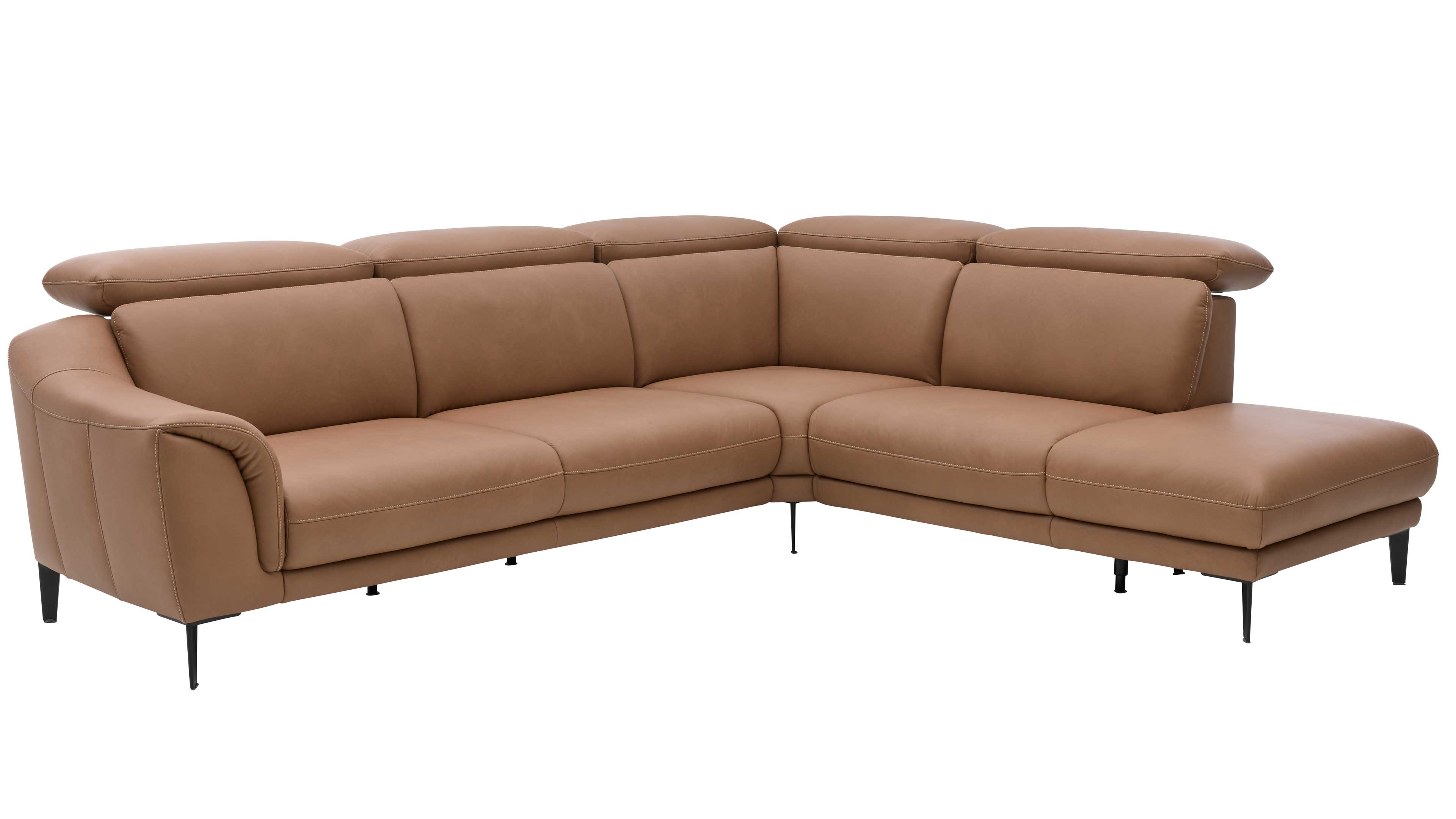 Diese Sofalandschaft aus der Interliving Sofa Serie 4461 vereint exklusive Materialien, moderne Formensprache und durchdachten Komfort zu einem echten Highlight für dein Wohnzimmer. Der haselnussfarben pigmentierte Lederbezug Punch