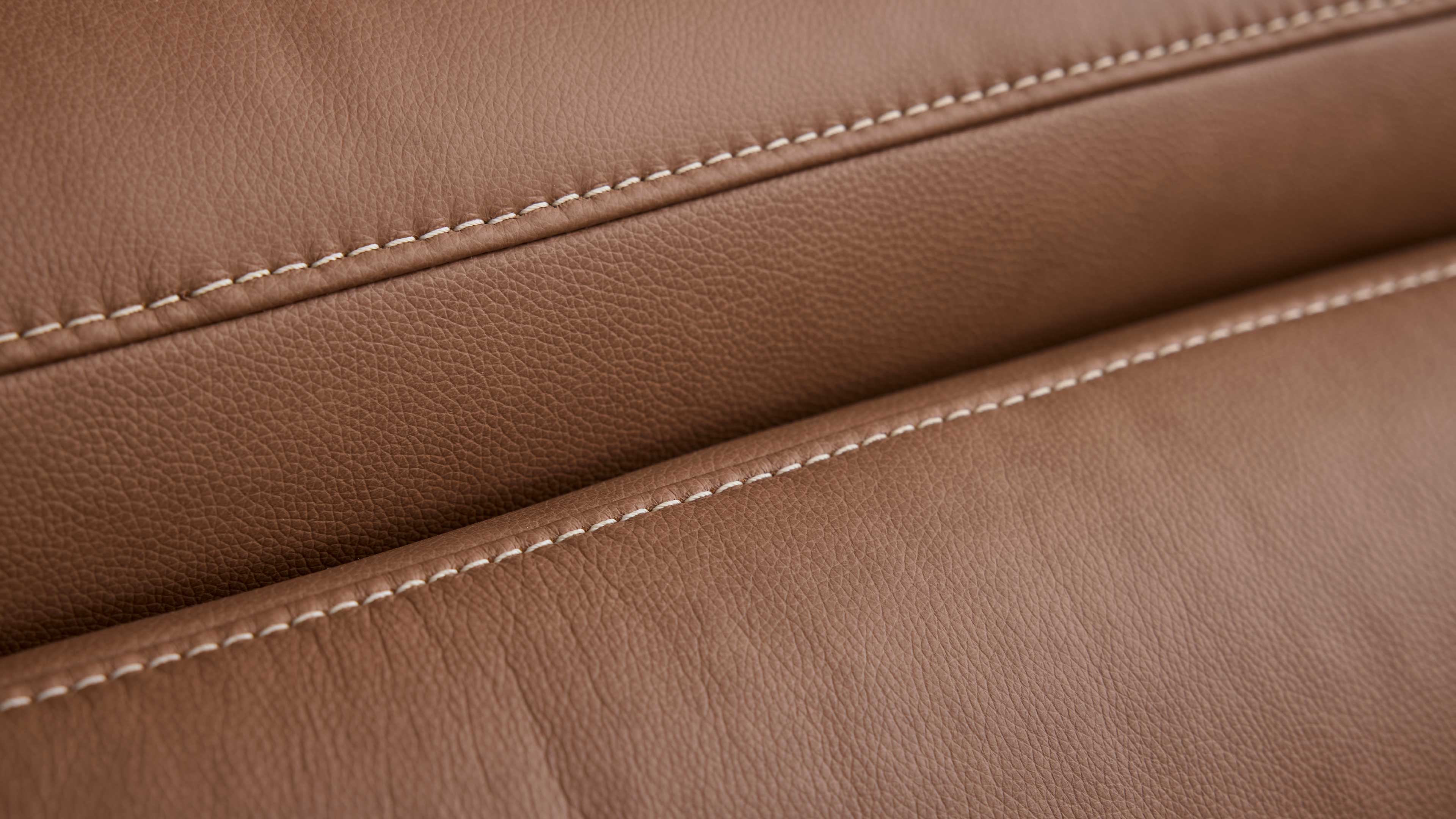 Das pflegeleichte Echtleder Punch bringt mit seinem natürlichen Look und der hochwertigen Haptik wohnliche Wärme in deine vier Wände. Die schwarzen Aluminiumfüße setzen einen modernen Akzent, der die ästhetische Leichtigkeit dieser Polstergarnitur unterstreicht – und gleichzeitig für Stabilität sorgt.