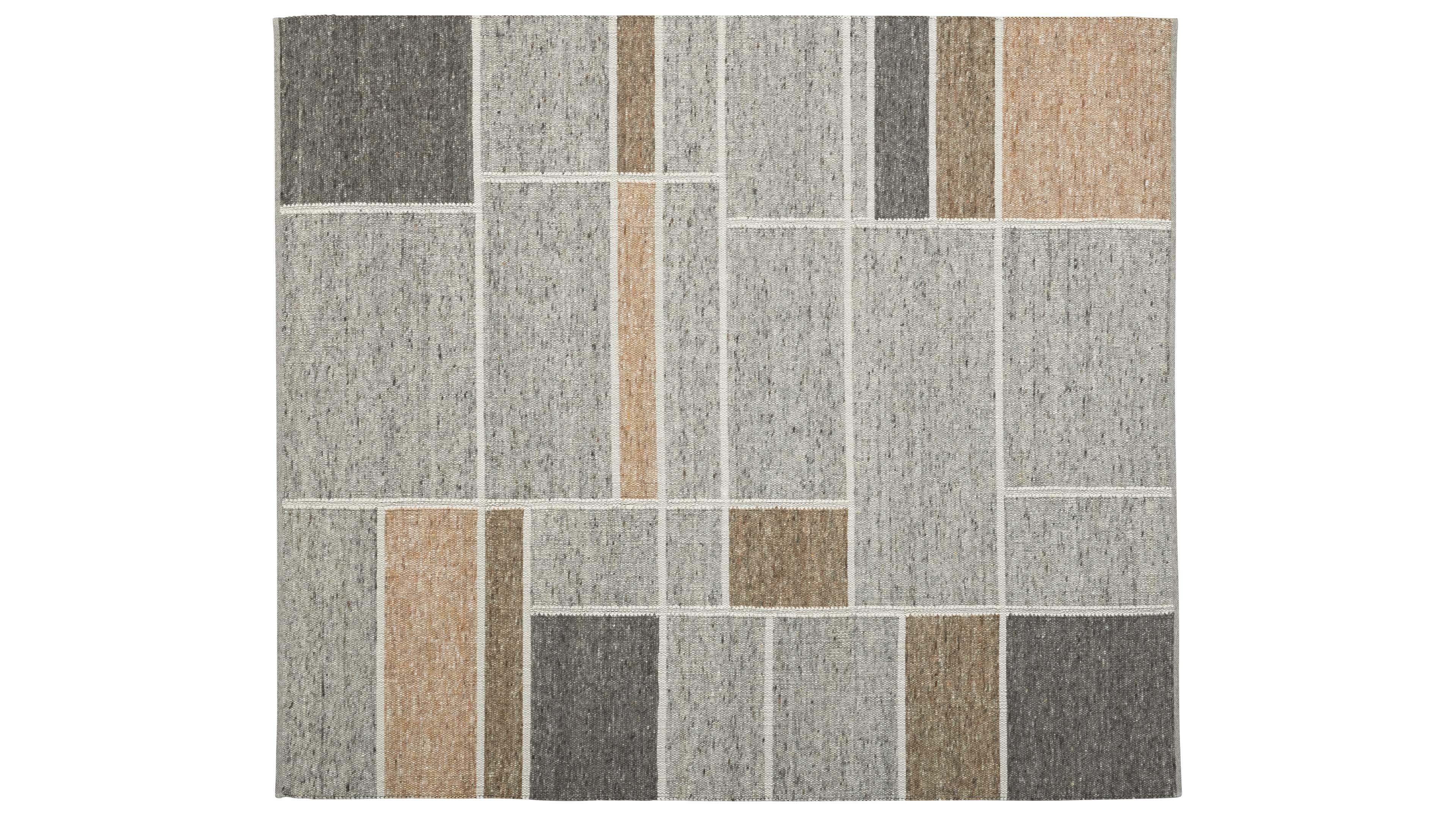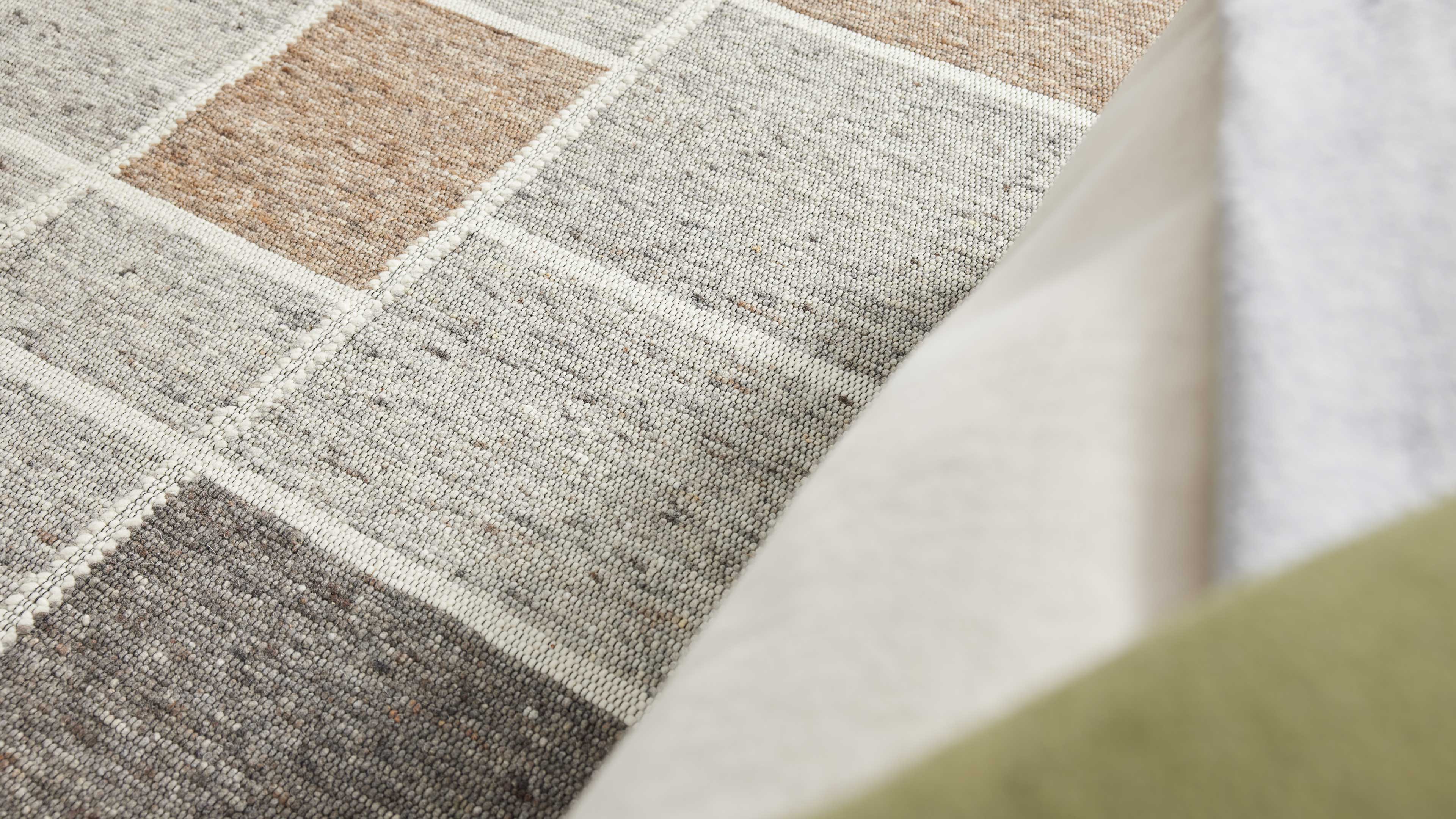 Handgewebter Teppich mit grafischem Patchwork-Design in warmen Naturtönen und feiner Struktur (verschiedene Größen verfügbar)