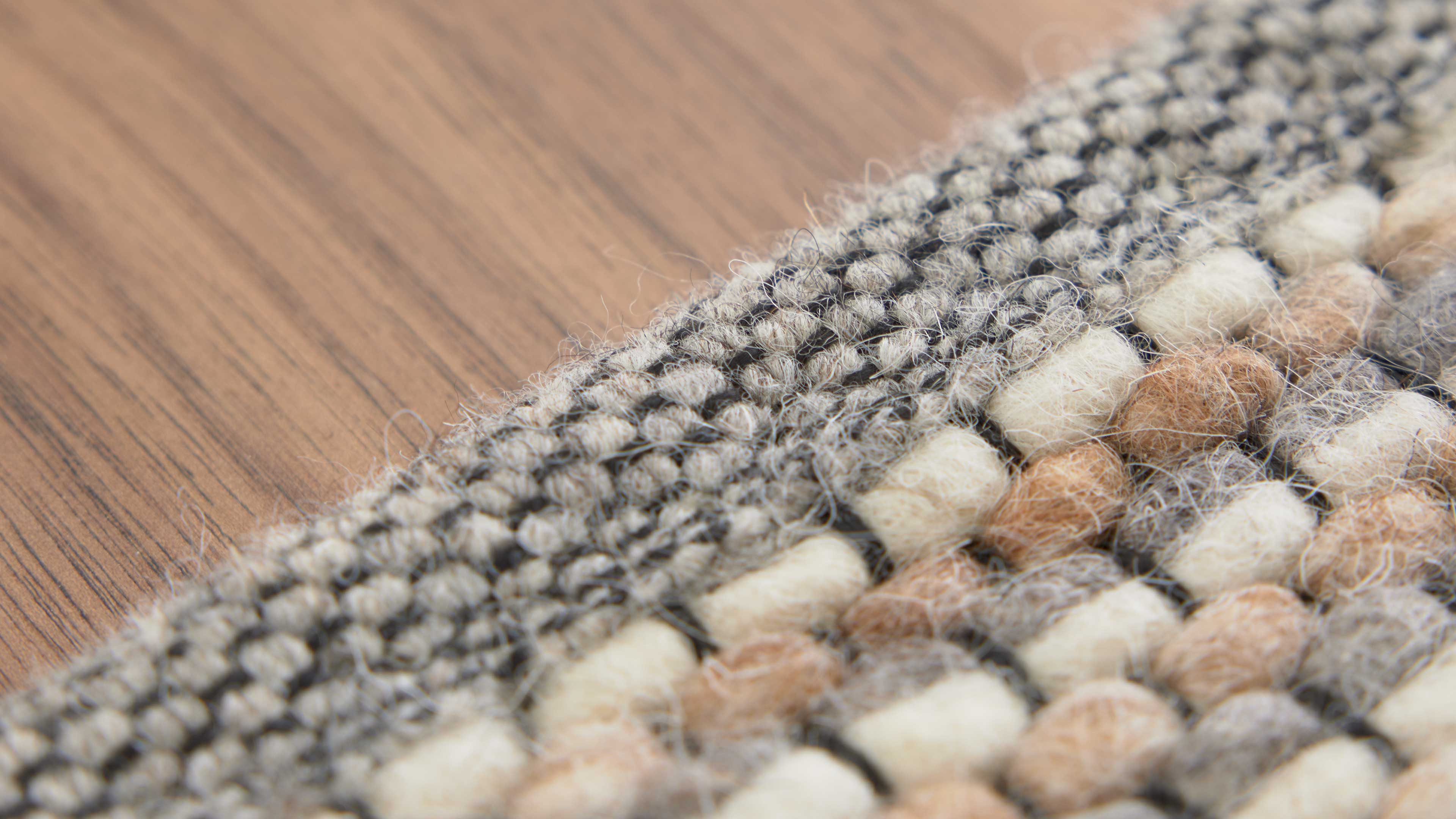 Die Nutzschicht besteht zu 100 % aus gewalkter Schurwolle, einem Naturmaterial mit hervorragenden Eigenschaften: weich, robust, schmutzunempfindlich und pflegeleicht. Die Rückseite aus 55 % gewalkter Schurwolle und 45 % Jute sorgt für Stabilität und macht den Teppich beidseitig nutzbar – durch regelmäßiges Wenden verlängerst du seine Lebensdauer spürbar.