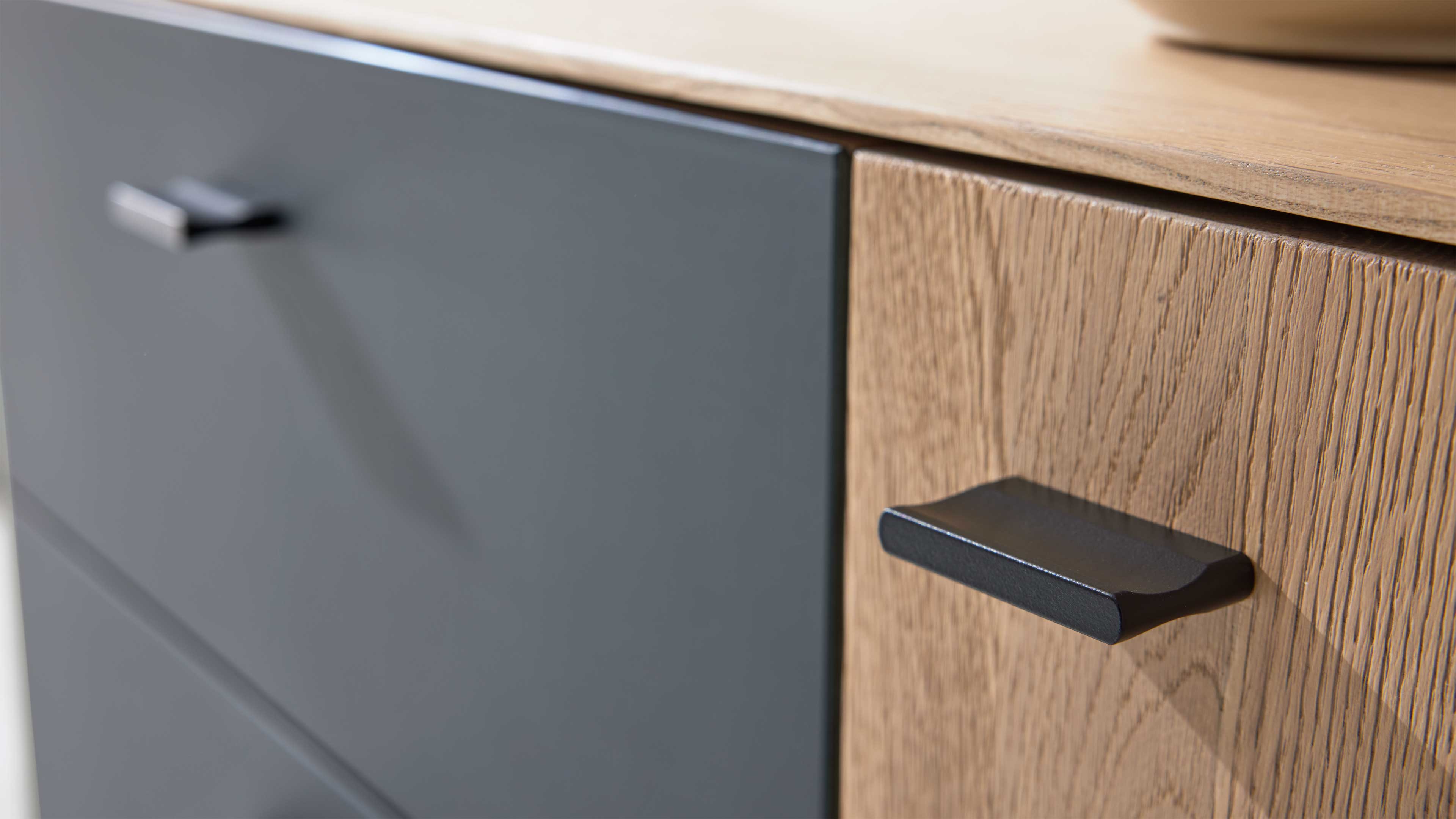 Sideboard in Wildeiche mit Frontakzenten in Dunkelgrau