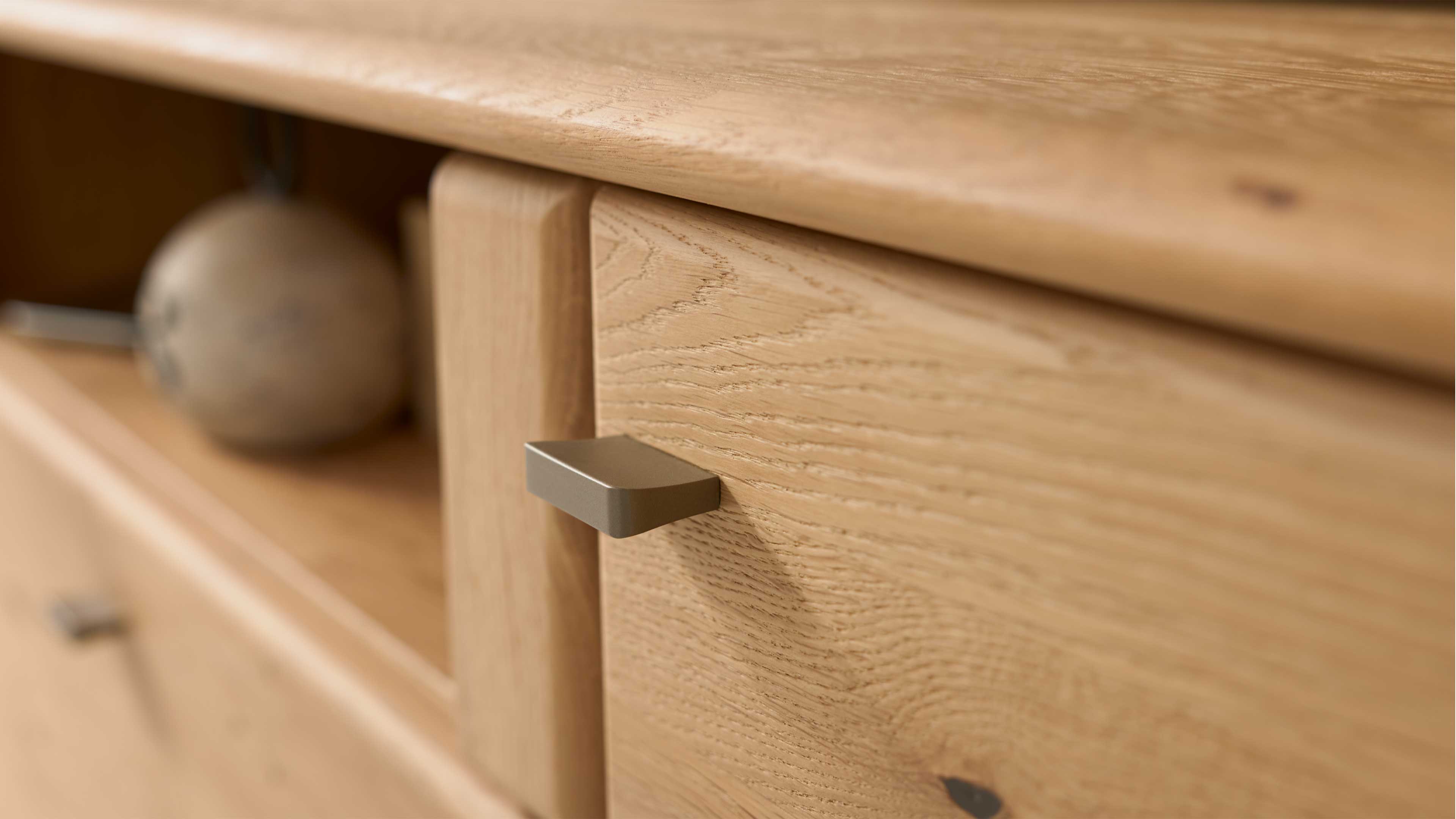 Die Interliving Wohnzimmer Serie 2028 bringt warmen Wohncharme und klare Formen in dein Zuhause. Soft gebürstete und geölte Wildeiche in Kombination mit eleganten Metallgriffen schafft eine Atmosphäre, die gleichzeitig gemütlich und modern wirkt. Perfekt für dich, wenn du auf langlebige Materialien, zeitloses Design und natürliche Wohnlichkeit Wert legst.