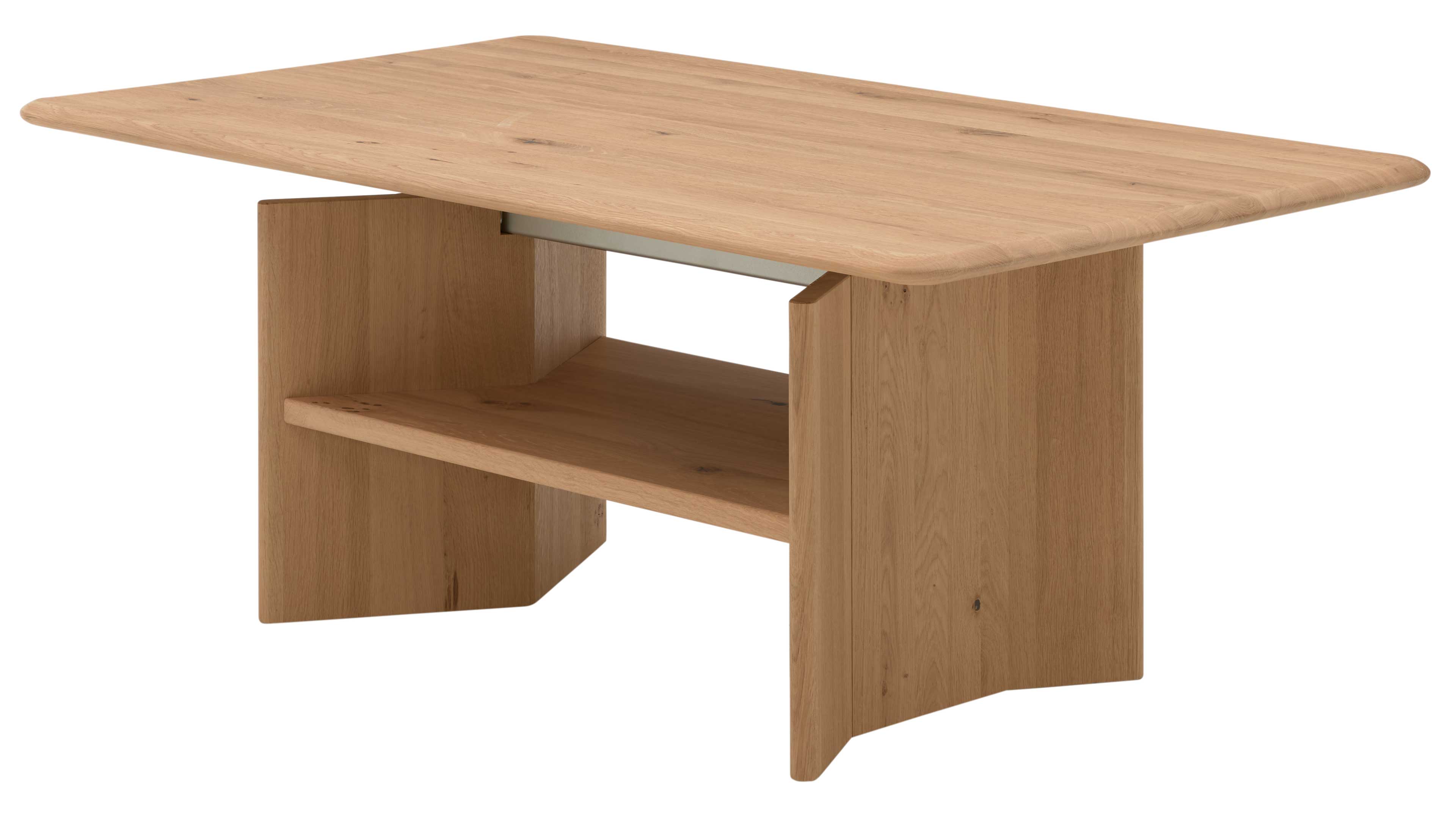 Höhenverstellbarer Couchtisch mit Ablagefächern in Wildeiche