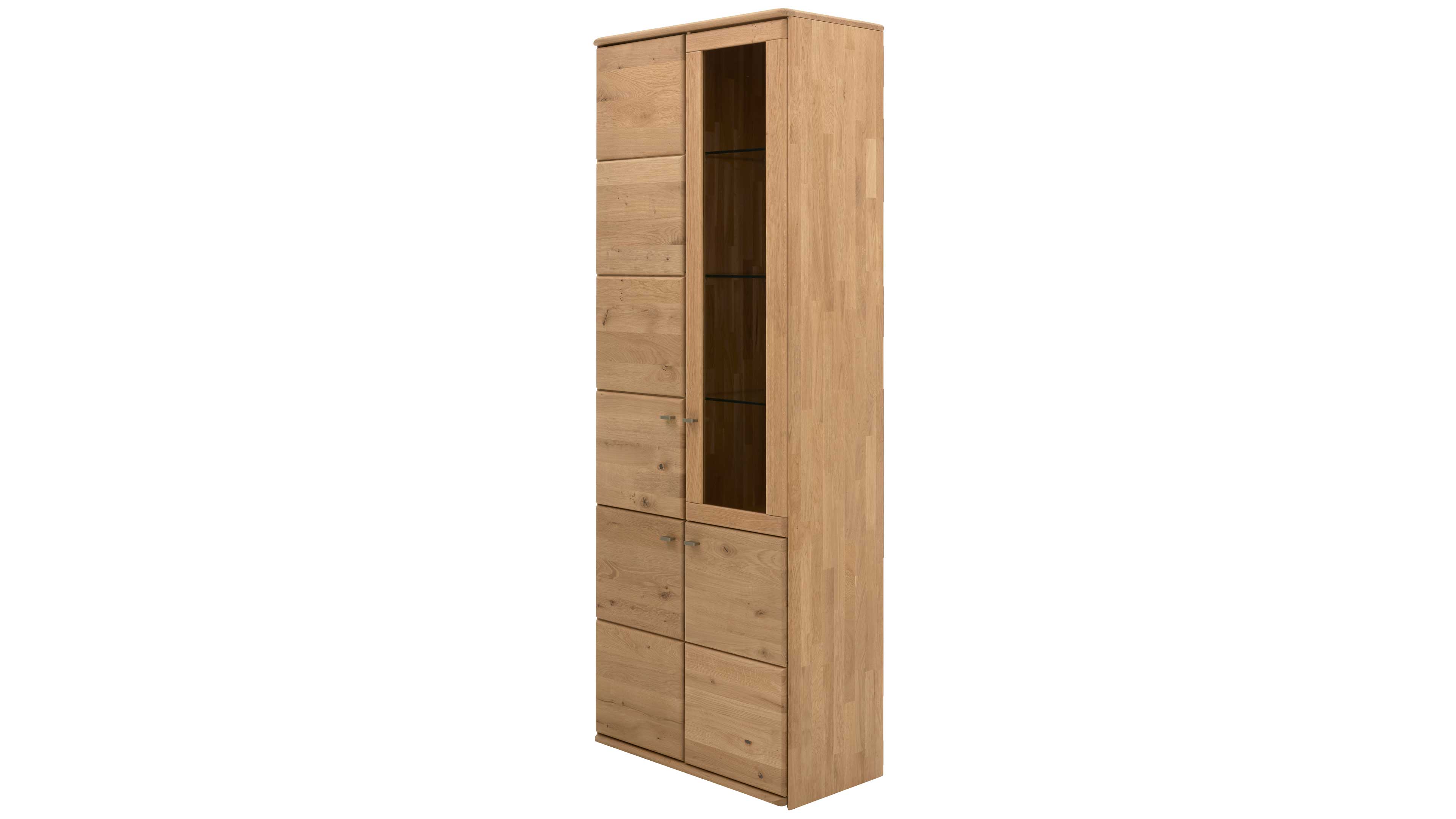 Die Vitrine aus der Interliving Wohnzimmer Serie 2028 kombiniert großzügigen Stauraum mit einer eleganten, modernen Optik. Gefertigt aus soft gebürsteter und geölter Wildeiche und veredelt mit Klarglaselementen sowie Metallgriffen, steht sie für natürliche Schönheit und funktionalen Wohnkomfort – perfekt für dich, wenn du Wert auf Stil, Struktur und hochwertige Materialien legst.