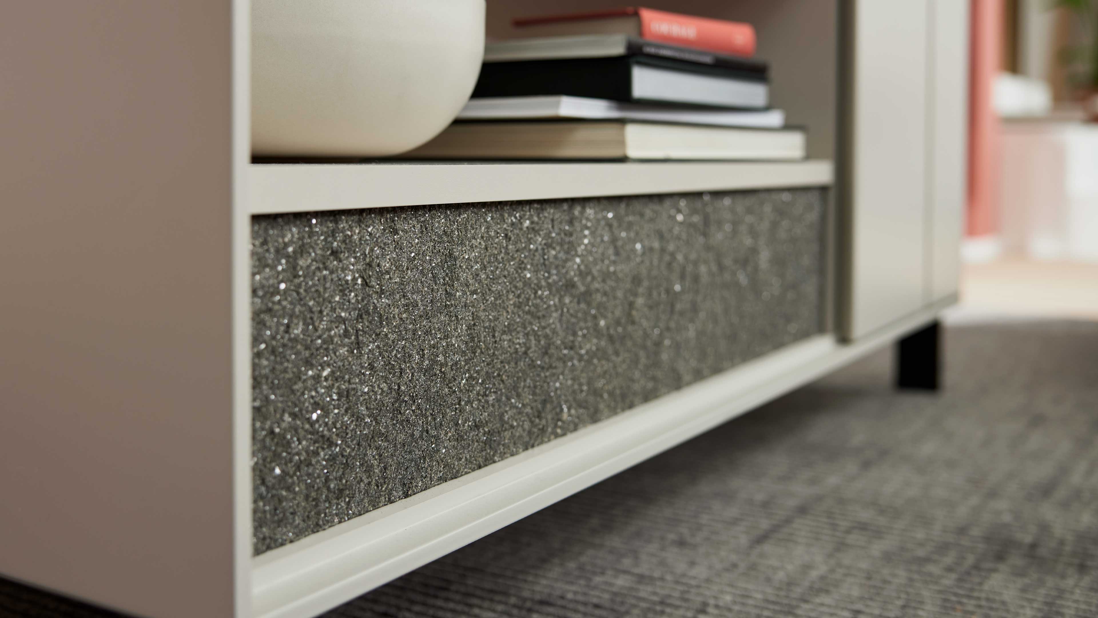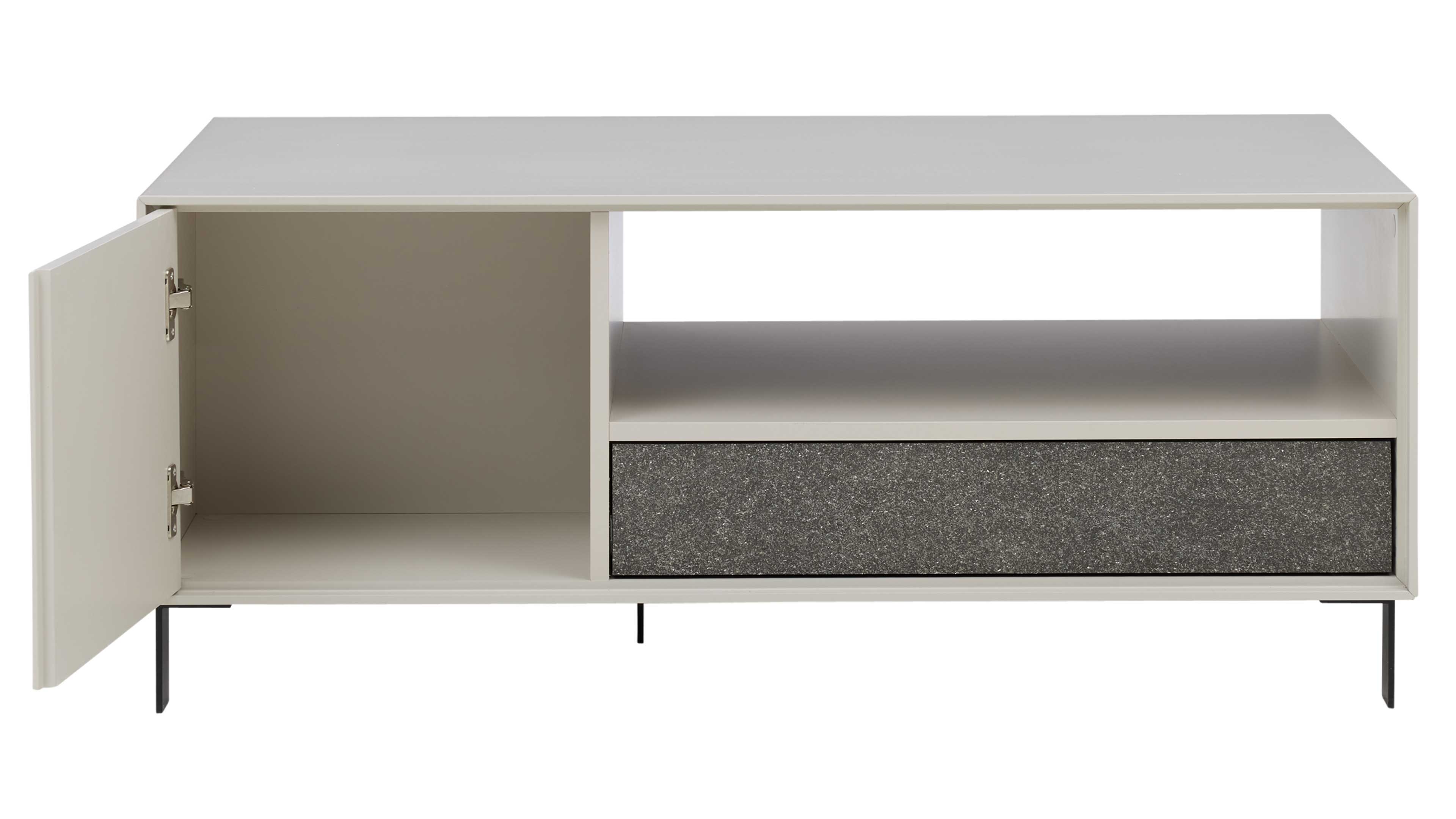 Der Couchtisch aus der Interliving Wohnzimmer Serie 2030 PLUS vereint hochwertige Materialien mit durchdachtem Design – perfekt für ein modernes Wohnzimmer mit Stil. Die Kombination aus Sahara cremefarbenen Lackoberflächen und markantem Granitfurnier verleiht dem Tisch eine edle, kontrastreiche Ausstrahlung und macht ihn zu einem echten Hingucker in deinem Wohnbereich.
