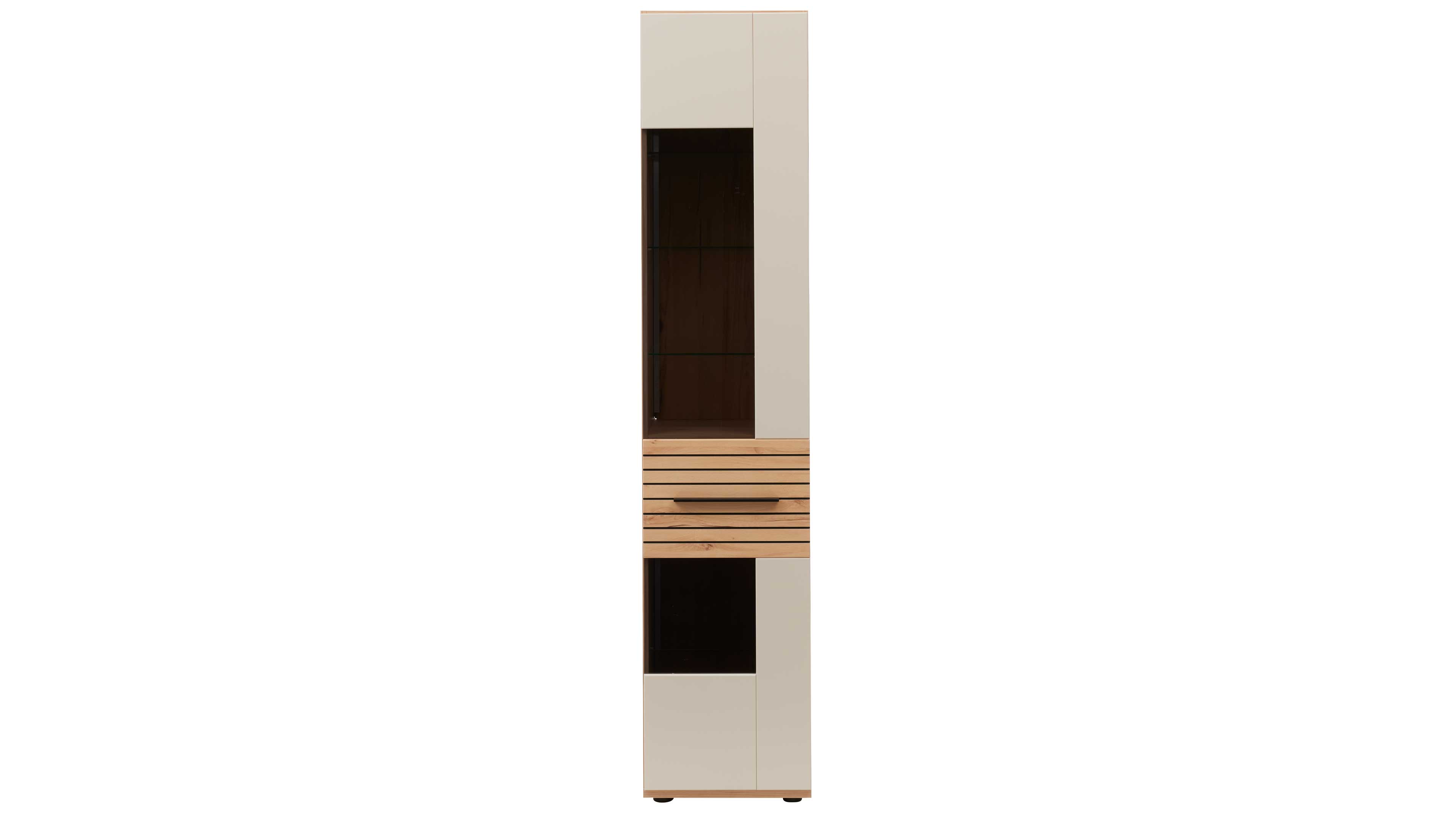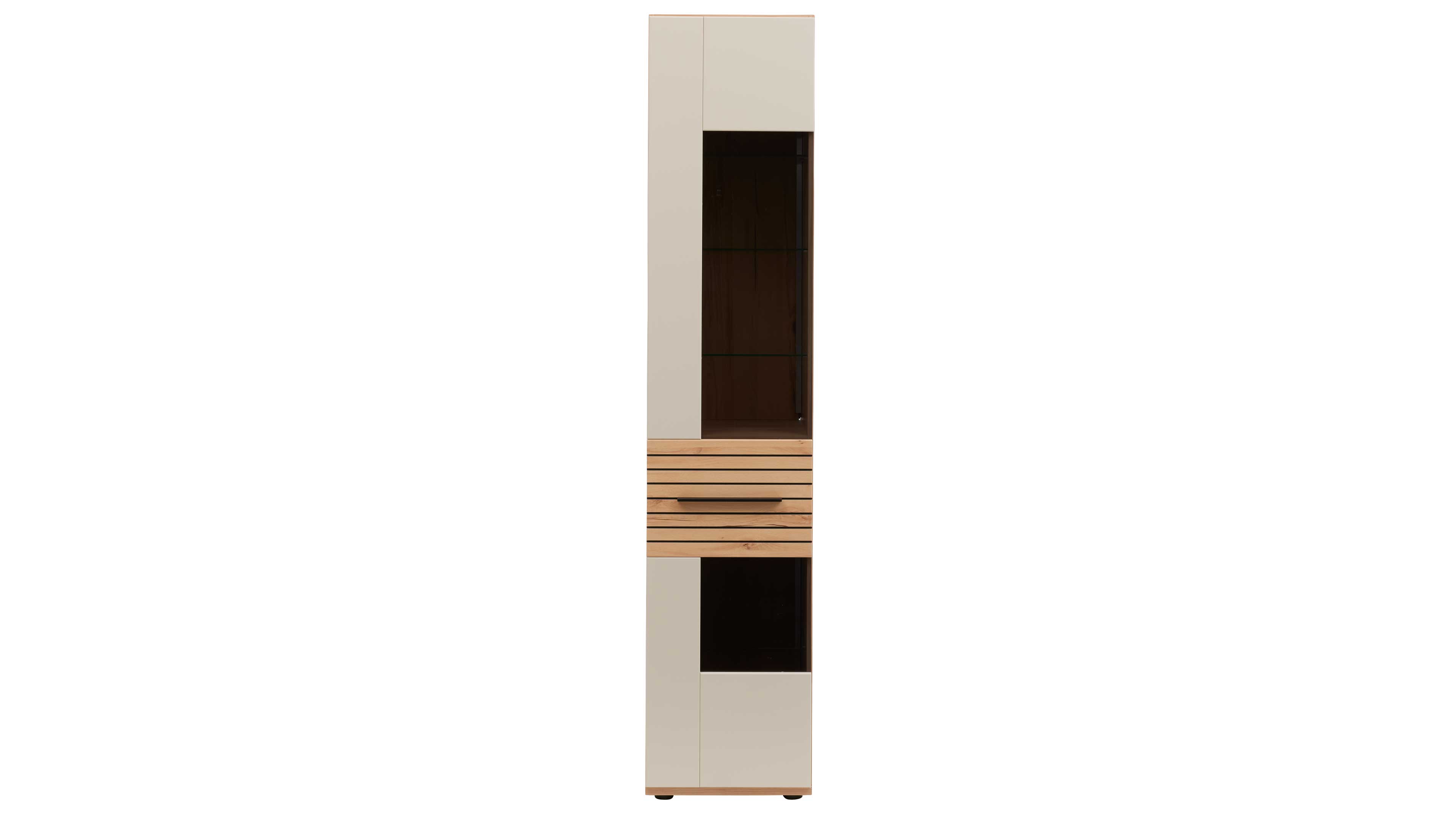 Vitrinenschrank in Sandbeige & Risseiche Dekor