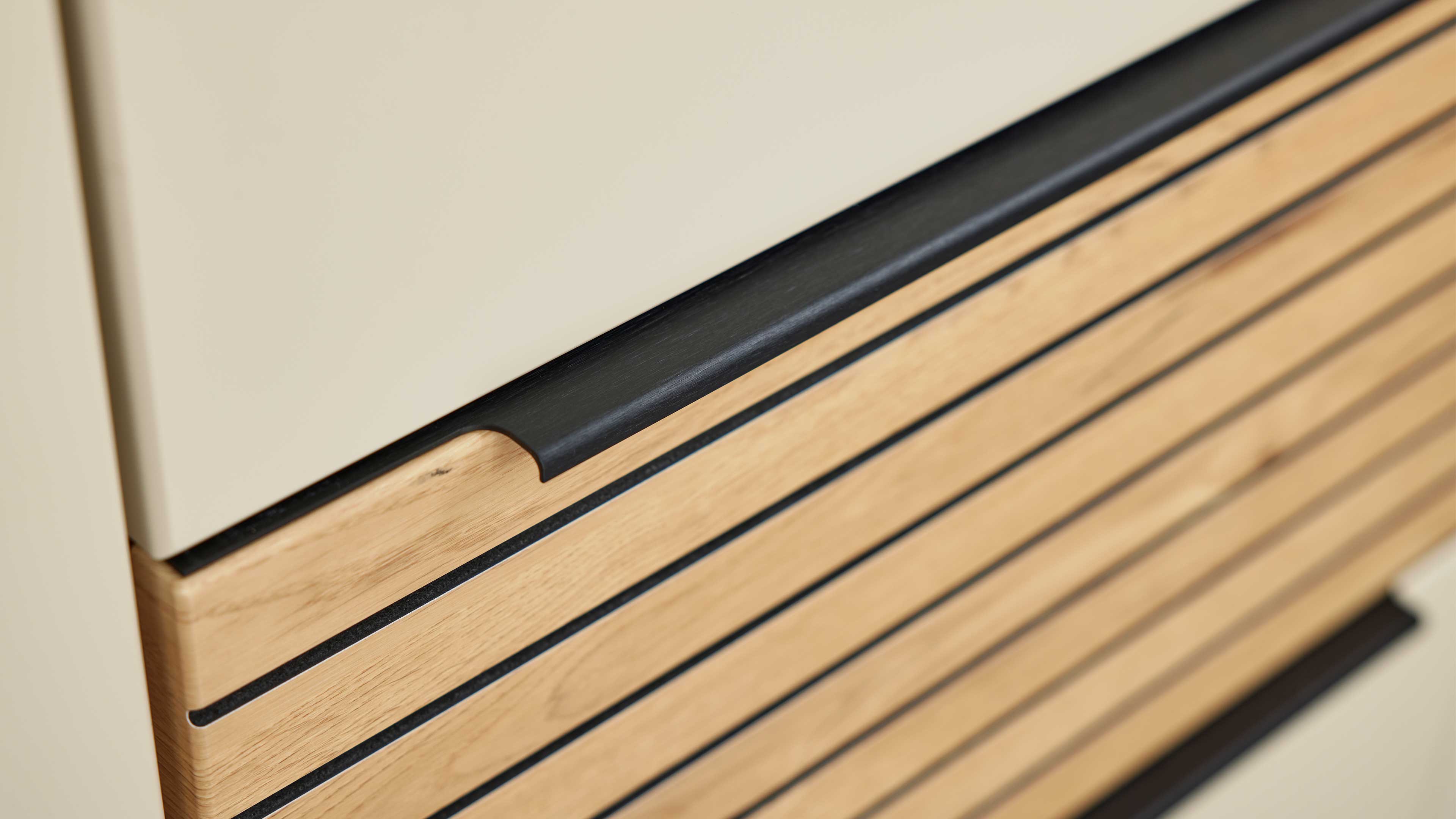 | Farbhinweis: | Sandbeige Risseiche Schwarz (Griffe und Füße) |