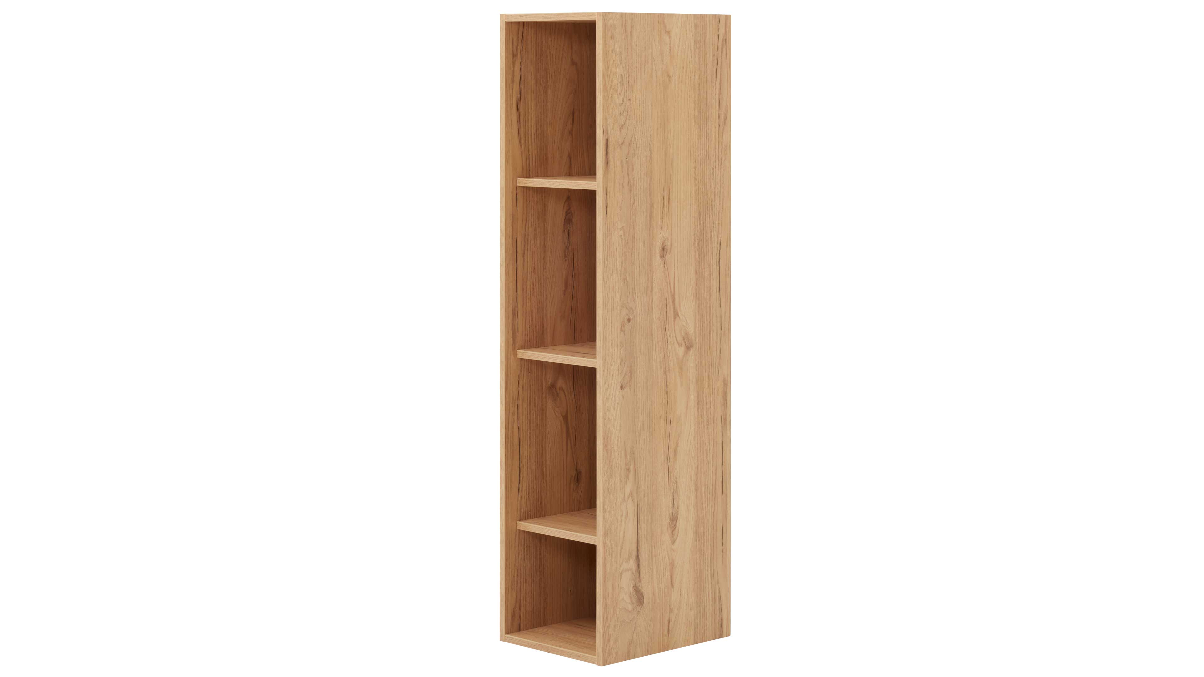 Das Regal mit ca. 90 x 215 x 40 cm (B/LxHxT) ergänzt das Sideboard perfekt. Zwei hohe Regalelemente mit jeweils fünf Holzböden und ein mittleres Aufsatz-Regal mit drei Böden schaffen Platz für Bücher, Deko oder persönliche Lieblingsstücke. Die filigrane Gestaltung in Risseiche Nachbildung verleiht der Kombination Leichtigkeit und Offenheit – funktional und dekorativ zugleich.
