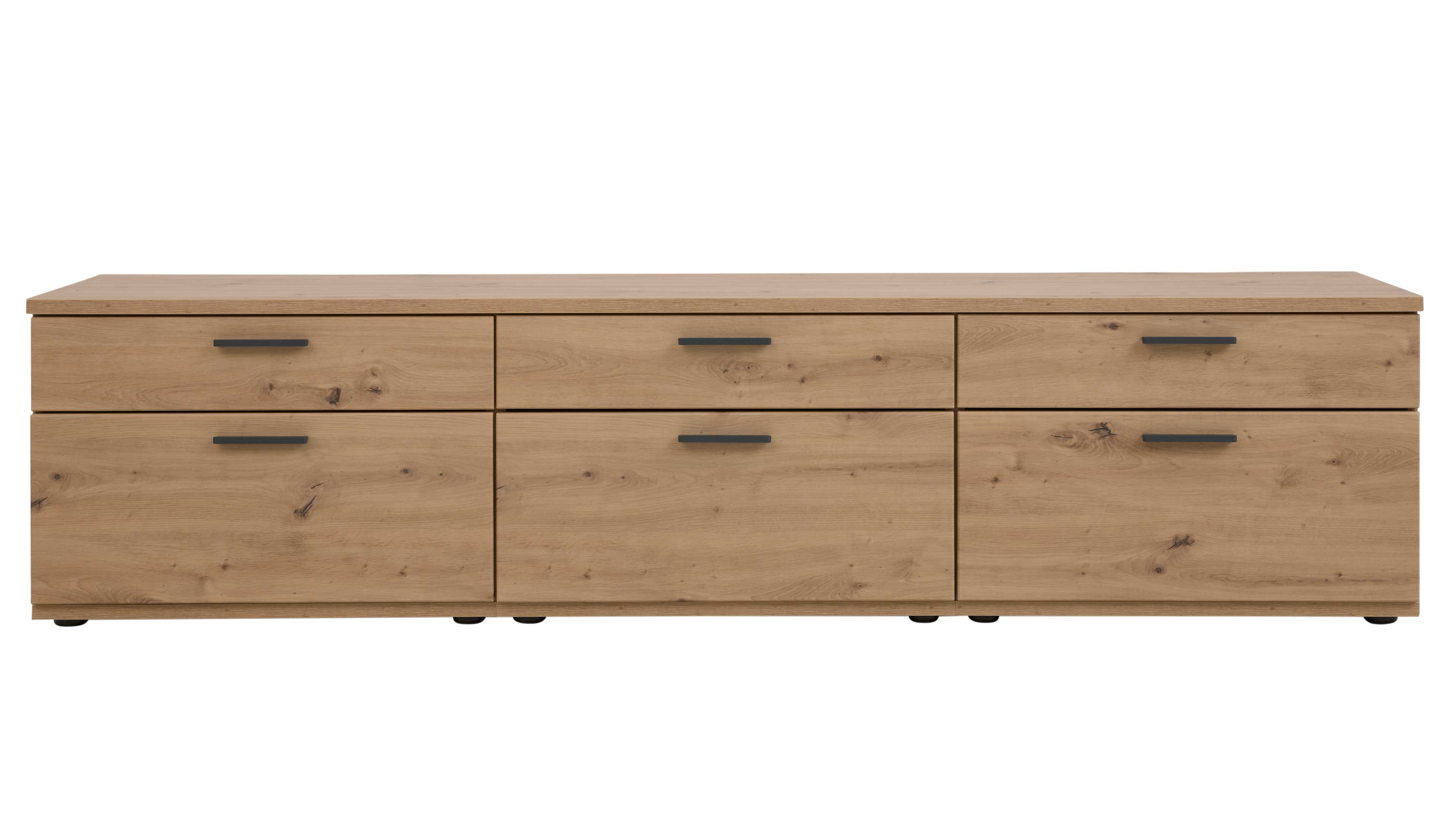Die melaminbeschichteten Oberflächen der Möbel sind kratzfest, pflegeleicht und besonders widerstandsfähig – perfekt für den täglichen Gebrauch. Türen mit Schließdämpfung und Schubladen mit Soft-Close-Funktion sorgen für ein angenehm leises, komfortables Handling. Zwei Front- und Griffvarianten stehen zur Wahl, sodass du die Wohnwand individuell an deinen Einrichtungsstil anpassen kannst.