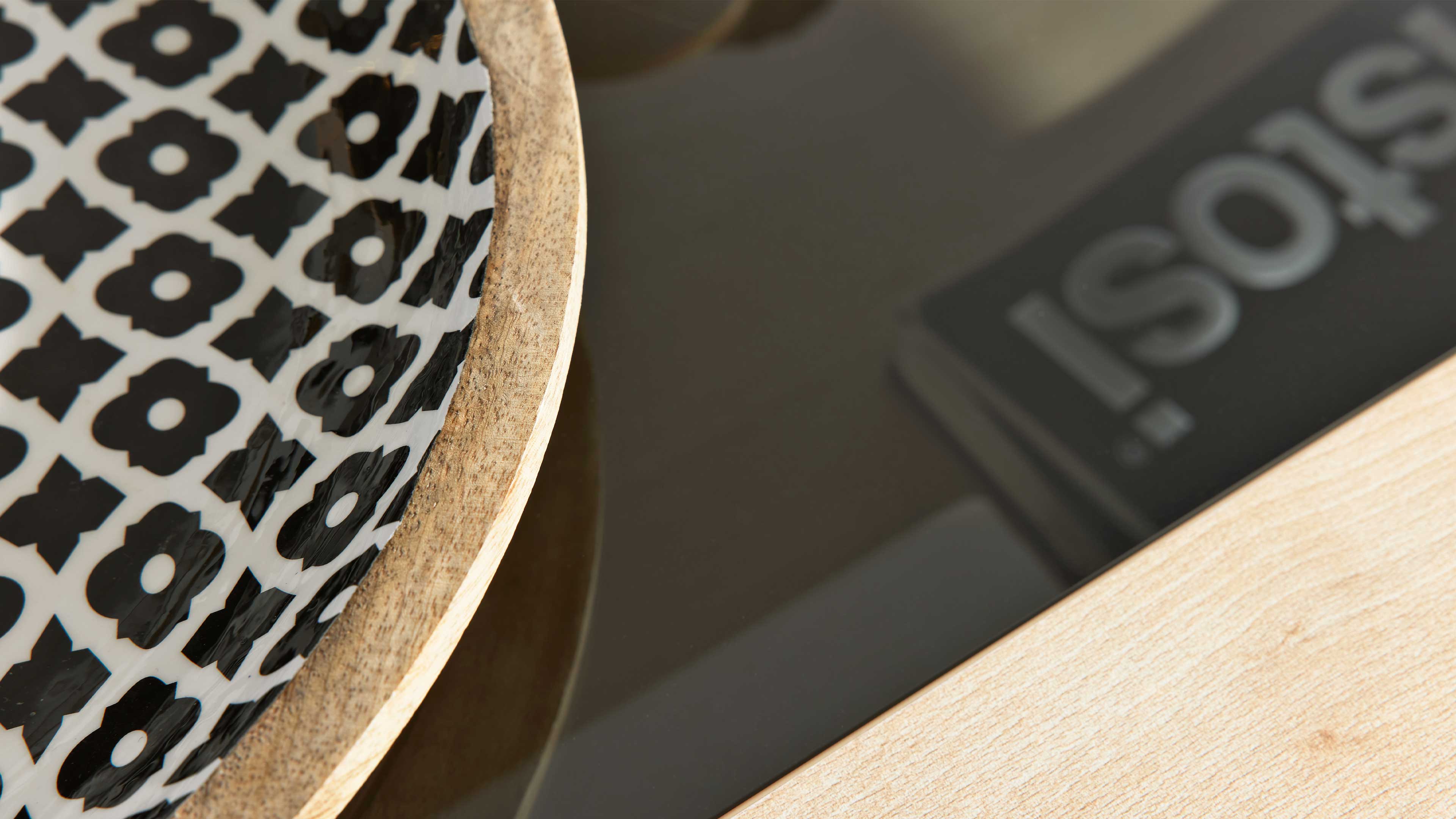 Die Einlage aus grau getöntem Glas ist nicht nur ein optisches Highlight, sondern auch besonders pflegeleicht und widerstandsfähig. Ein umlaufender ABS-Kantenschutz schützt den Tisch im Alltag zuverlässig vor Stößen – für eine langlebige, formschöne Optik. Für noch mehr Ordnung sorgt der praktische Ablageboden unter der Tischplatte. Hier finden Zeitschriften, Fernbedienungen oder persönliche Dinge dezent Platz – während die obere Fläche frei bleibt für Deko, Getränke oder kleine Genussmomente.