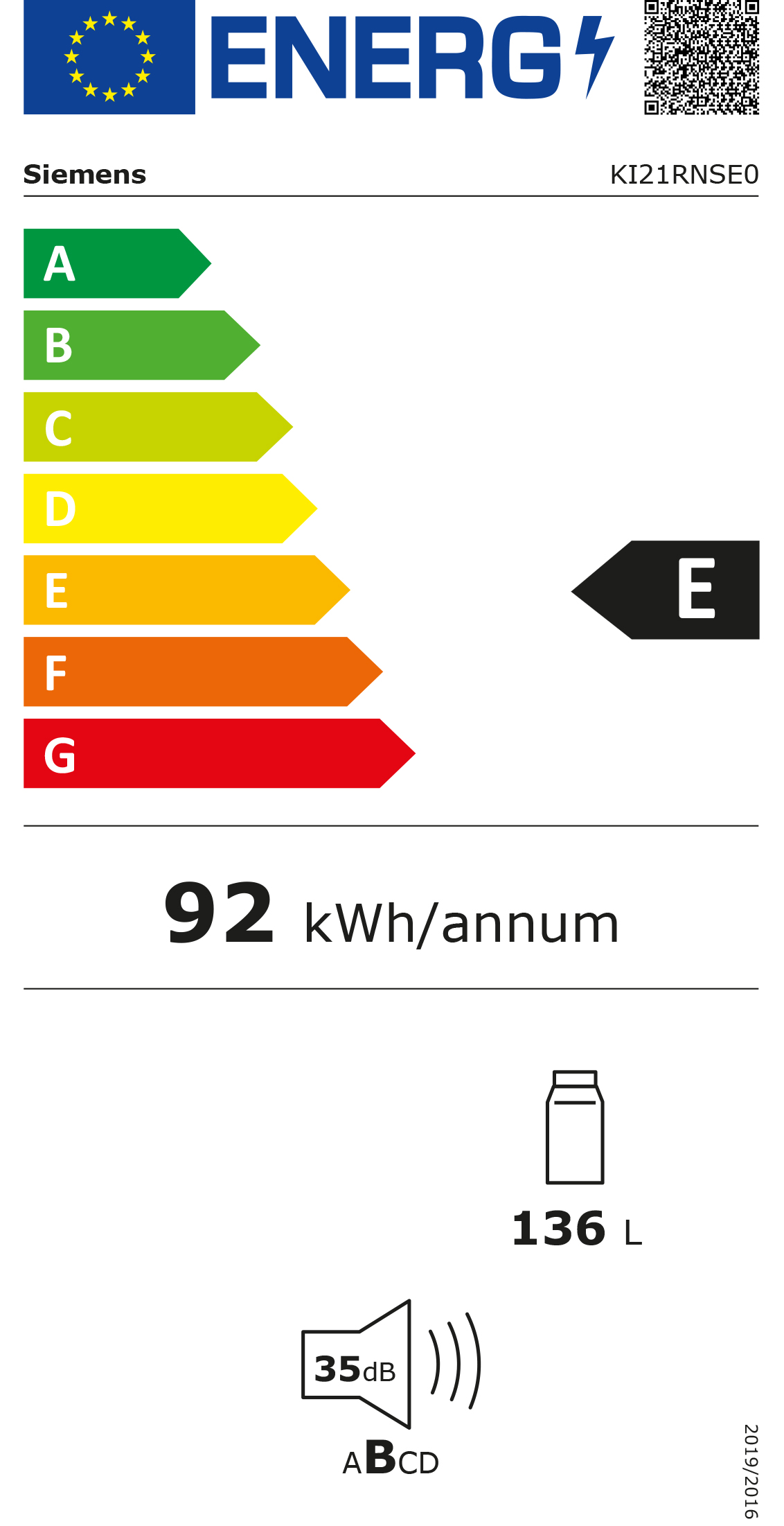 Der Kühlschrank KI21RNSE0 entspricht der Energieeffizienzklasse E (Spektrum A bis G) und bietet dir flexibel nutzbaren Kühlraum. Die Flachschirmhaube LI63LA526 arbeitet zuverlässig in der Energieeffizienzklasse C (Spektrum A+++ bis D).