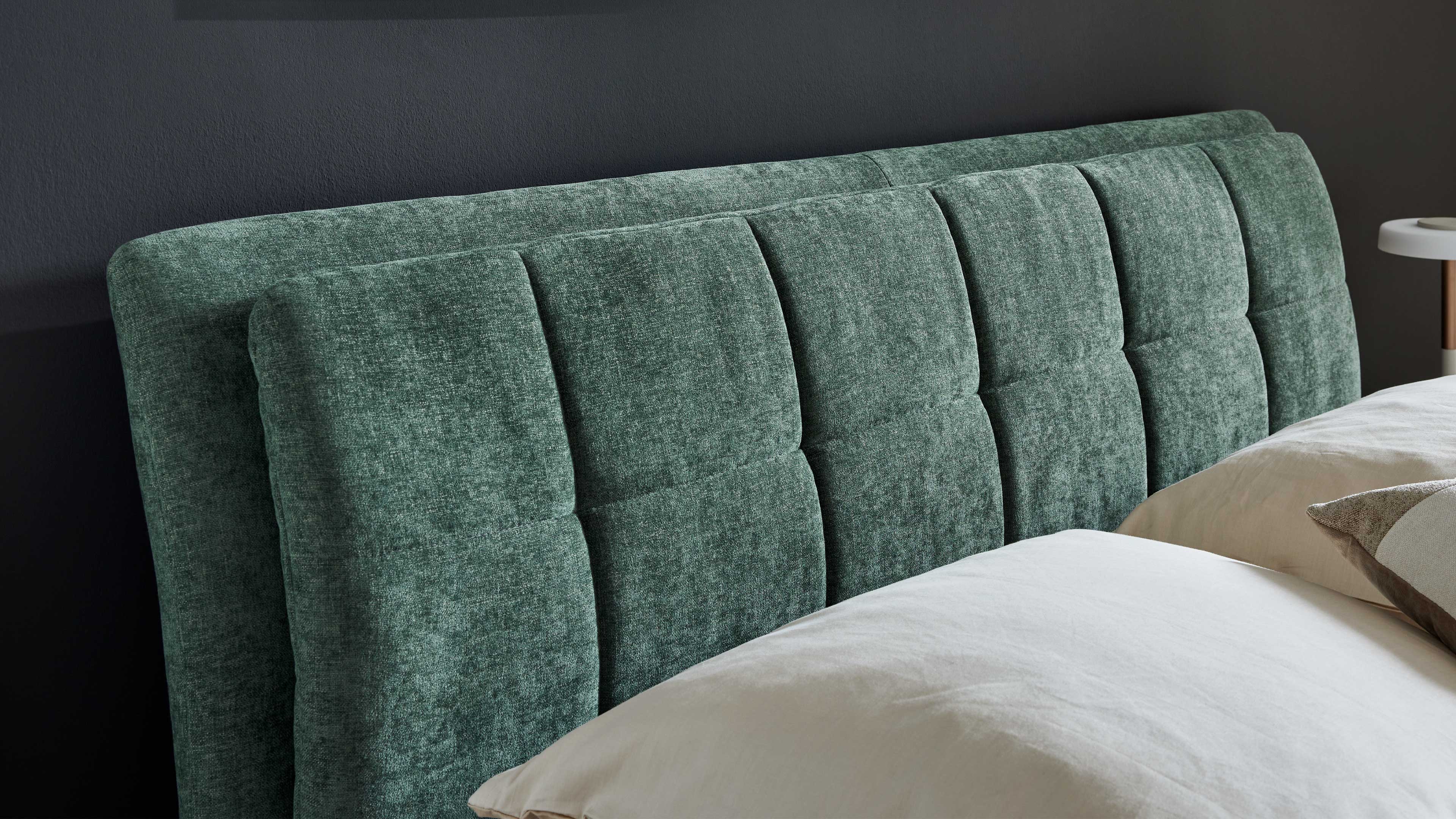 Das Polsterbett aus der Interliving Bettensystem Serie 1420 überzeugt mit seinem edlen moosgrünen Chenillebezug, einem markanten gesteppten Kopfteil und durchdachter Funktionalität für deinen Alltag. Mit ca. 196 x 116 x 226 cm (BxHxL) und einer großzügigen Liegefläche von ca. 180 x 200 cm (BxL) bietet dir dieses Doppelbett viel Platz für erholsame Nächte.