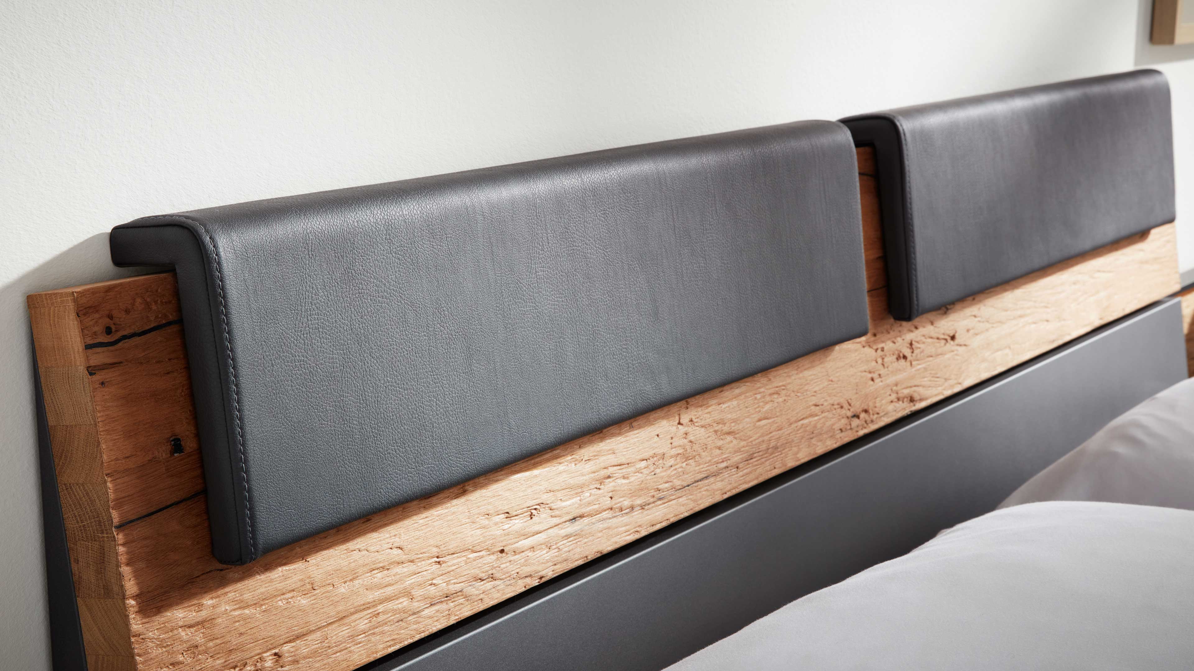 Für noch mehr Bequemlichkeit ergänzt das zweiteilige Aufsatzpolster-Set das Bett stilvoll und komfortabel. Der graphitfarbene Kunstlederbezug unterstreicht die elegante Gesamtoptik, während die Polster jeweils ca. 82 x 19 x 7 cm (B/LxHxT) messen.
