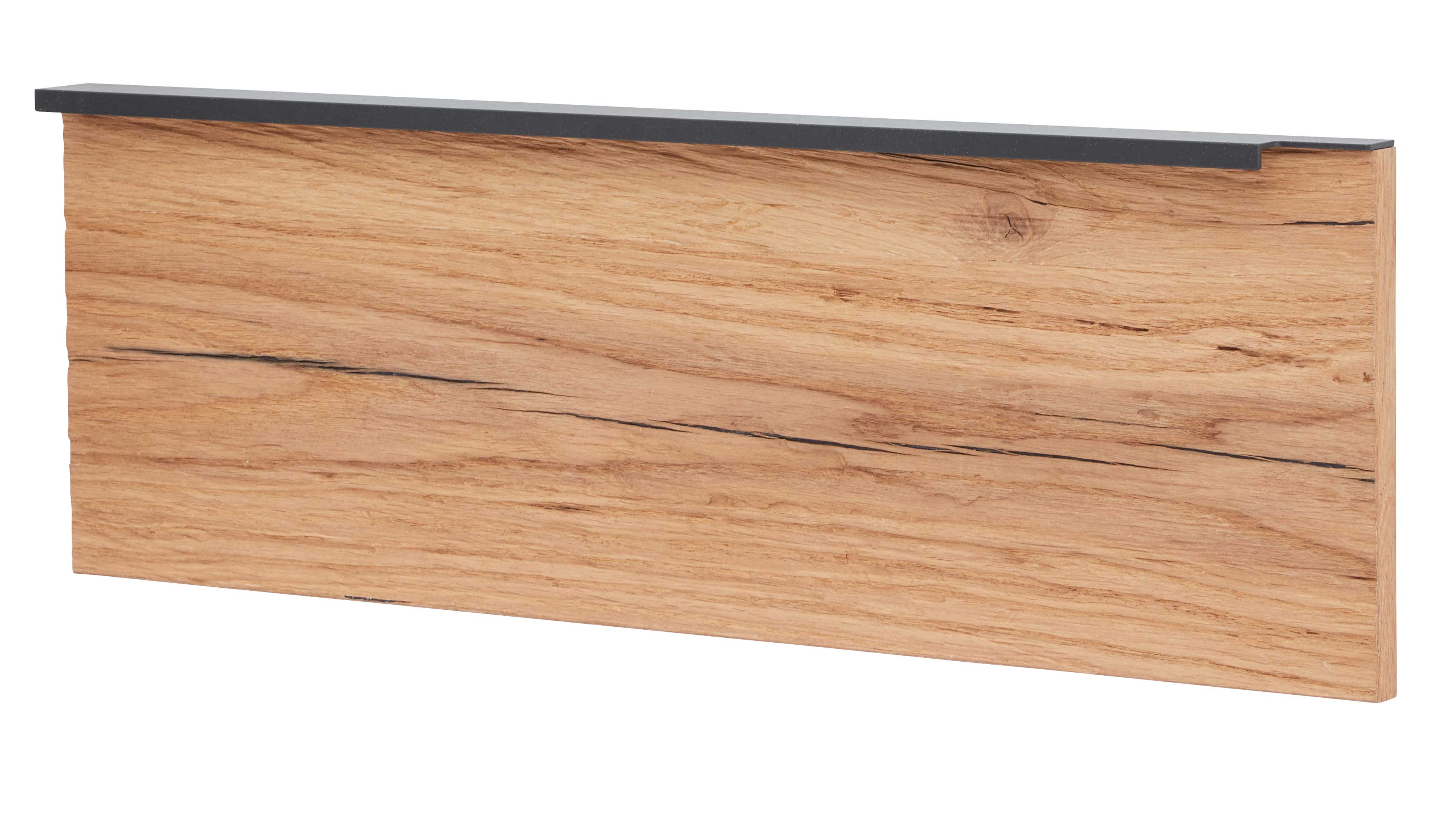 Passend dazu setzen die Aufsatz-Paneele aus Balkeneiche Altholzfurnier links und rechts stilvolle Akzente und messen jeweils ca. 65 x 22 x 4 cm (B/LxHxT).