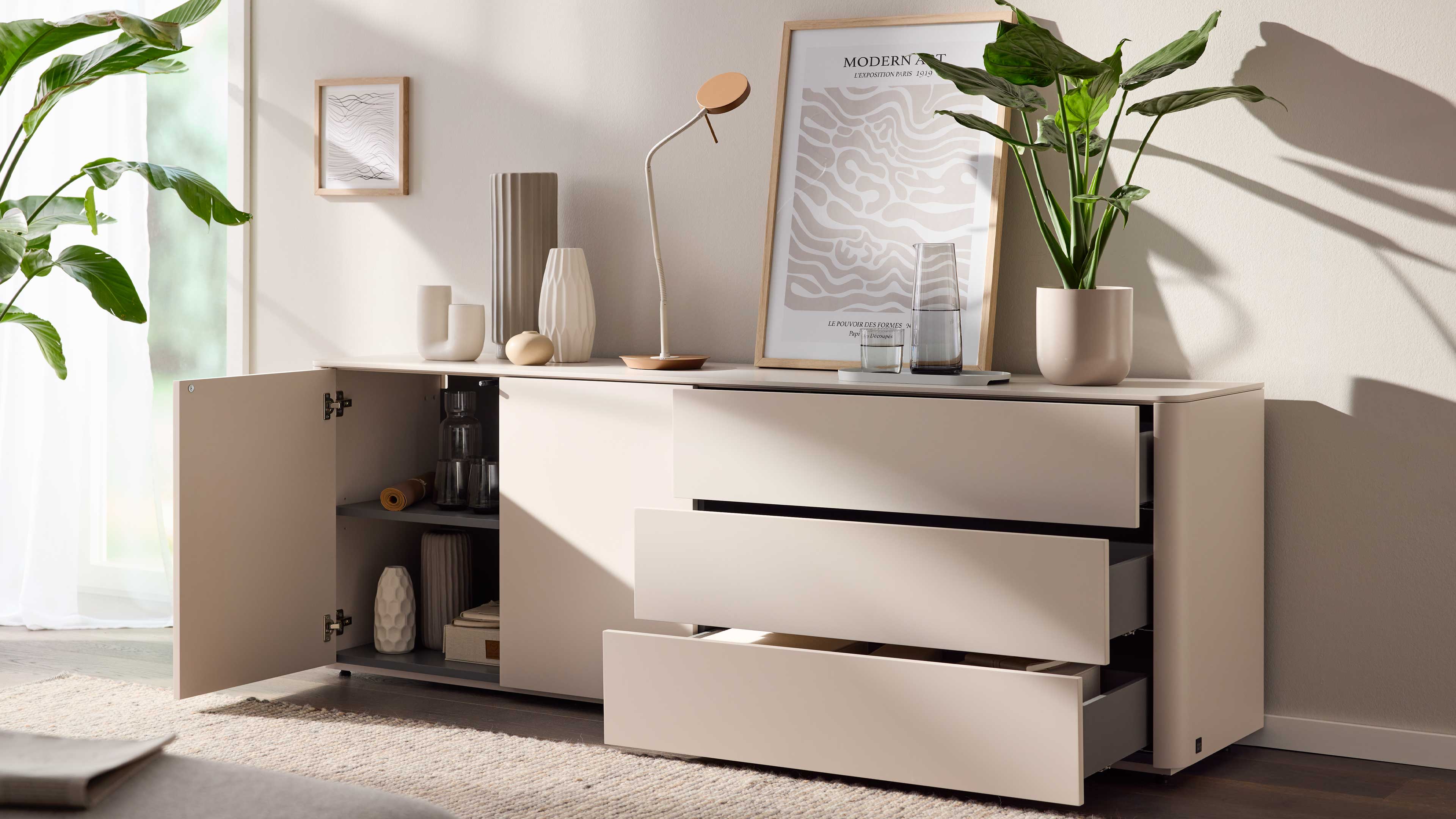 Interliving Wohnzimmer Serie 2035 – Sideboard in beigem Mattlack