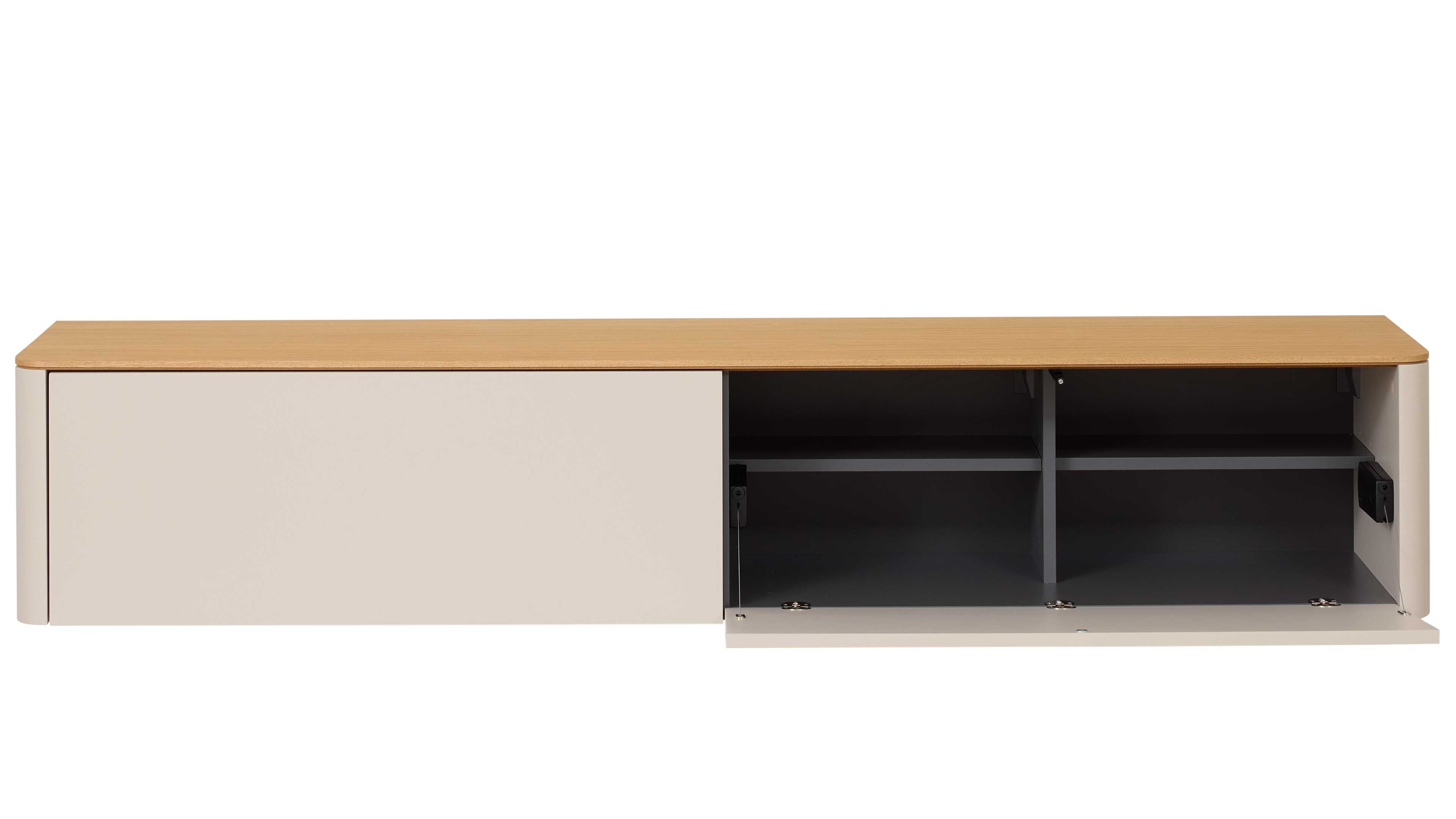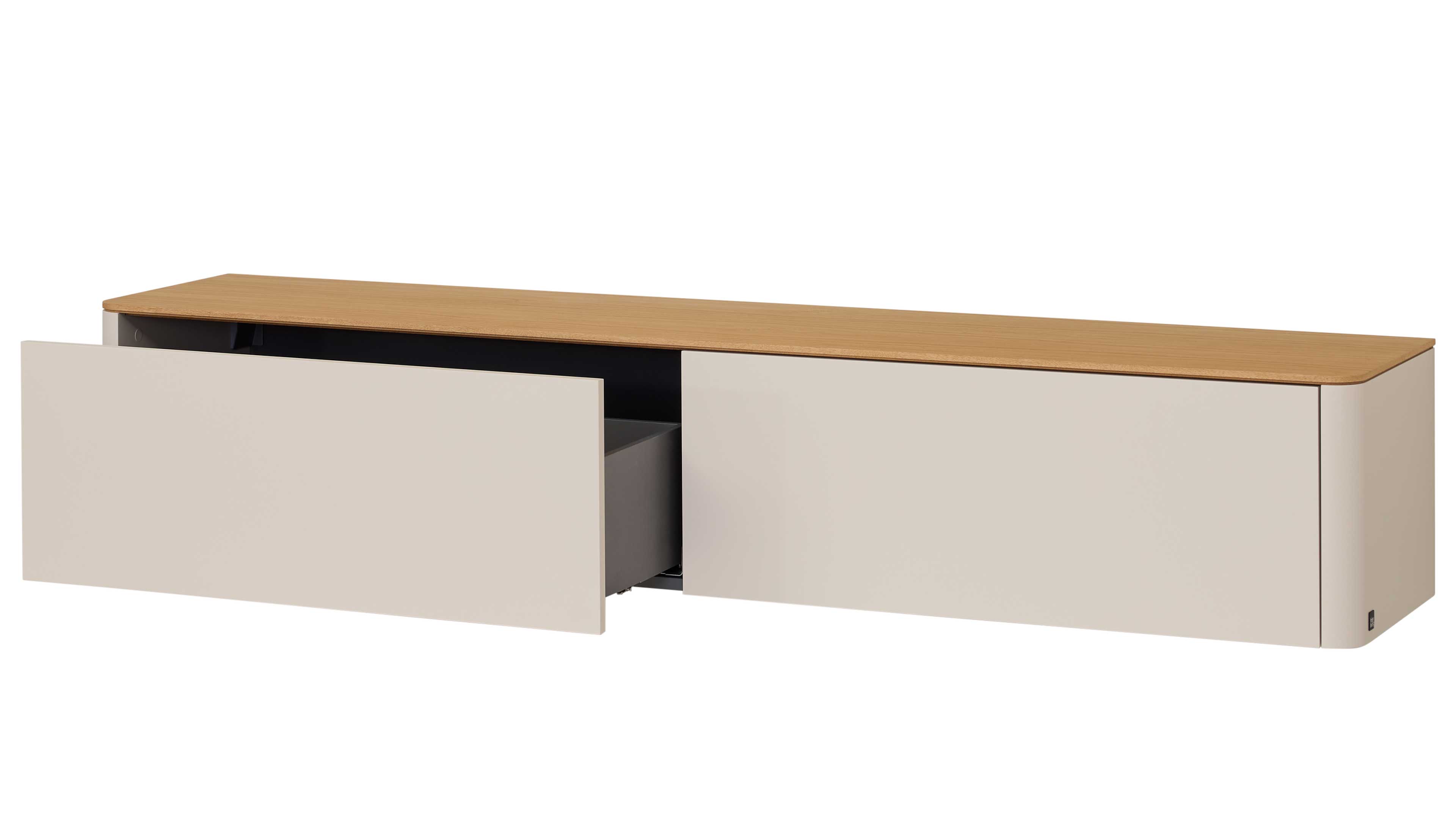 Interliving Wohnzimmer Serie 2035 – TV-Wand in beigem Mattlack und hellem Eichefurnier