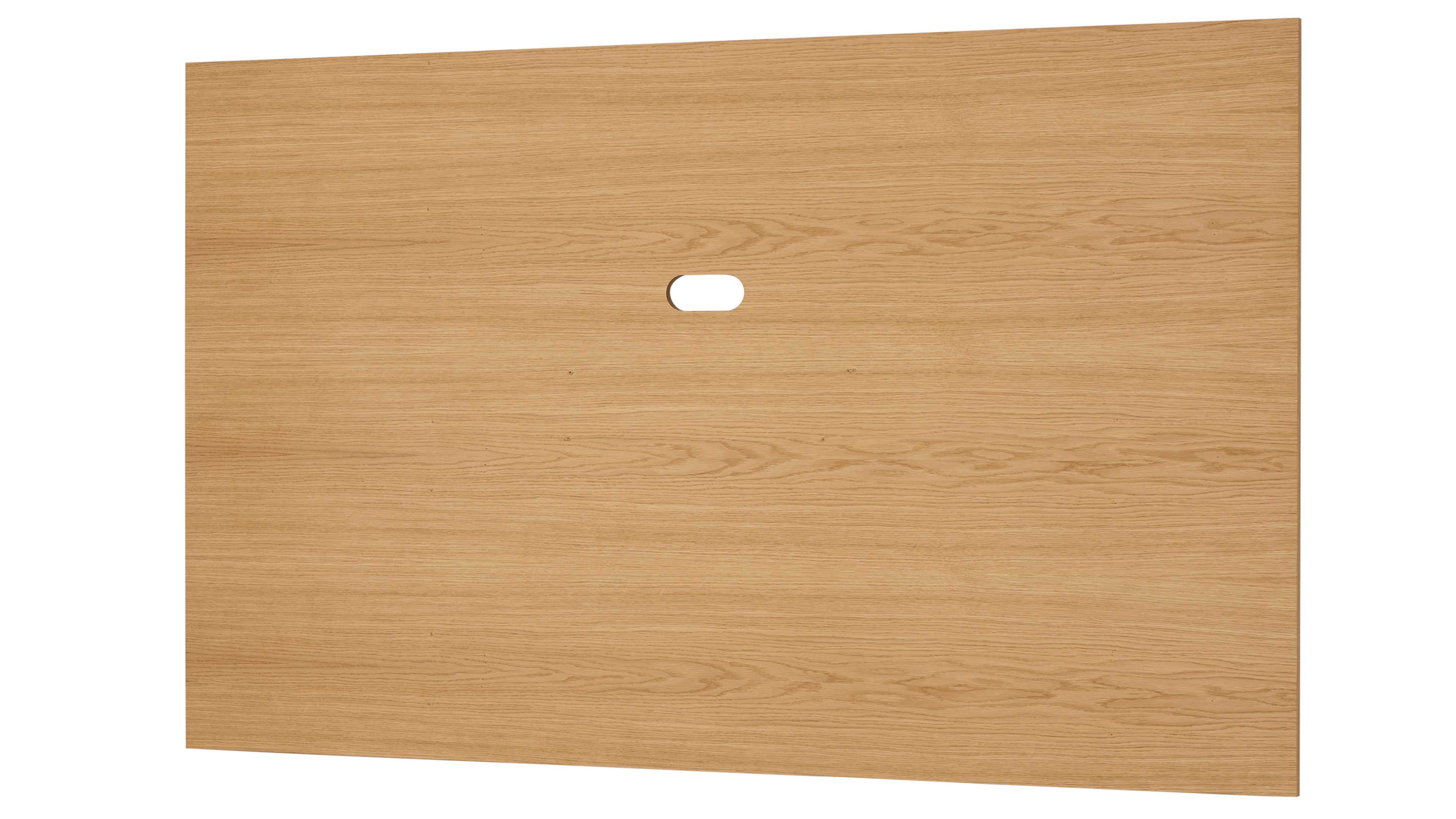 Das großzügige Wandpaneel in hellem Eichefurnier misst ca. 200 x 122 x 4,5 cm (B/LxHxT) und ist passend für TV-Geräte bis 75 Zoll konzipiert. Die rückseitige Aufdoppelung mit integriertem LED-Leuchtstreifen sorgt für eine stimmungsvolle Hintergrundbeleuchtung und verleiht deinem Fernseher eine schwebende Optik.