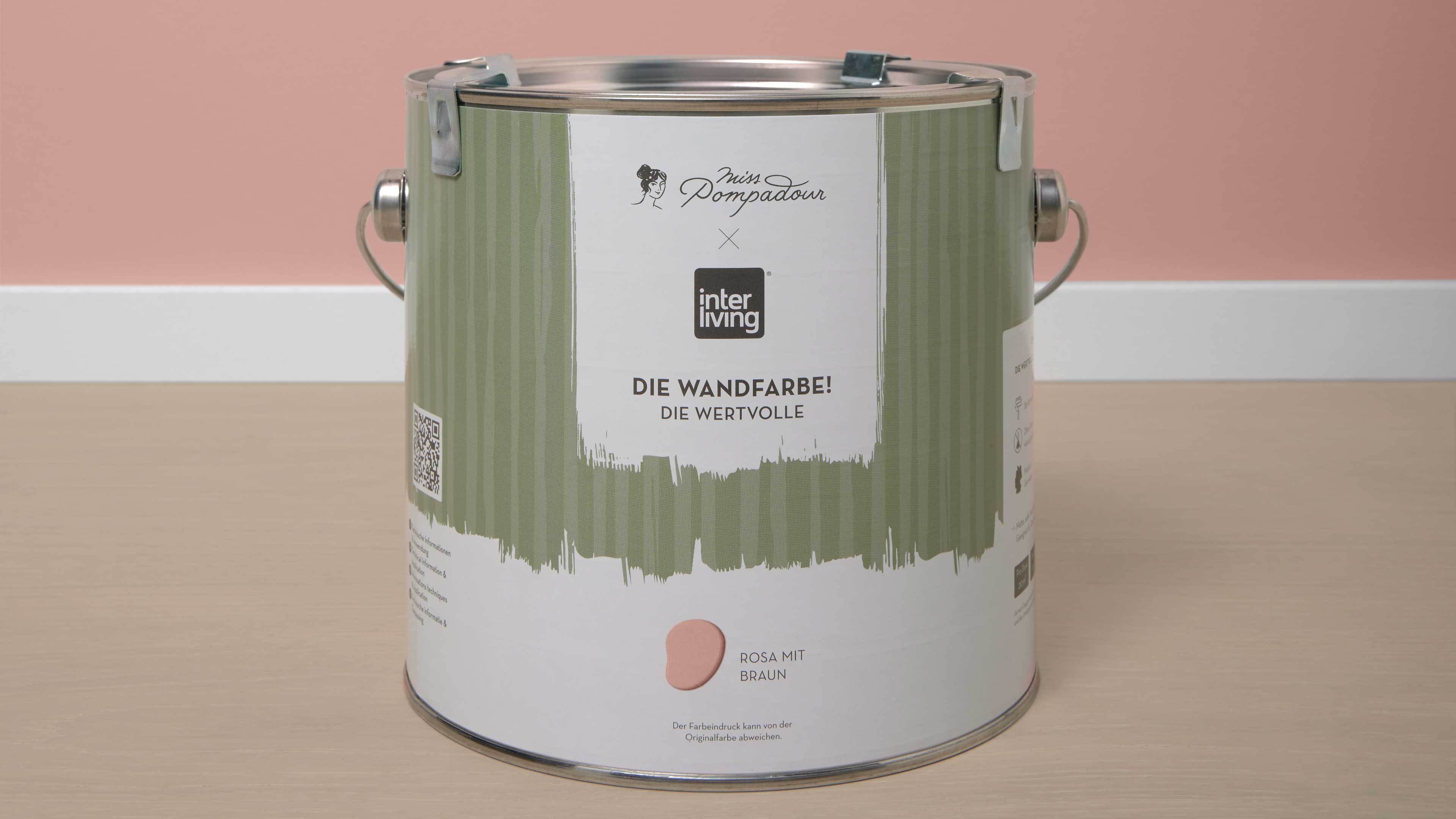 Rosa mit Braun ist ein freundlicher, heller Farbton, der an die warme Atmosphäre südlicher Länder erinnert. Die Kombination aus zartem Rosa und einem Hauch von Braun verleiht dieser Nuance eine besondere Tiefe und Natürlichkeit – behaglich, leicht und einladend zugleich. Durch seine helle, ausgewogene Ausstrahlung eignet sich Rosa mit Braun hervorragend für alle Wände eines Raumes, ohne zu dominant zu wirken. Der Farbton bringt Frische und Wärme in perfekten Einklang – ideal für Wohn- und Schlafräume, Küchen oder Flure.
