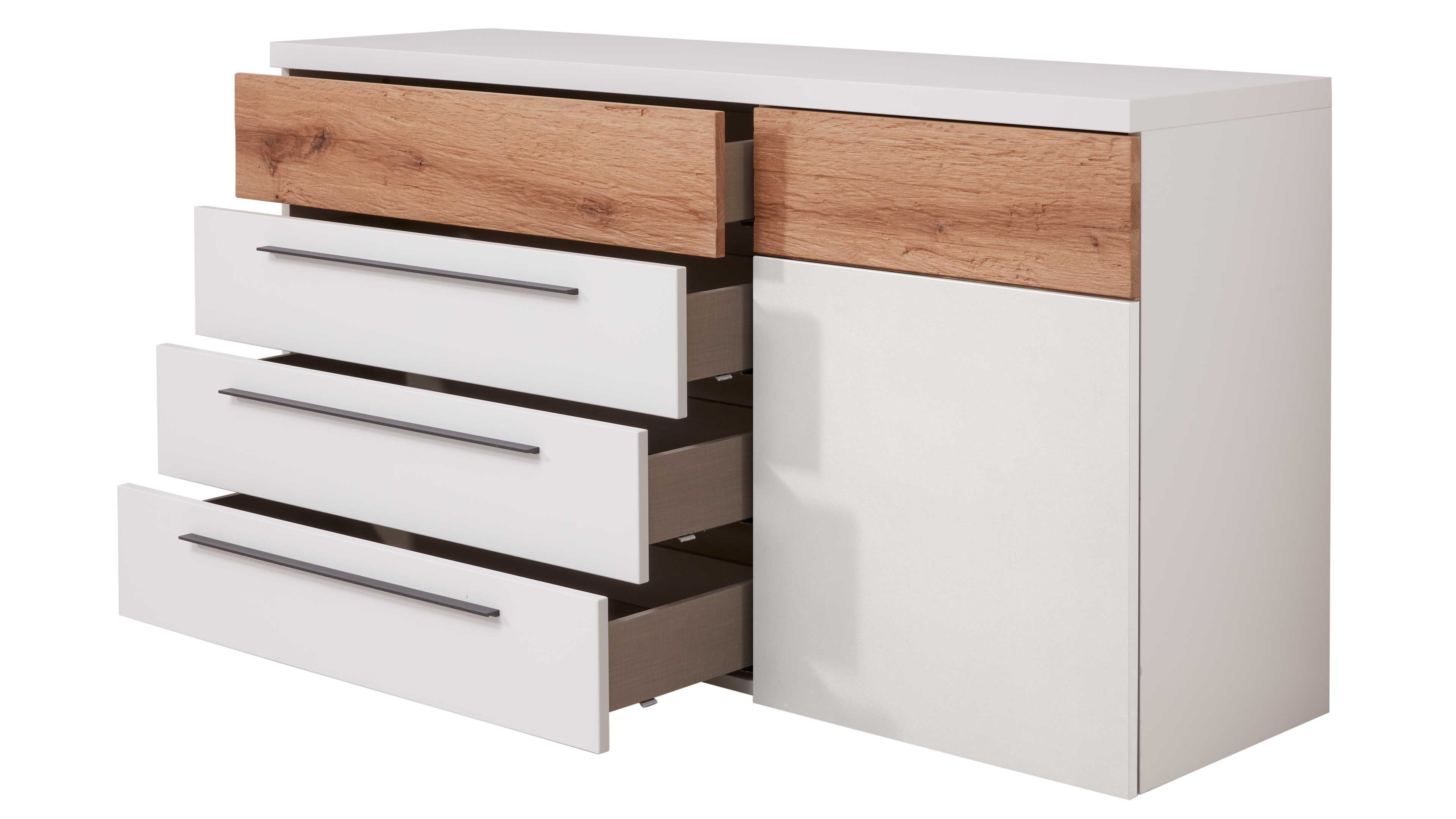 Schlafzimmer-Kommode in Weiß mit Mattlack und Akzenten in Eiche