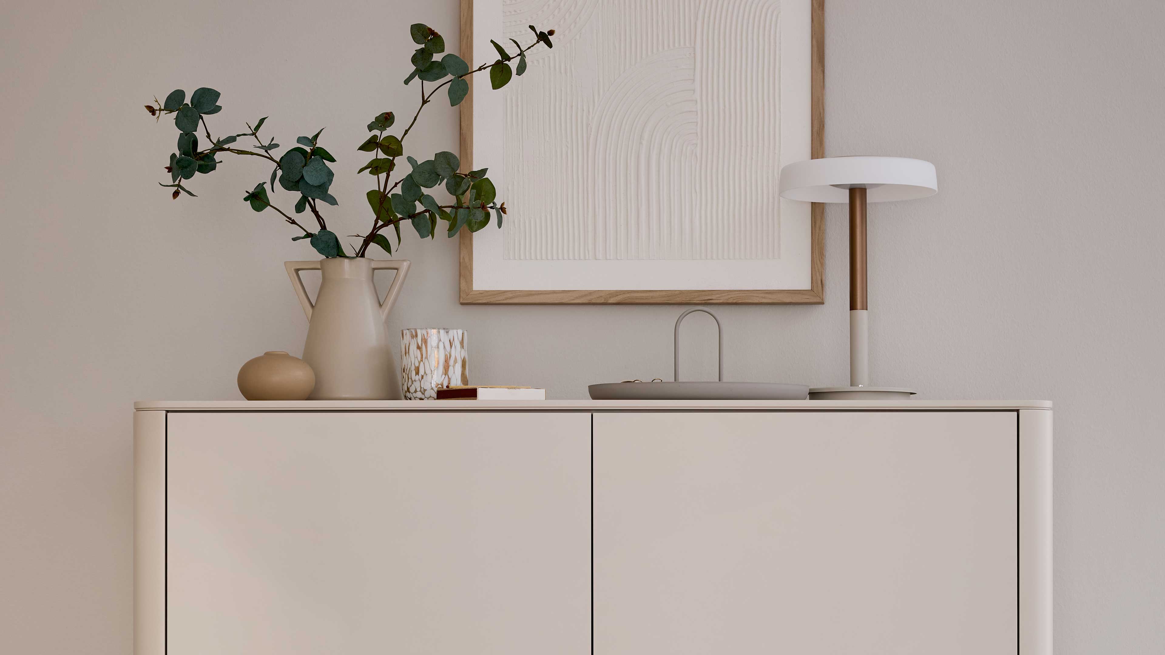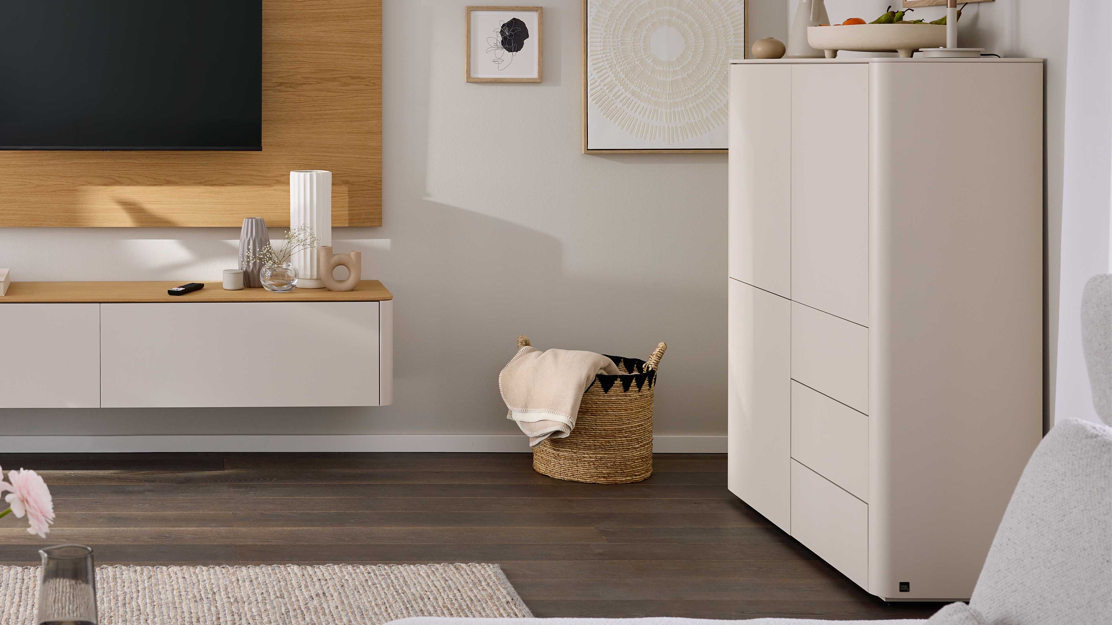 Interliving Wohnzimmer Serie 2035 – Highboard in beigem Mattlack