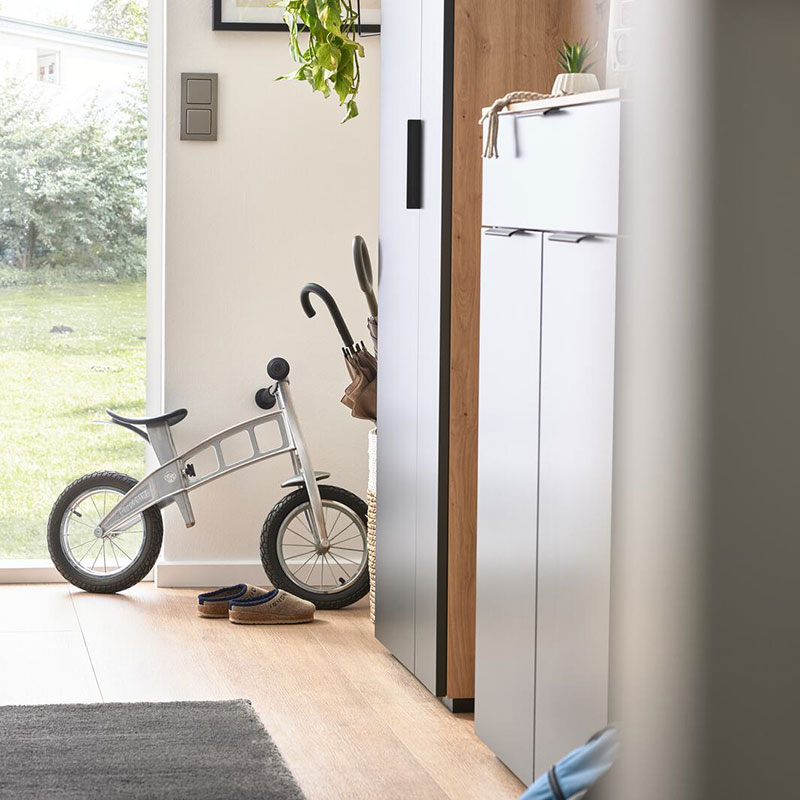 Der Flur ist der erste Eindruck deines Zuhauses und mit Interliving Garderoben wird er gleichzeitig praktisch und einladend. Clevere Stauraumlösungen bringen Ordnung in Schuhe, Jacken und Accessoires, während modernes Design für einen stilvollen Empfang sorgt. So fühlt sich jeder Besuch von Anfang an willkommen.