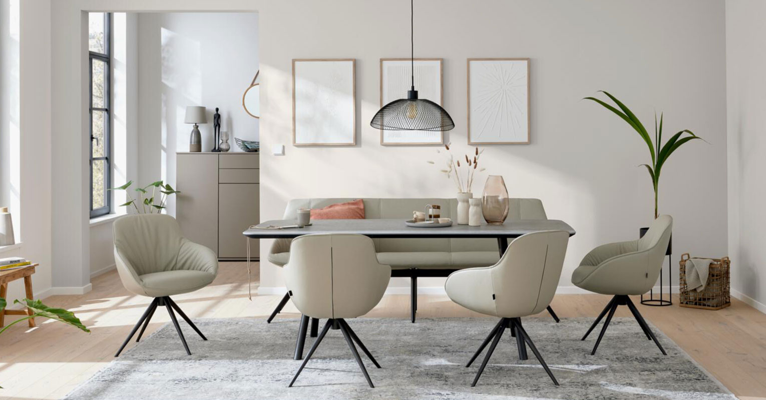 Ausziehbare Tische bieten dir maximale Flexibilität – ob für das gemütliche Frühstück zu zweit oder das große Familienessen. Komfortable Polsterstühle und stilvolle Sitzbänke laden zum Verweilen ein und schaffen eine wohnliche Atmosphäre, in der du deine Wohnträume jeden Tag neu erleben kannst.