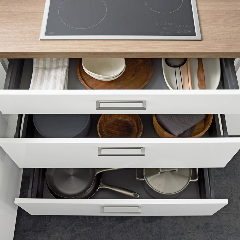 Deine neue Küche soll dir lange gefallen – optisch und haptisch. Ob puristisch in Mattlack, wohnlich mit Holzdekor oder kontrastreich in Schwarz-Weiß: Bei Interliving kannst du aus vielen Farben, Oberflächen und Griffvarianten wählen – natürlich alles in hochwertiger Verarbeitung.