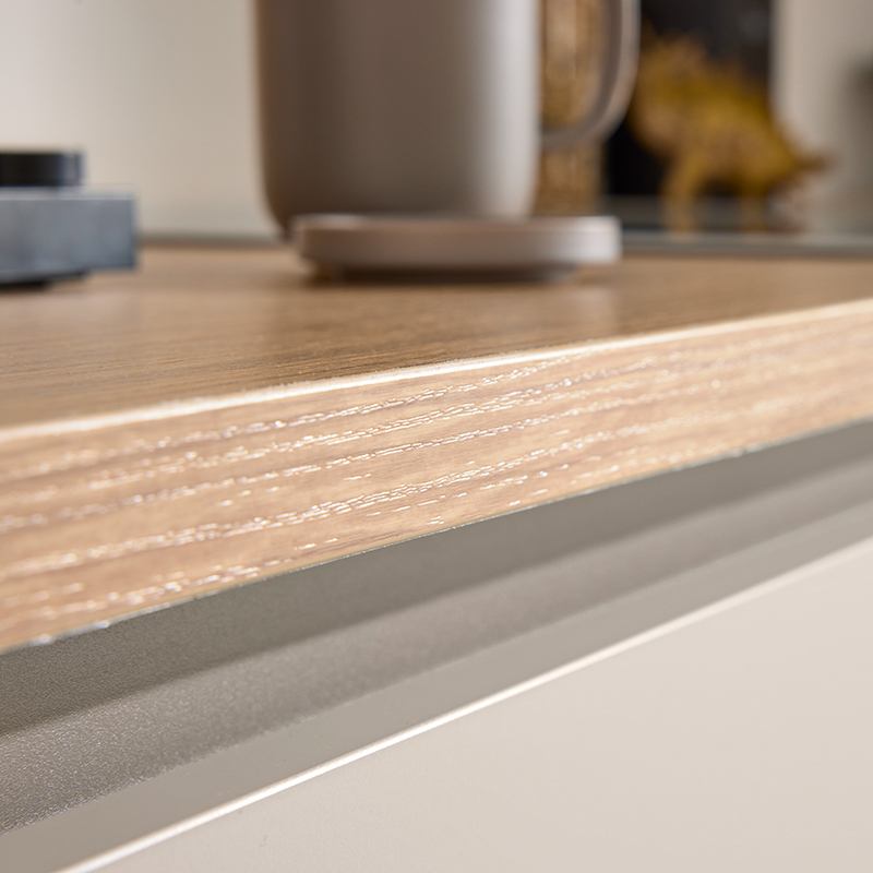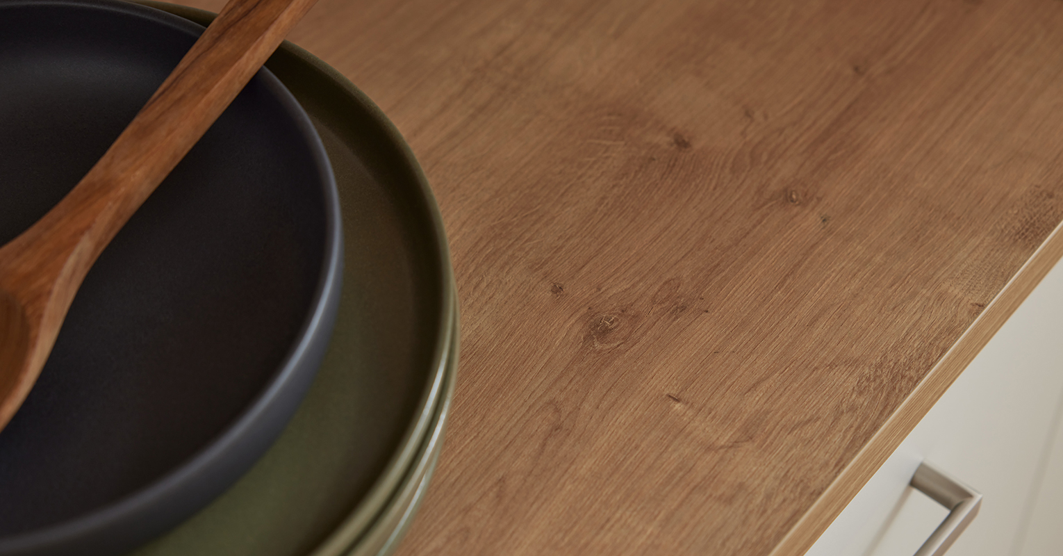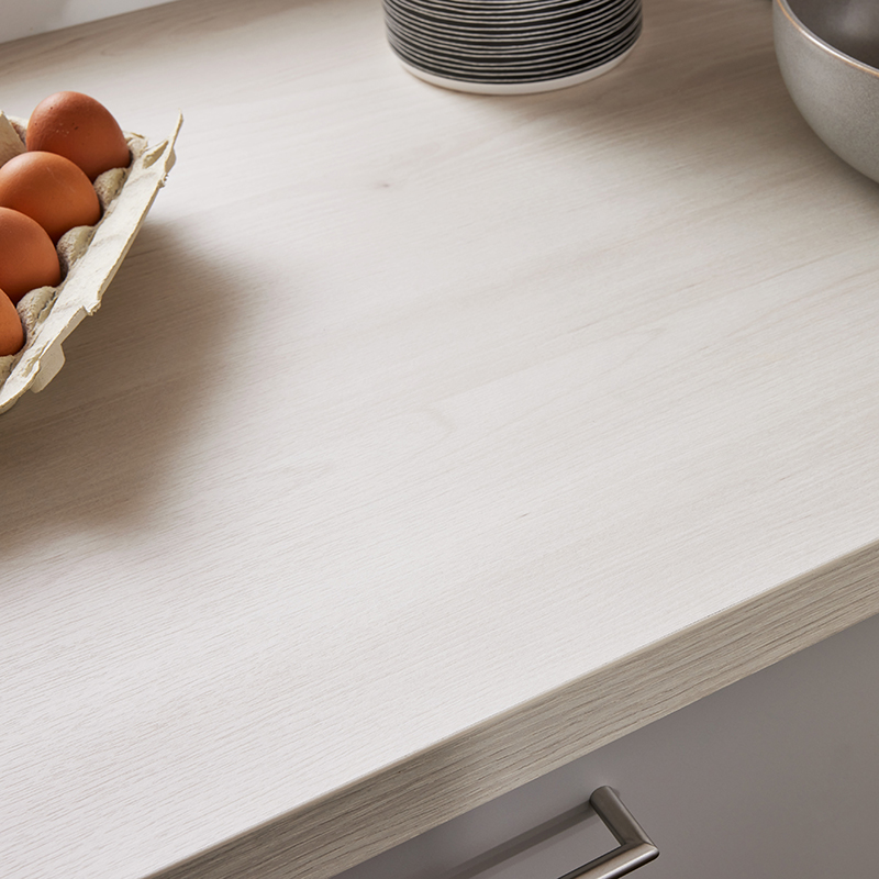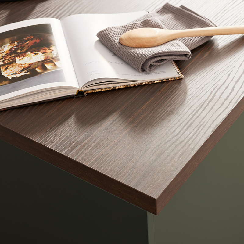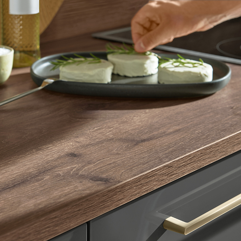 Küchenarbeitsplatten in Holz-Dekor bringen natürliche Wärme und wohnliche Atmosphäre in die Küche. Authentische Maserungen und harmonische Holzfarben erinnern an echtes Holz und schaffen eine stilvolle Verbindung aus modernem Küchendesign und natürlicher Ausstrahlung.