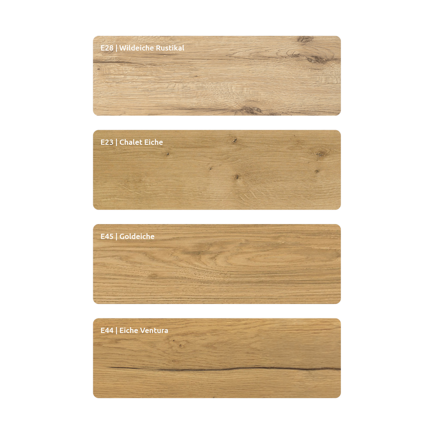 - Verschiedene Holz-Dekore mit realistischer Strukturwirkung