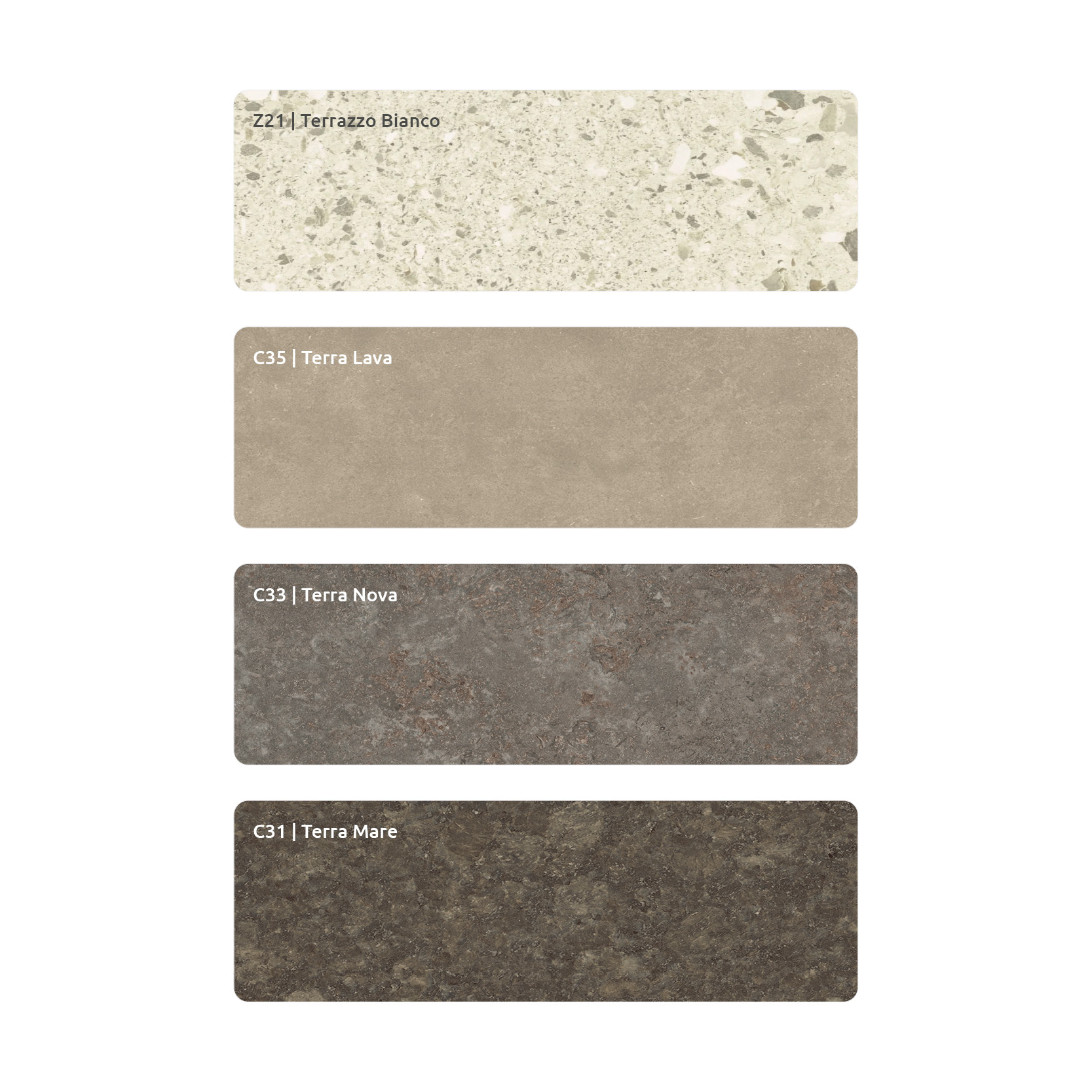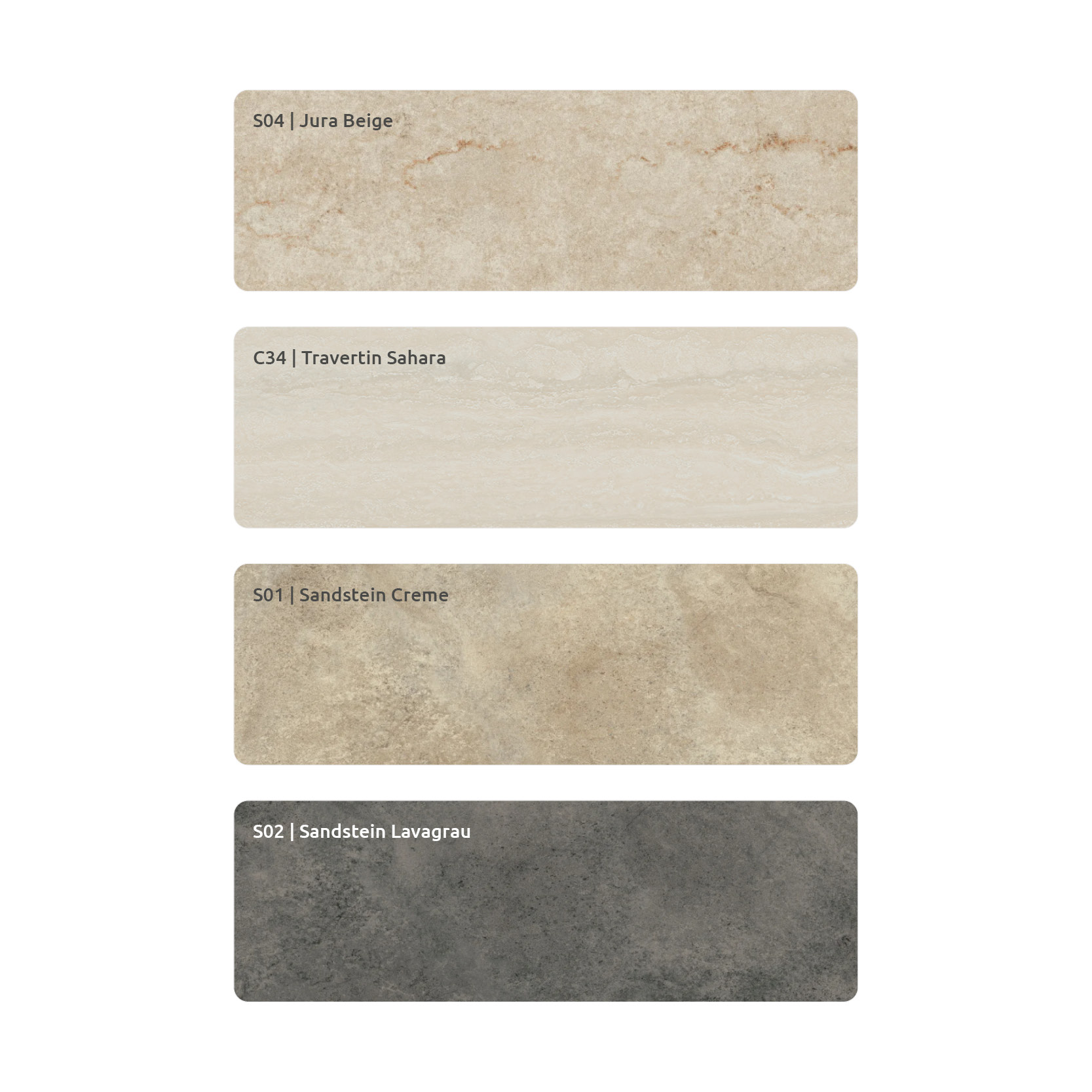 - Inspiriert von Naturmaterialien wie Lavastein, Terrazzo, Sandstein oder Travertin
